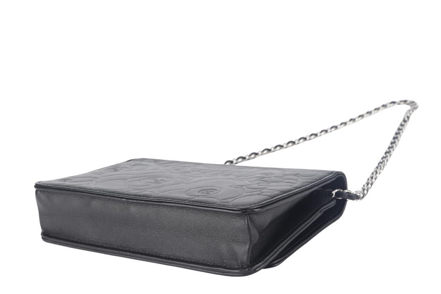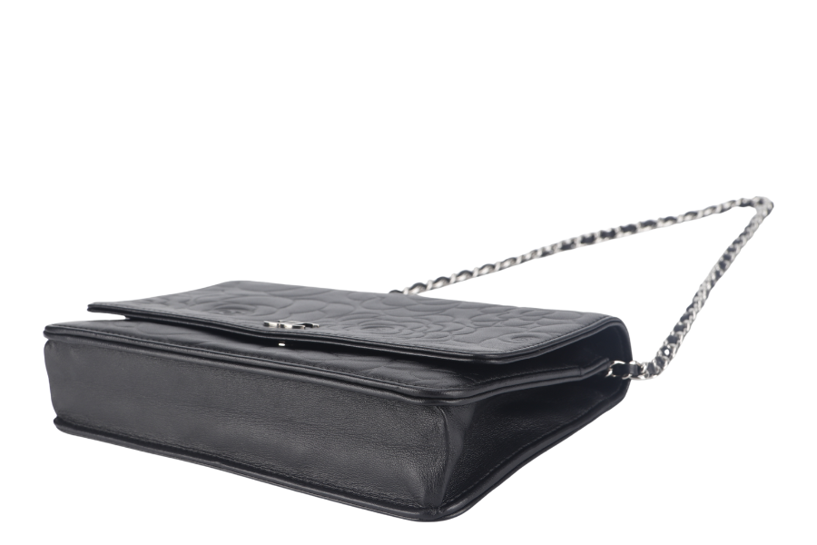 CHANEL CAMELLIA W.O.C (1609xxxx) BLACK EMBOSSED LAMBSKIN SILVER HARDWARE WITH AND BOX