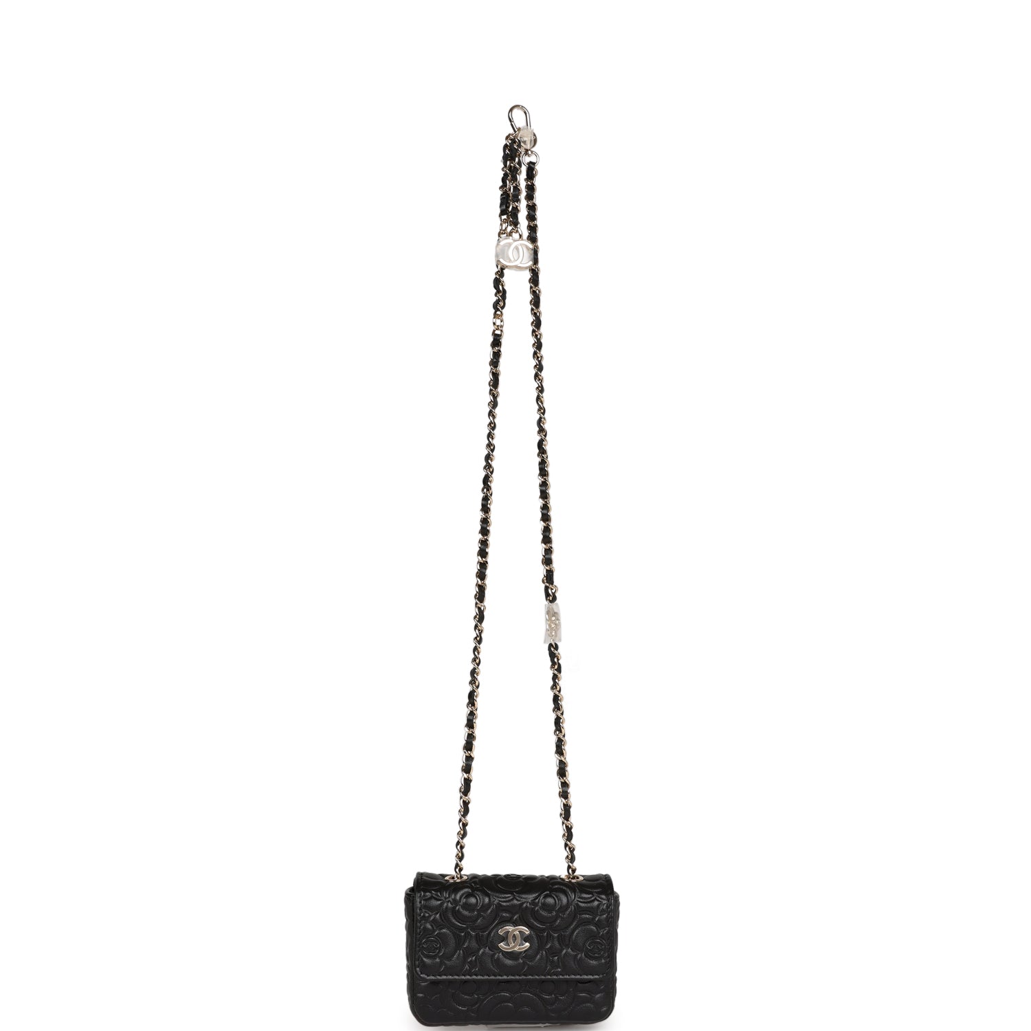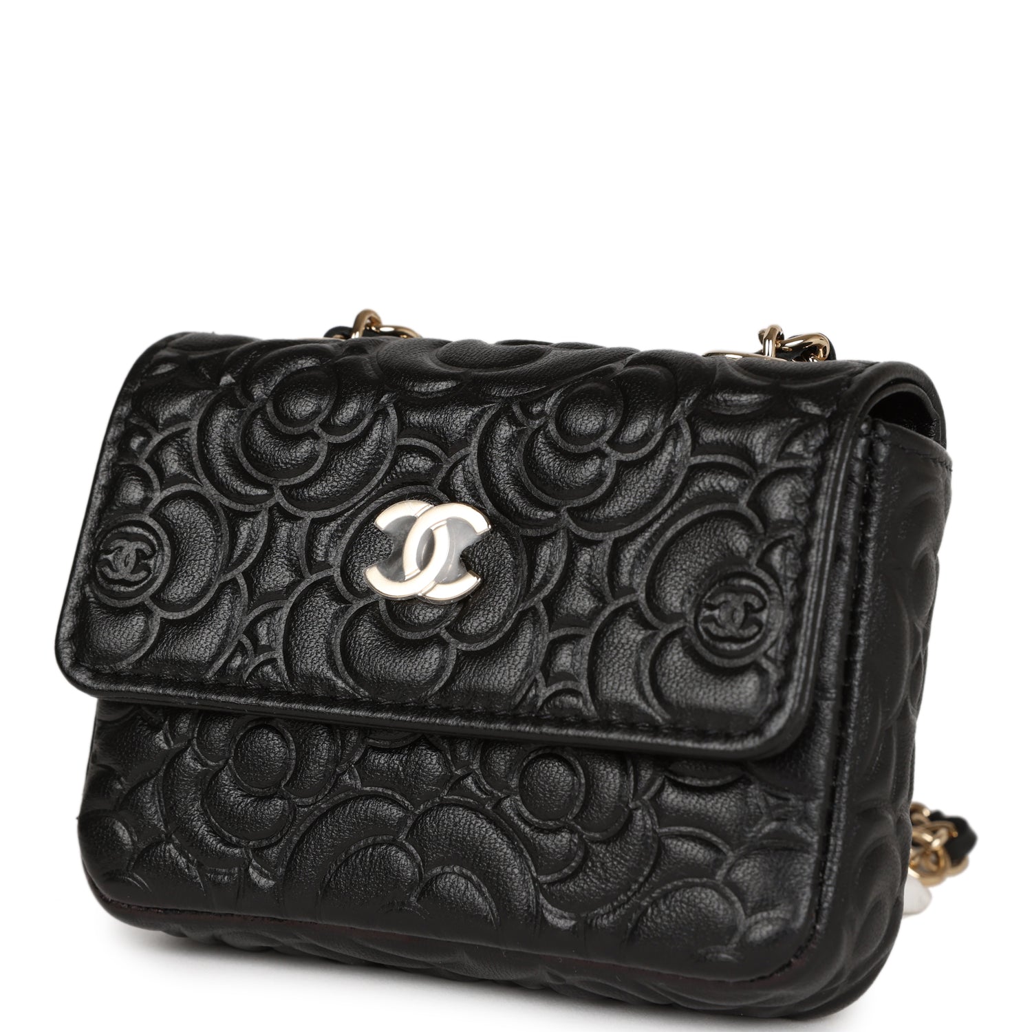 Chanel Camellia Embossed Belt Bag Black Lambskin Light Gold Hardware