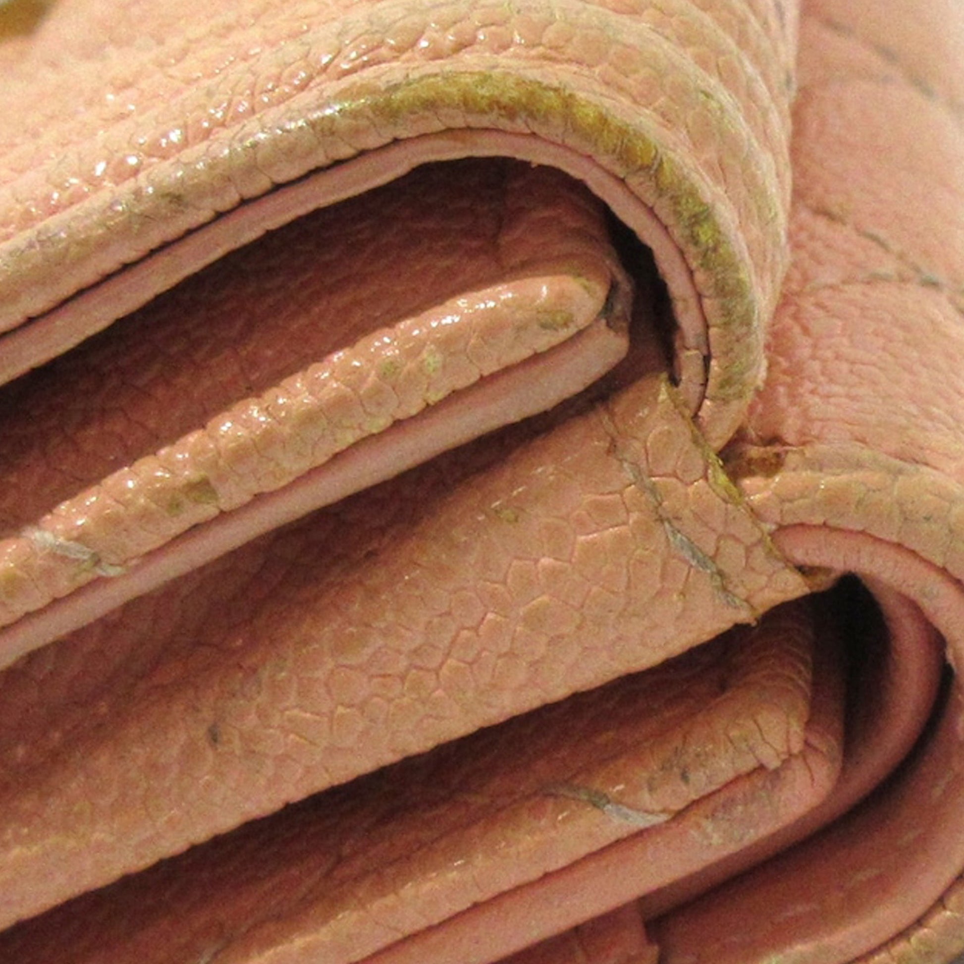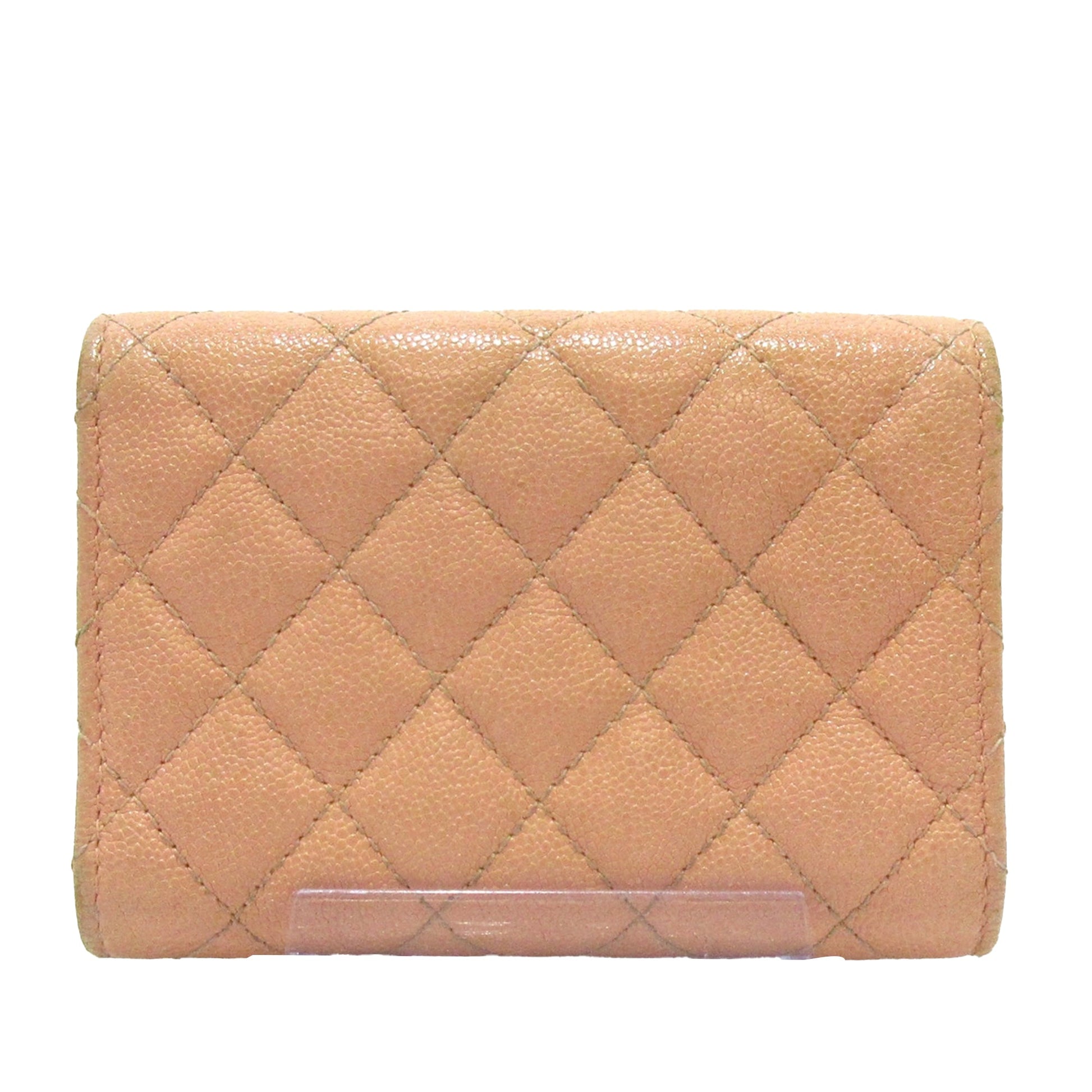 This wallet features a quilted caviar leather body, a flap with snap button closure, and interior slip pockets. Comes with box and dust Bag.