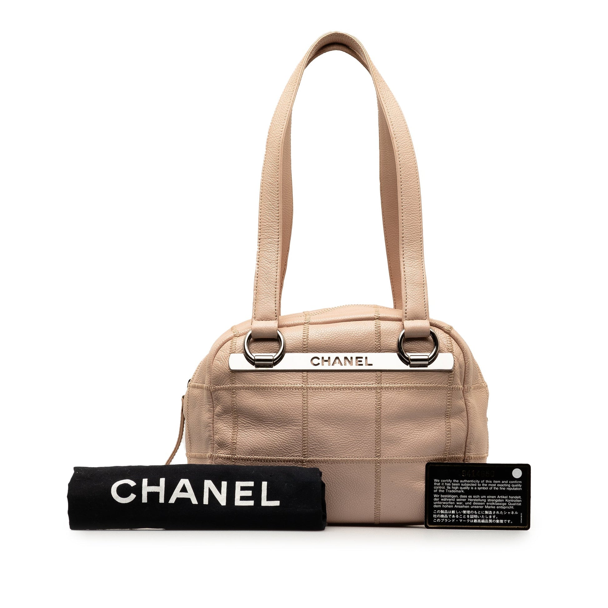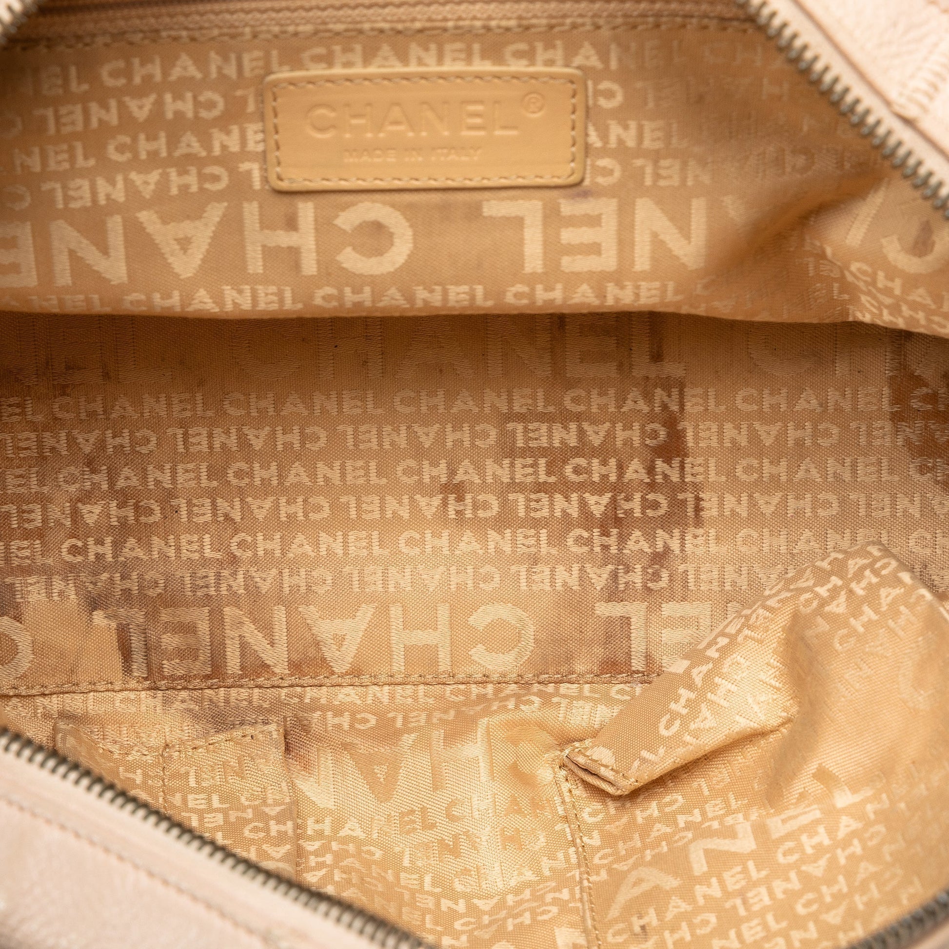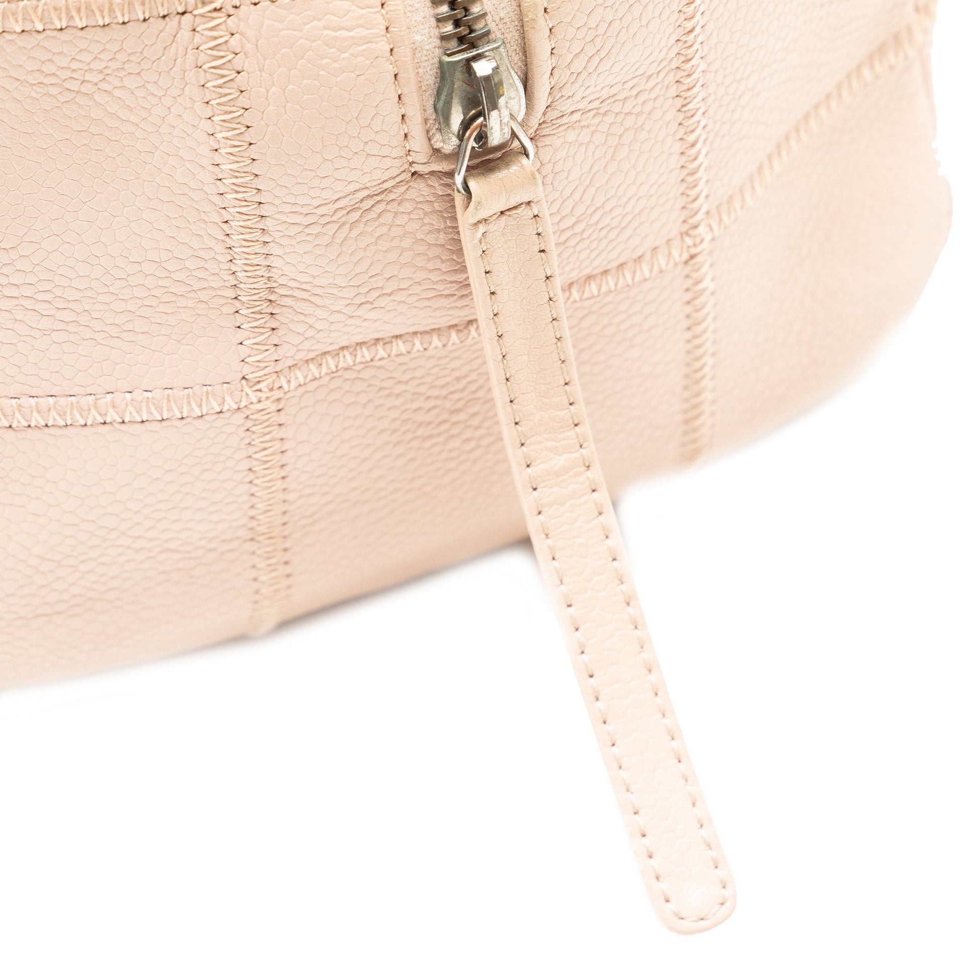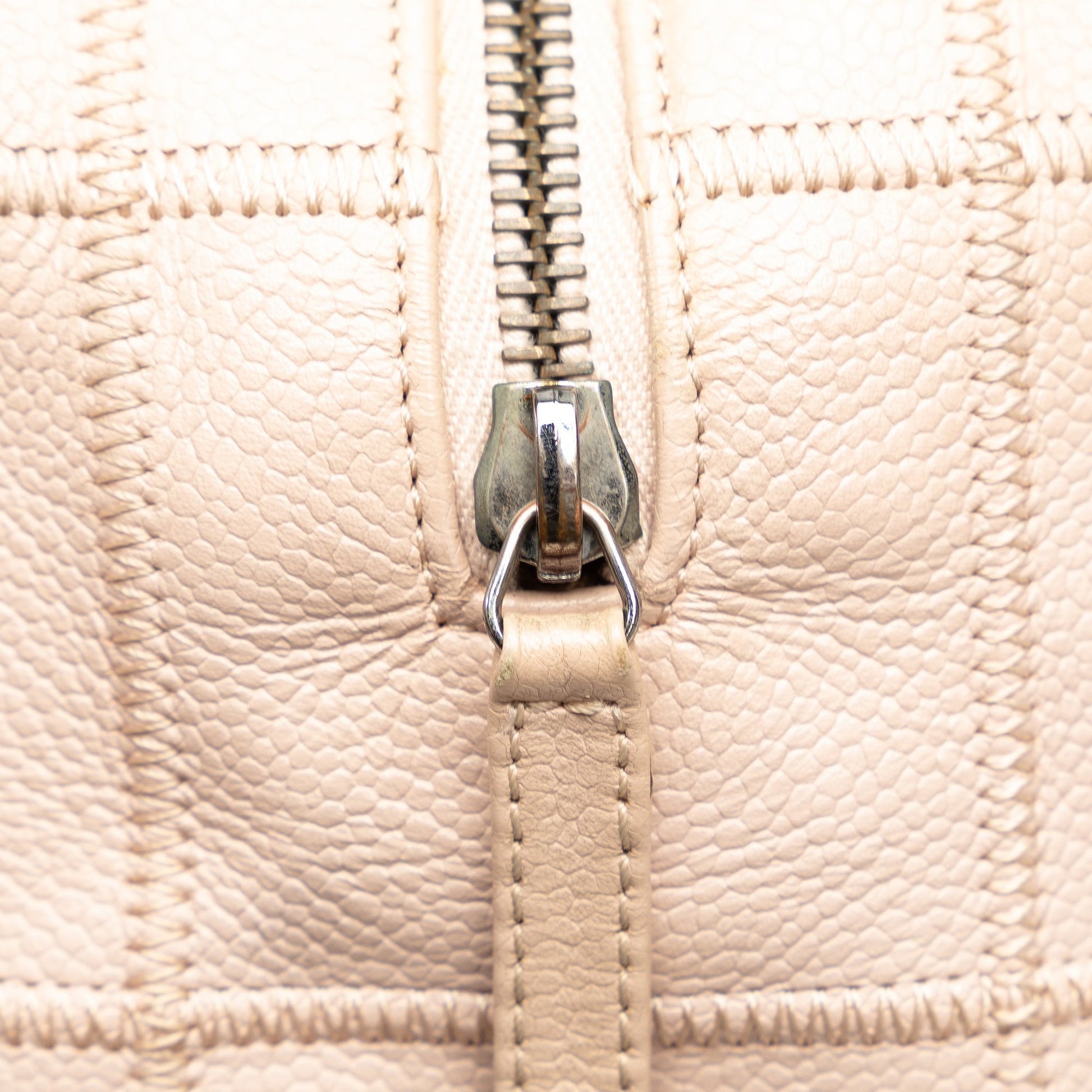 This handBag features a quilted caviar leather body, flat leather handles, a top zip closure, and an interior zip pocket. Comes with ity card and dust Bag.