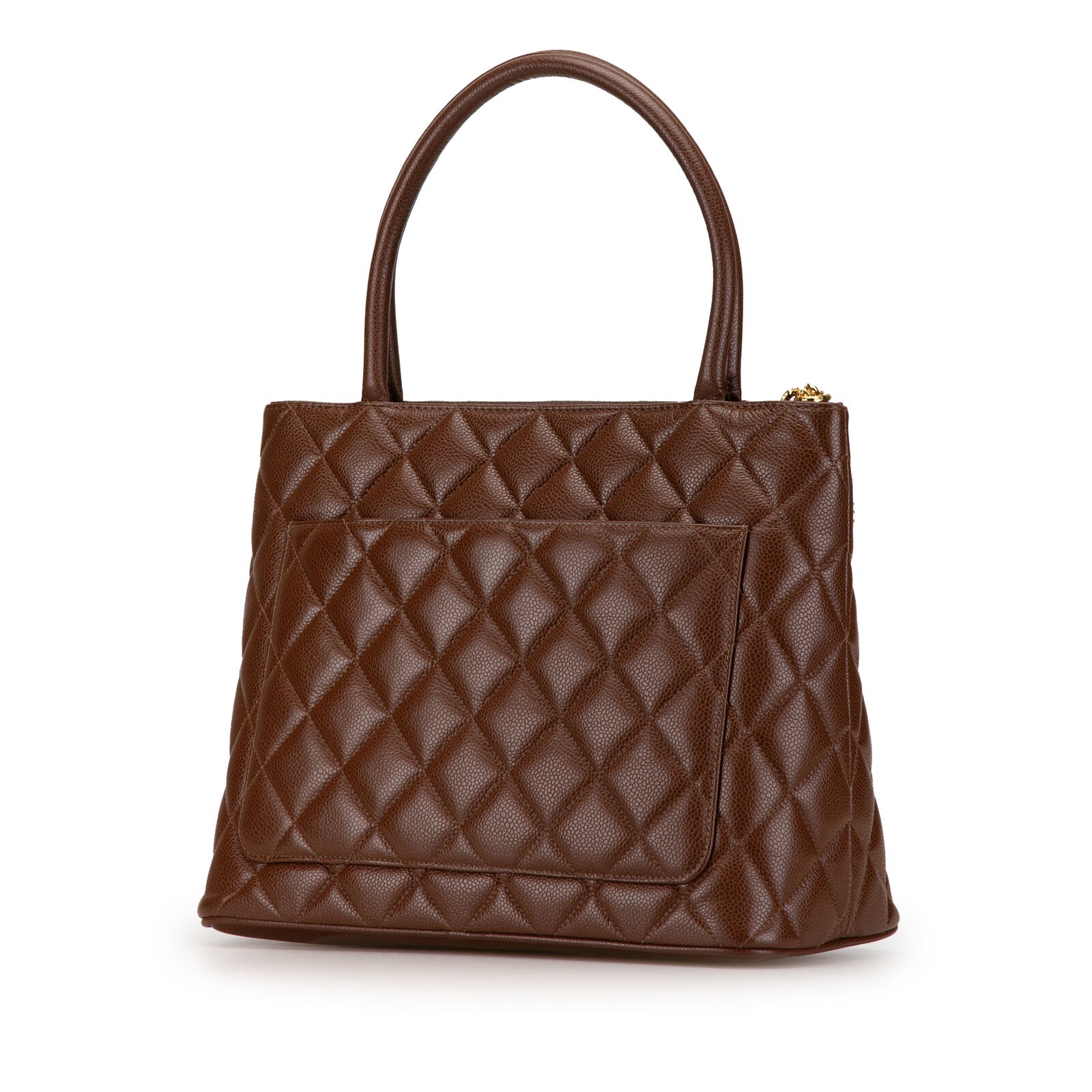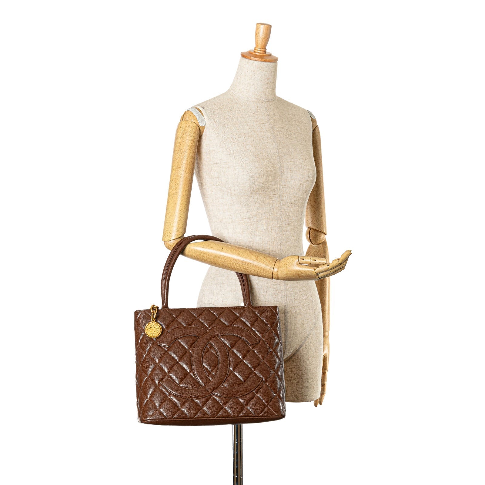 Indulge in timeless luxury with the Auth Chanel Caviar Medallion Tote in rich dark brown leather. This iconic bag features the signature Chanel quilted caviar leather, adorned with a stunning gold-tone CC medallion. With its spacious interior and classic design, this tote is the epitome of sophistication and elegance.