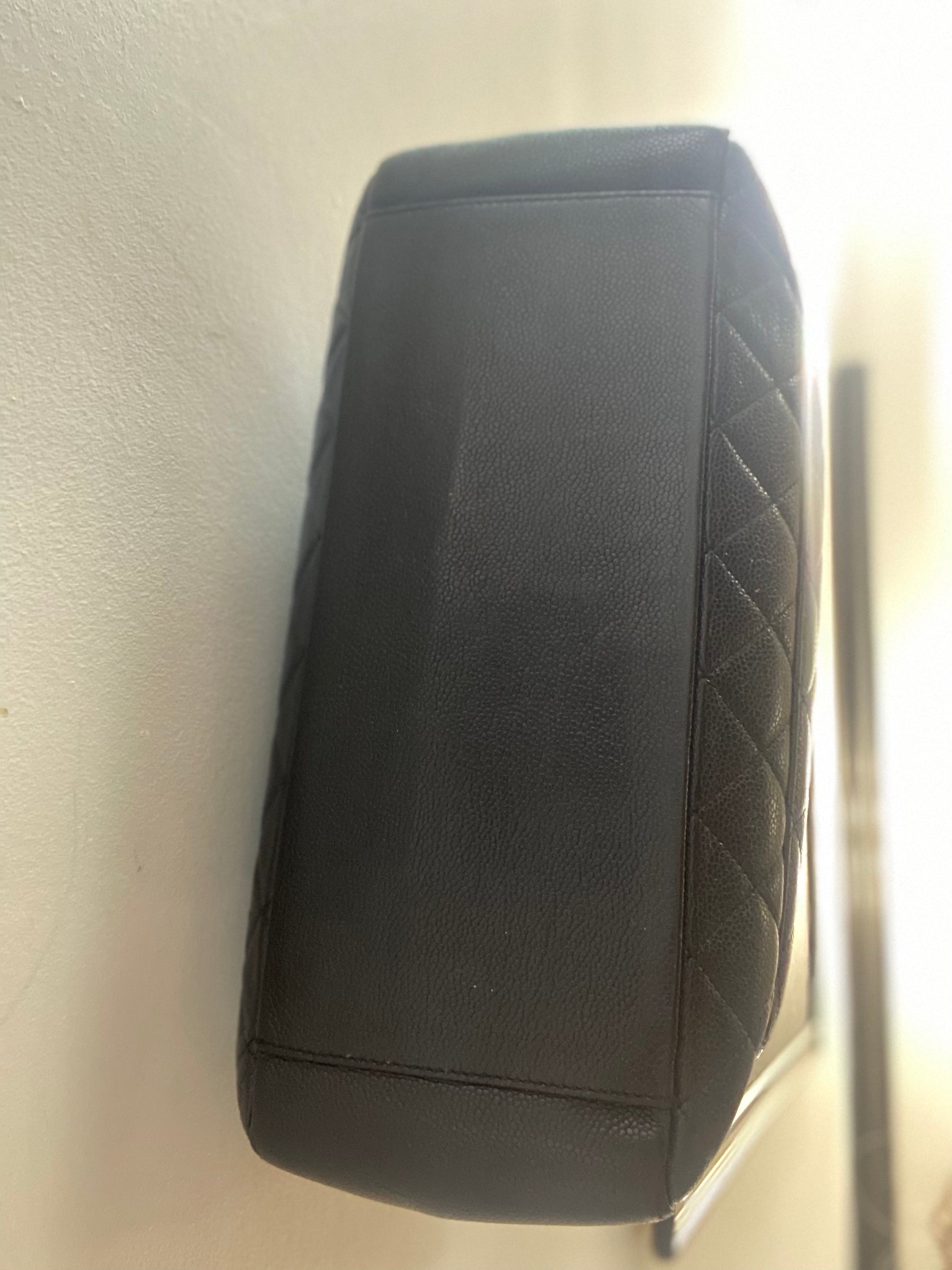 This GST tote is crafted of diamond quilted caviar leather in black. It features leather threaded polished gold chain-link shoulder straps with shoulder pads, a quilted Chanel CC logo on the front, and a flat pocket on the rear. The top opens to a partitioned black satin interior with both a zipper and patch pocket.