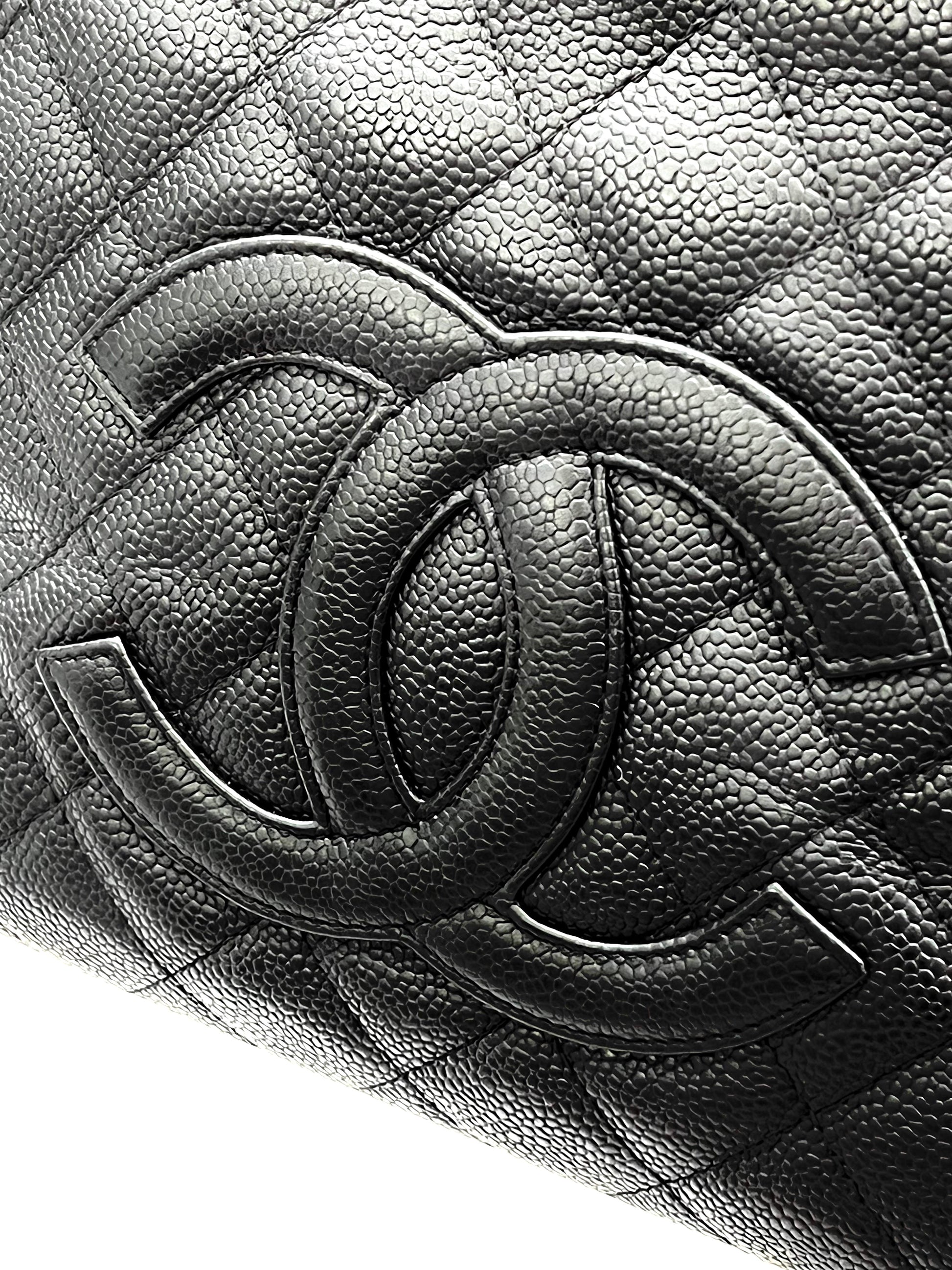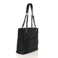 This stylish tote is crafted of diamond quilted caviar leather in black.