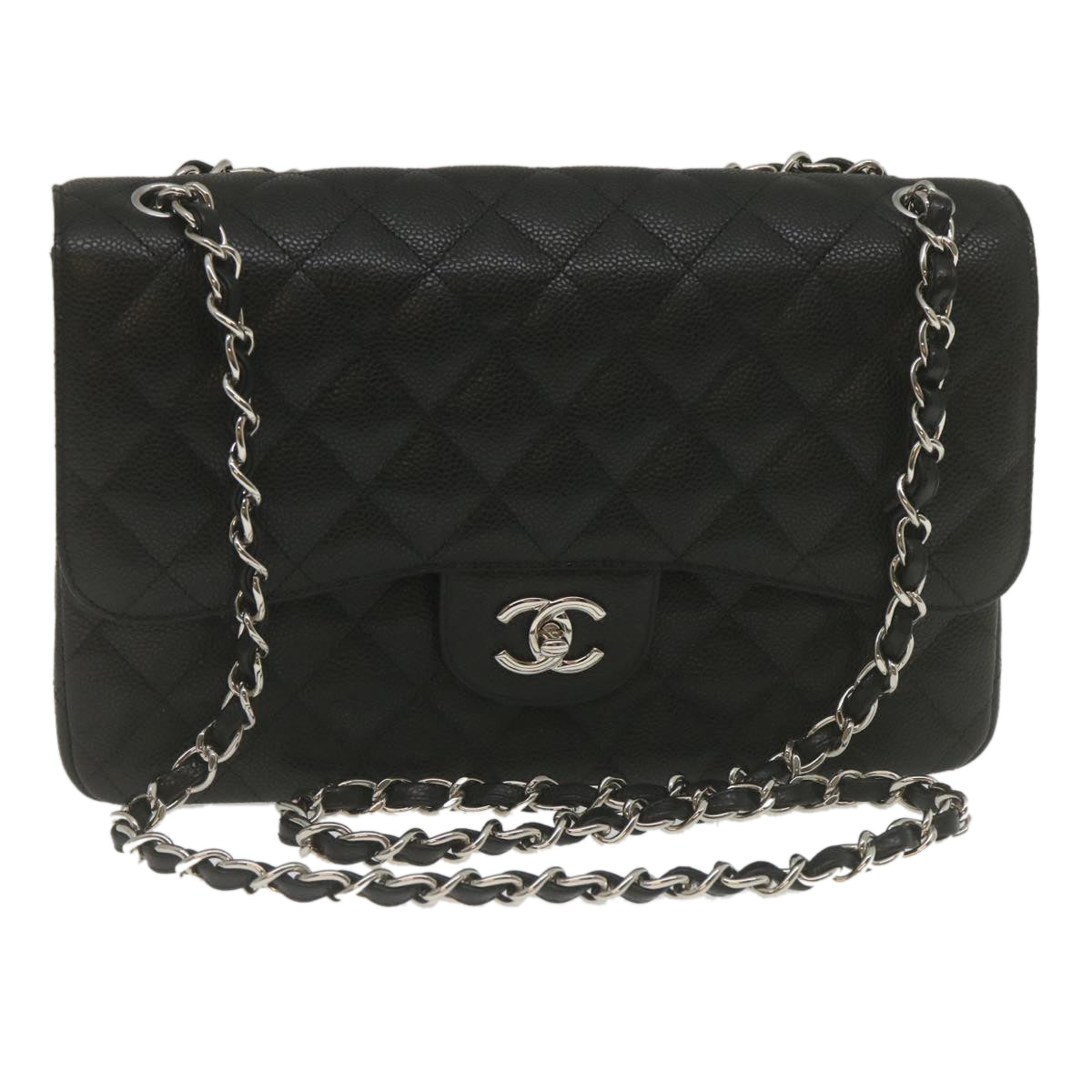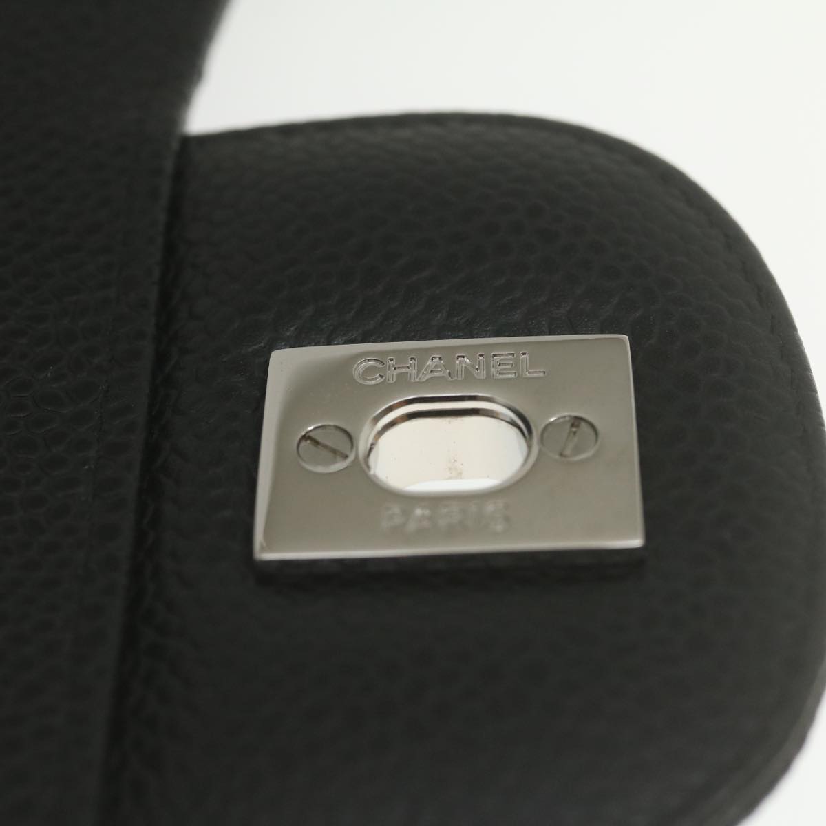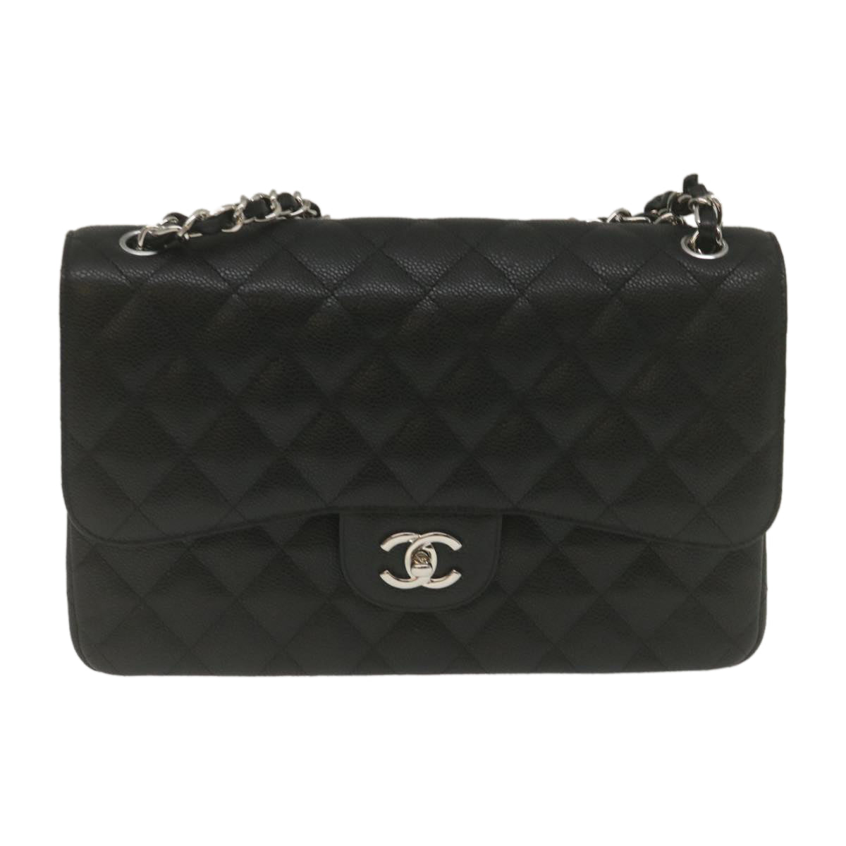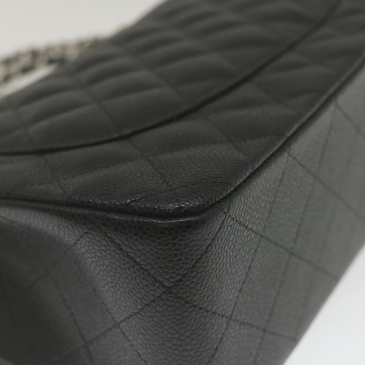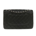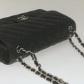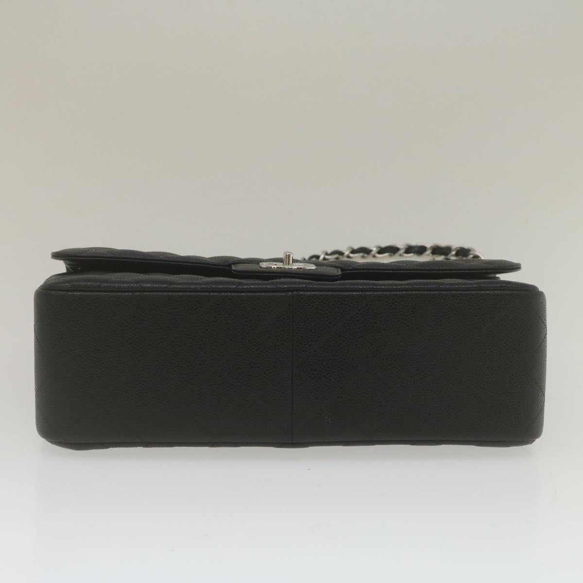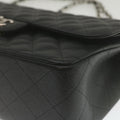 Chanel Caviar Skin Chain Double Flap Big Matelasse ShoulderBag Black Auth 29507A