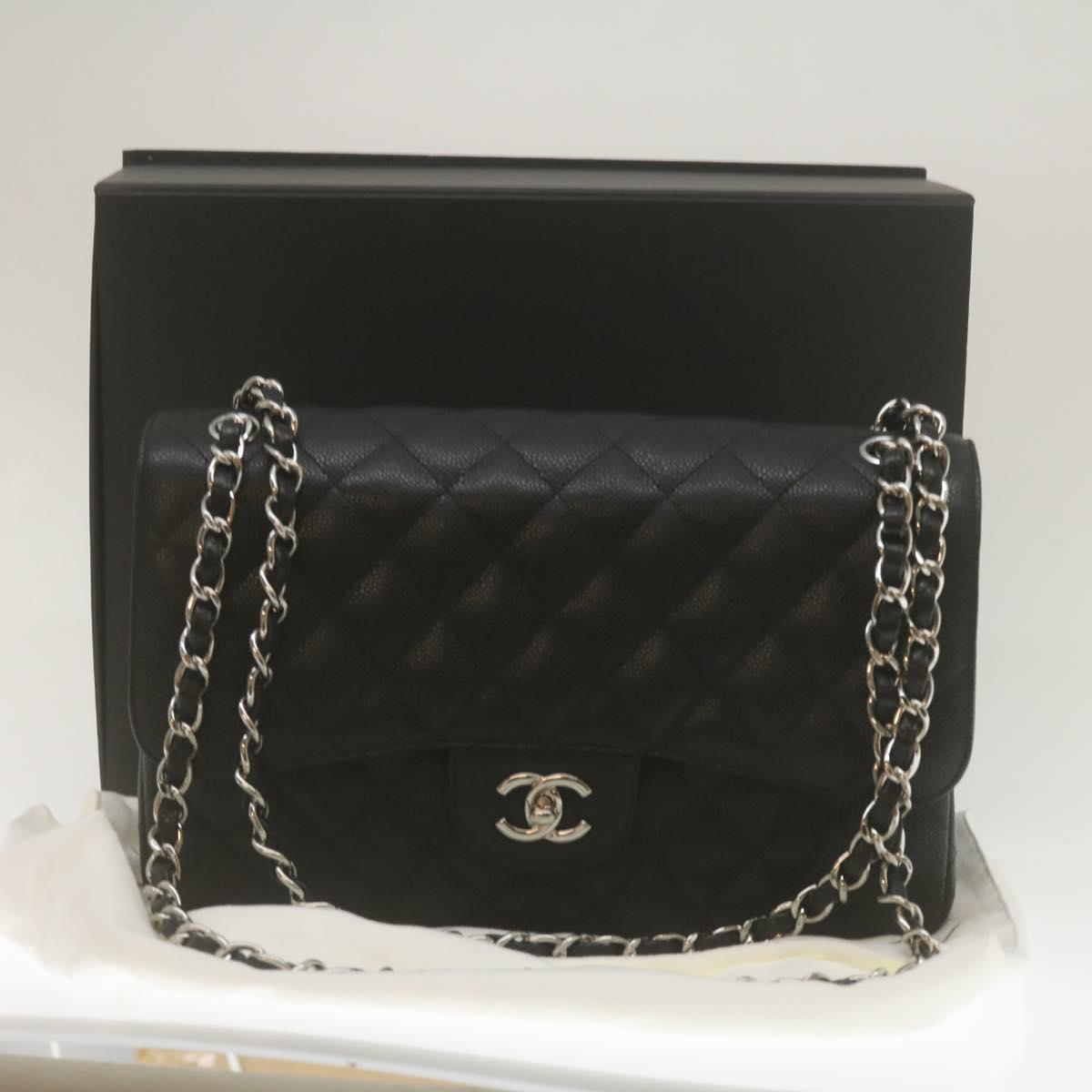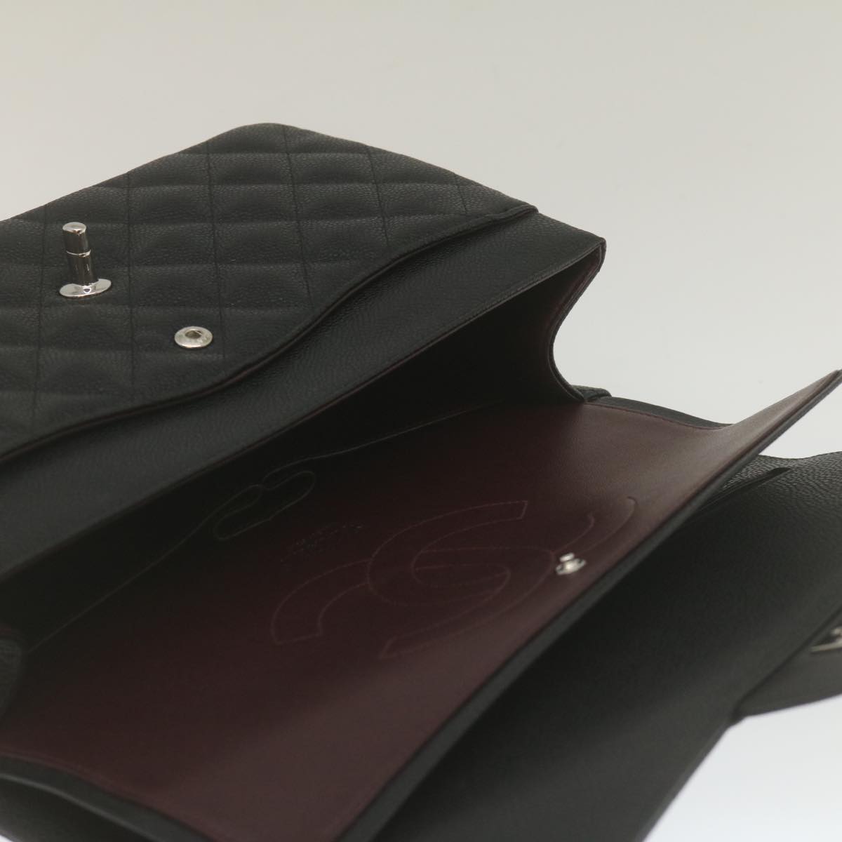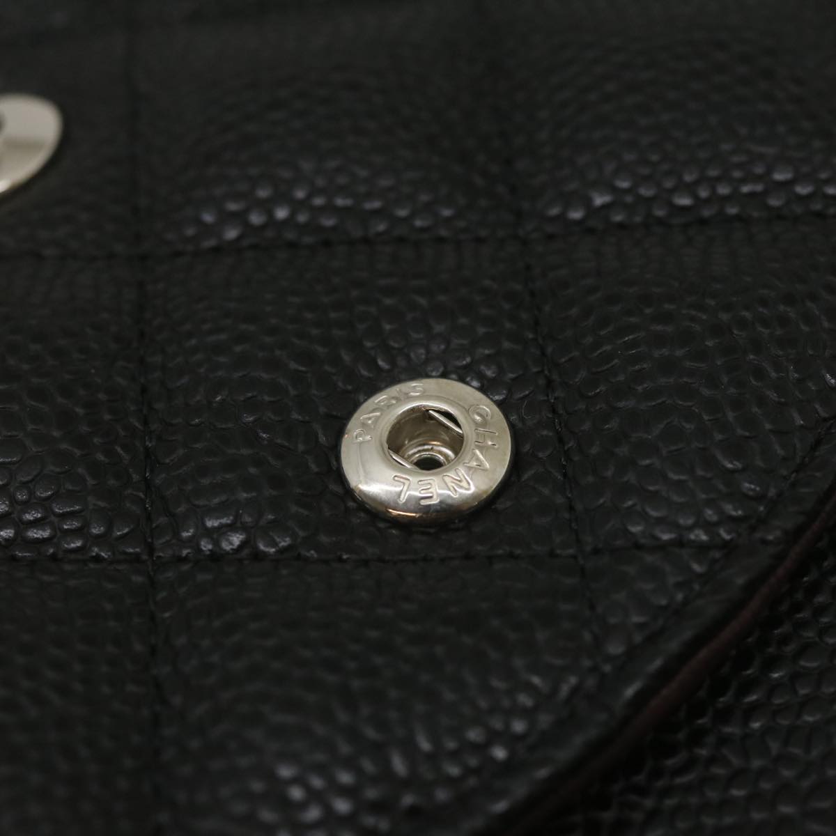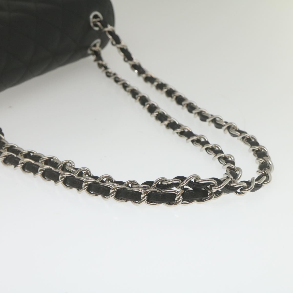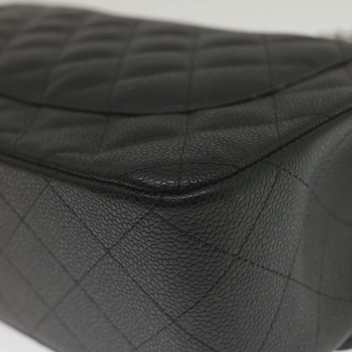 Chanel Caviar Skin Chain Double Flap Big Matelasse ShoulderBag Black Auth 29507A