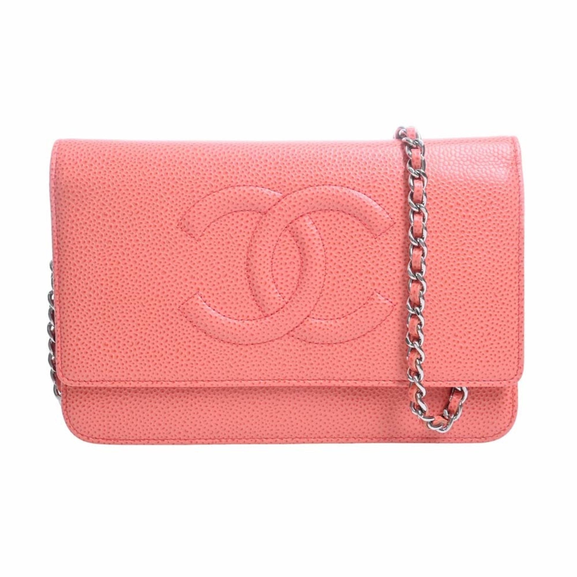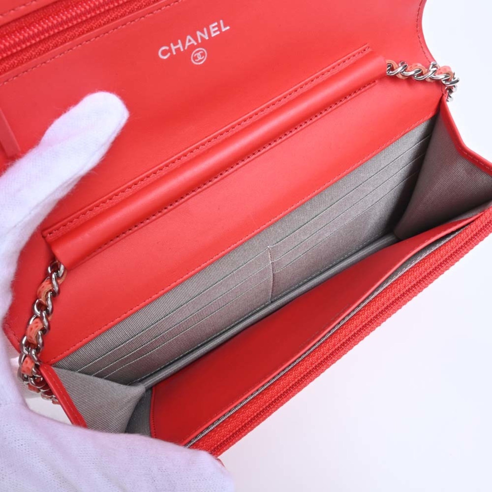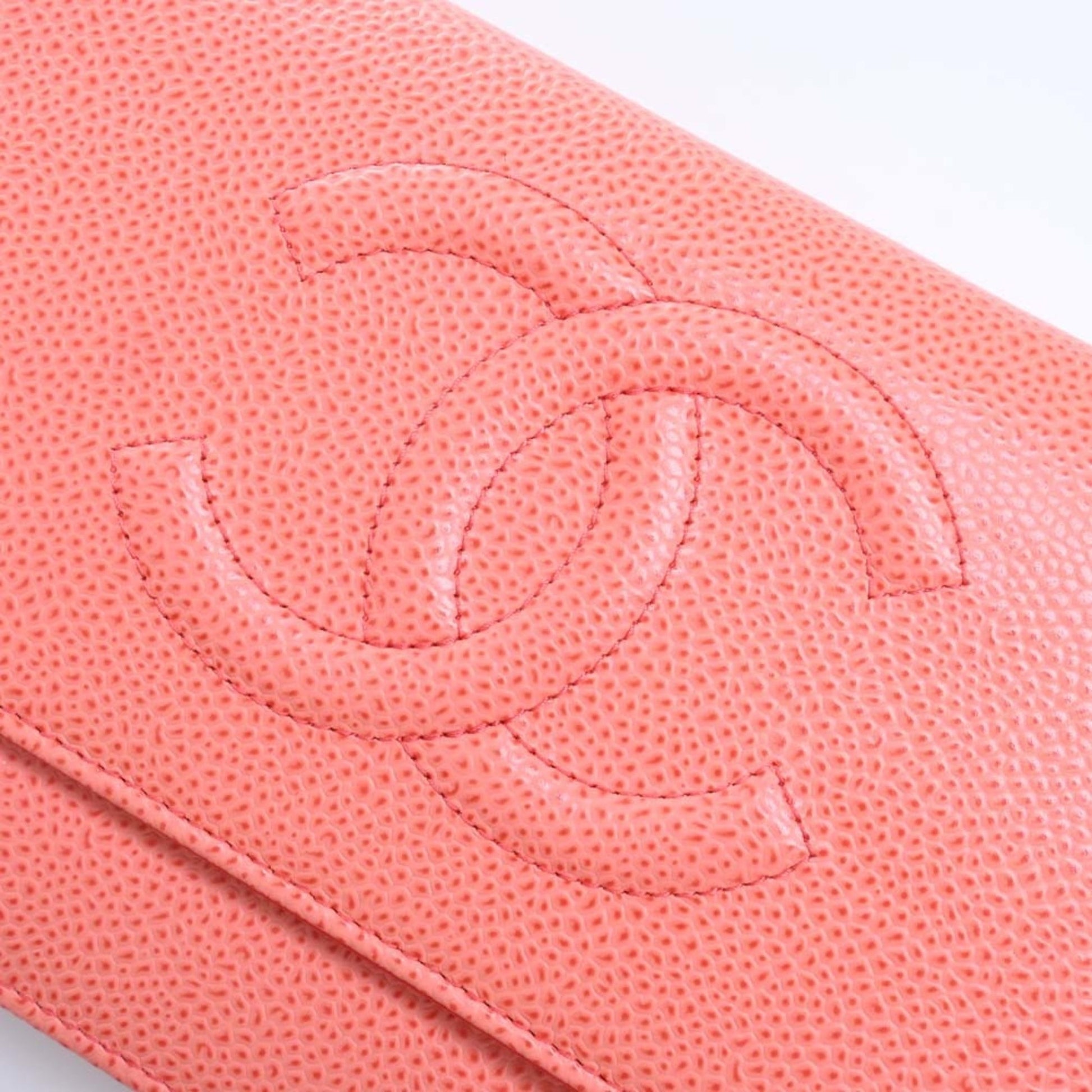 Chanel Caviar Skin Coco Mark Chain Shoulder Long Wallet Orange Ladies