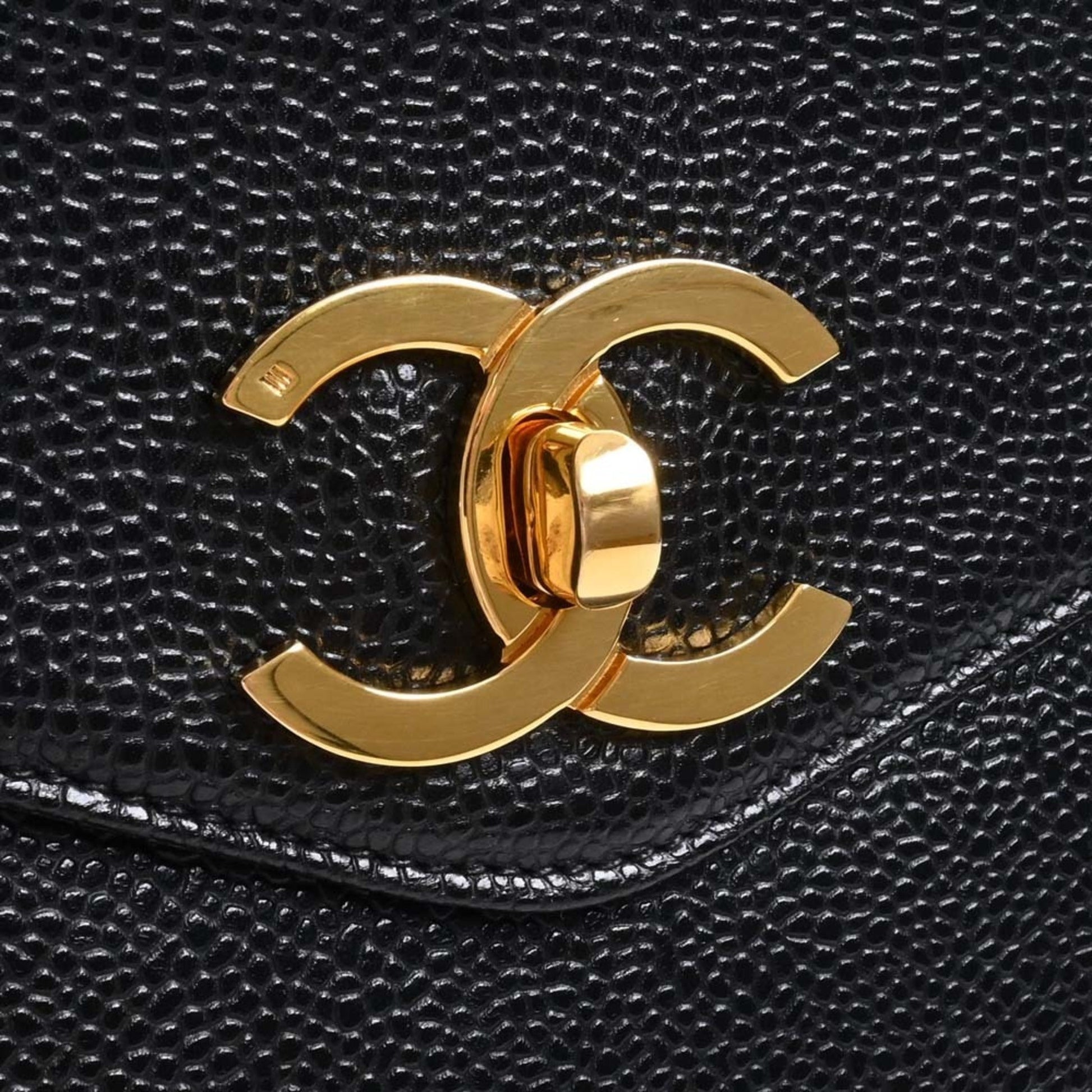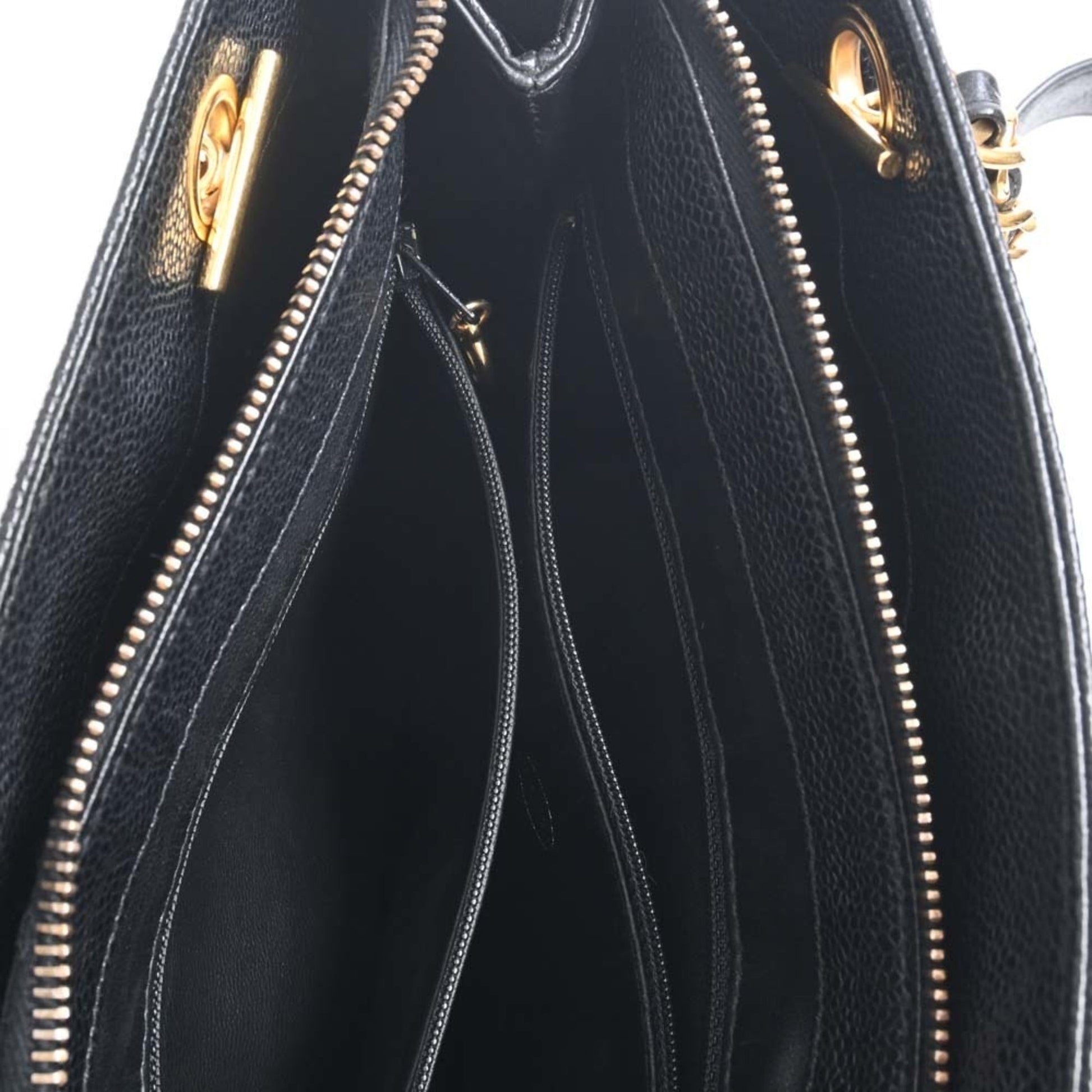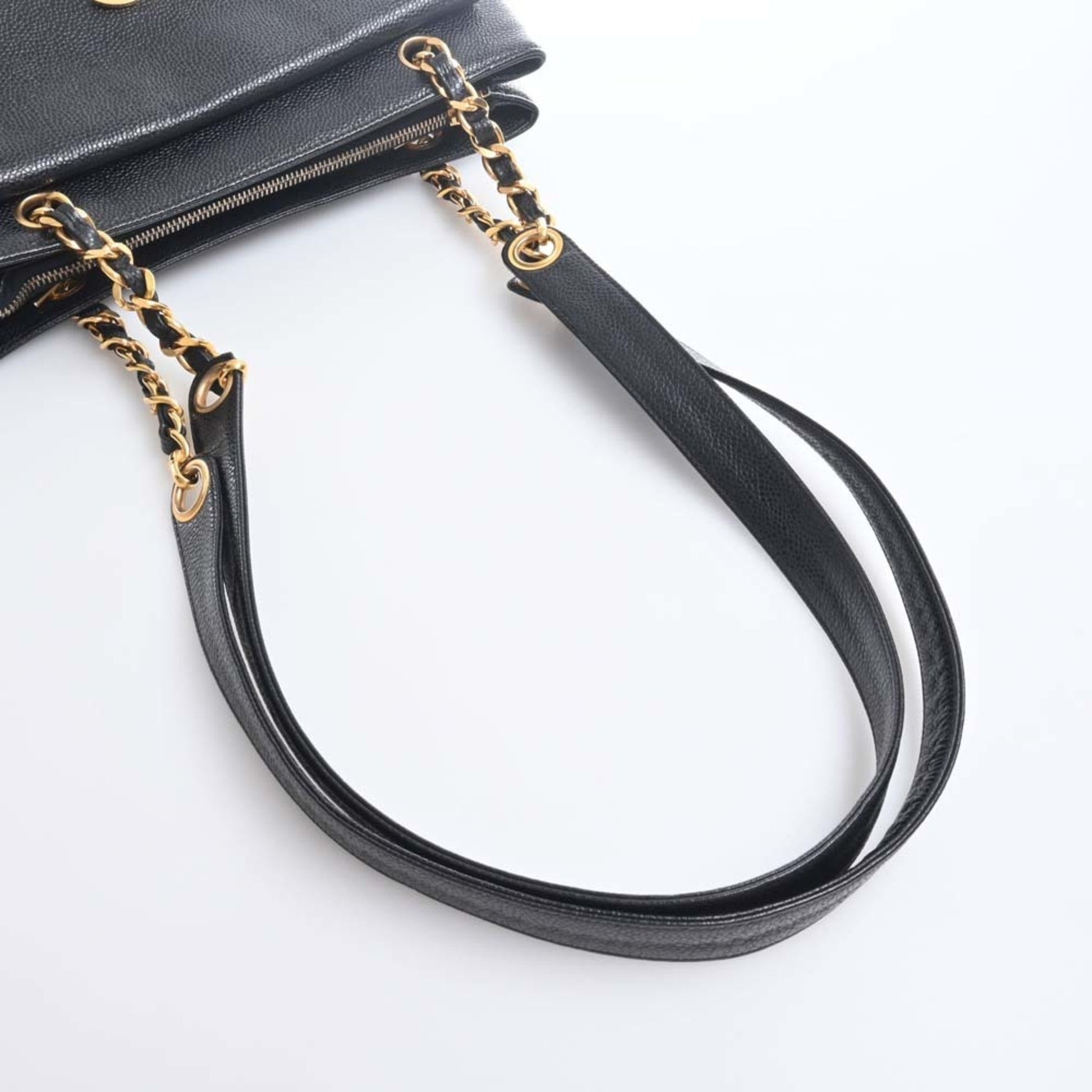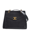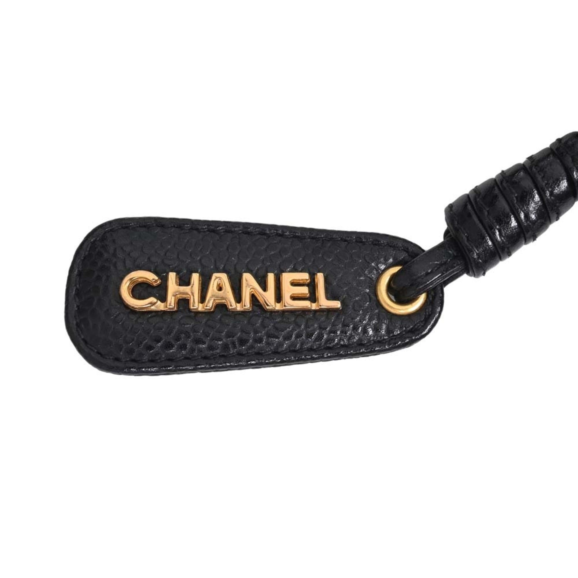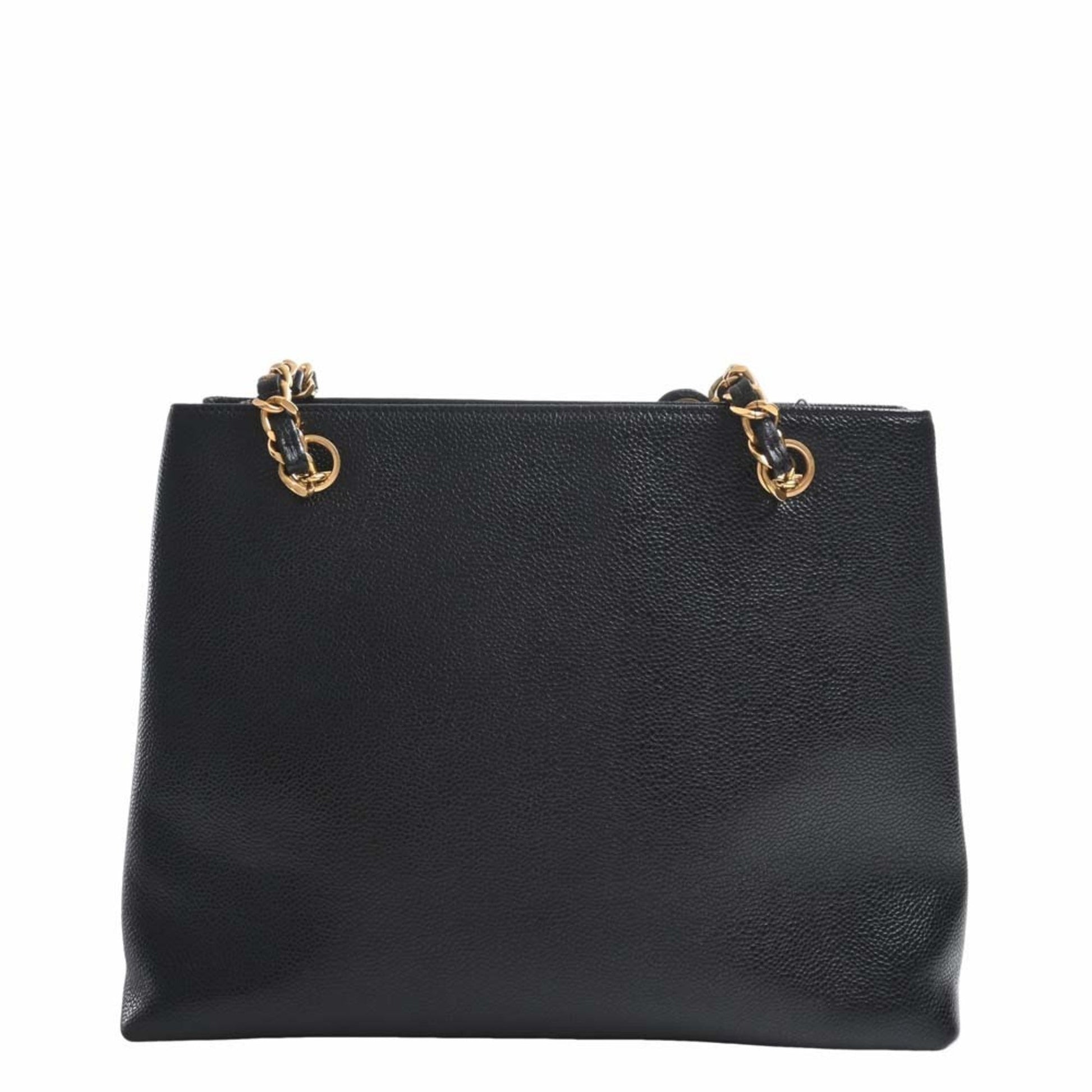 Chanel Caviar Skin Coco Mark Chain Tote Bag Black Ladies