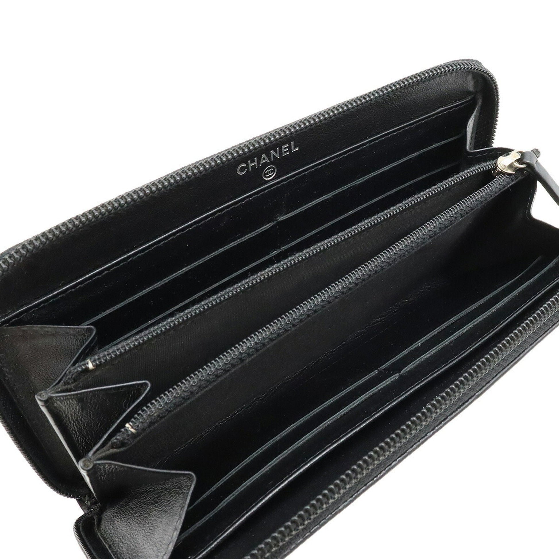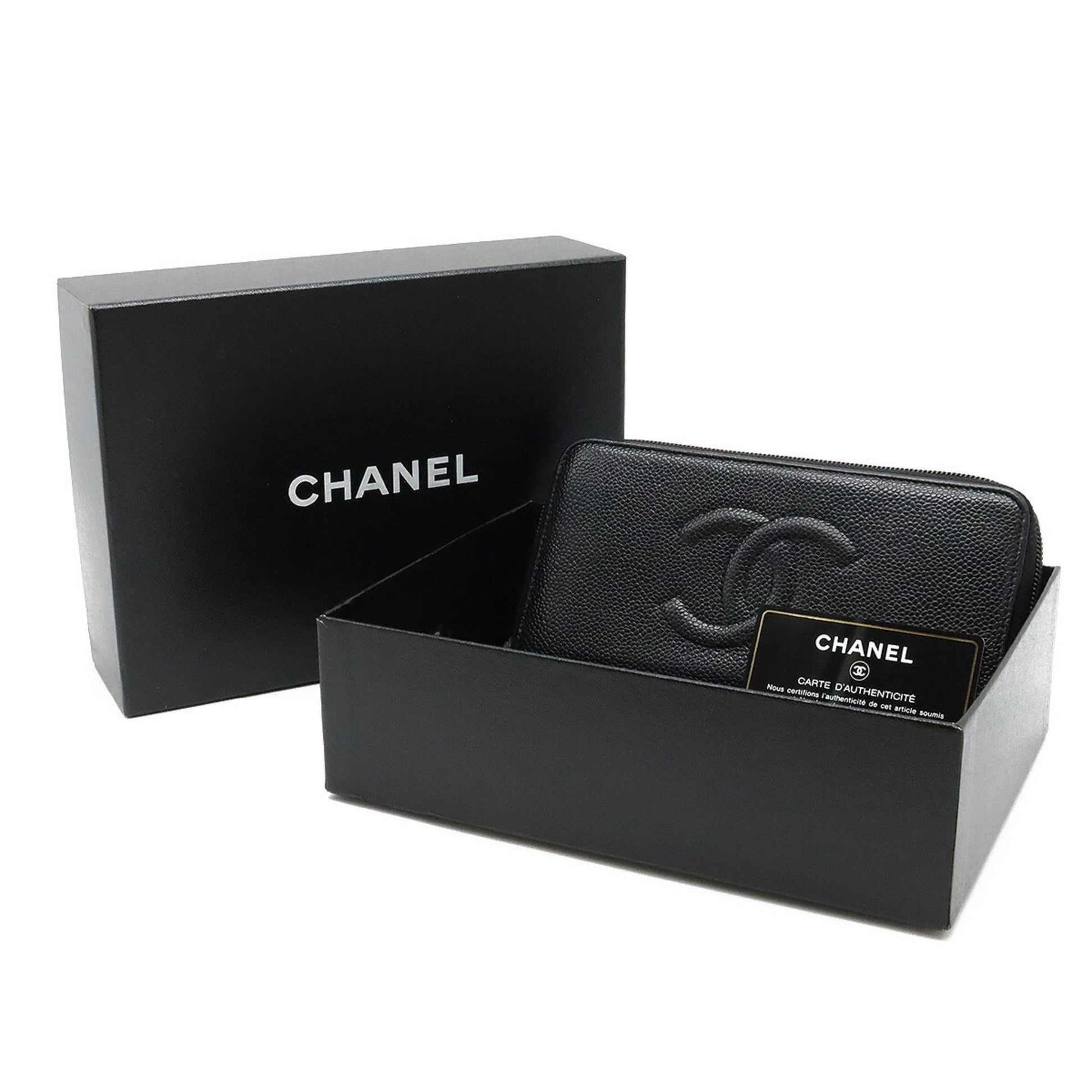 Chanel Caviar Skin Coco Mark Round Long Wallet Leather Black A50071