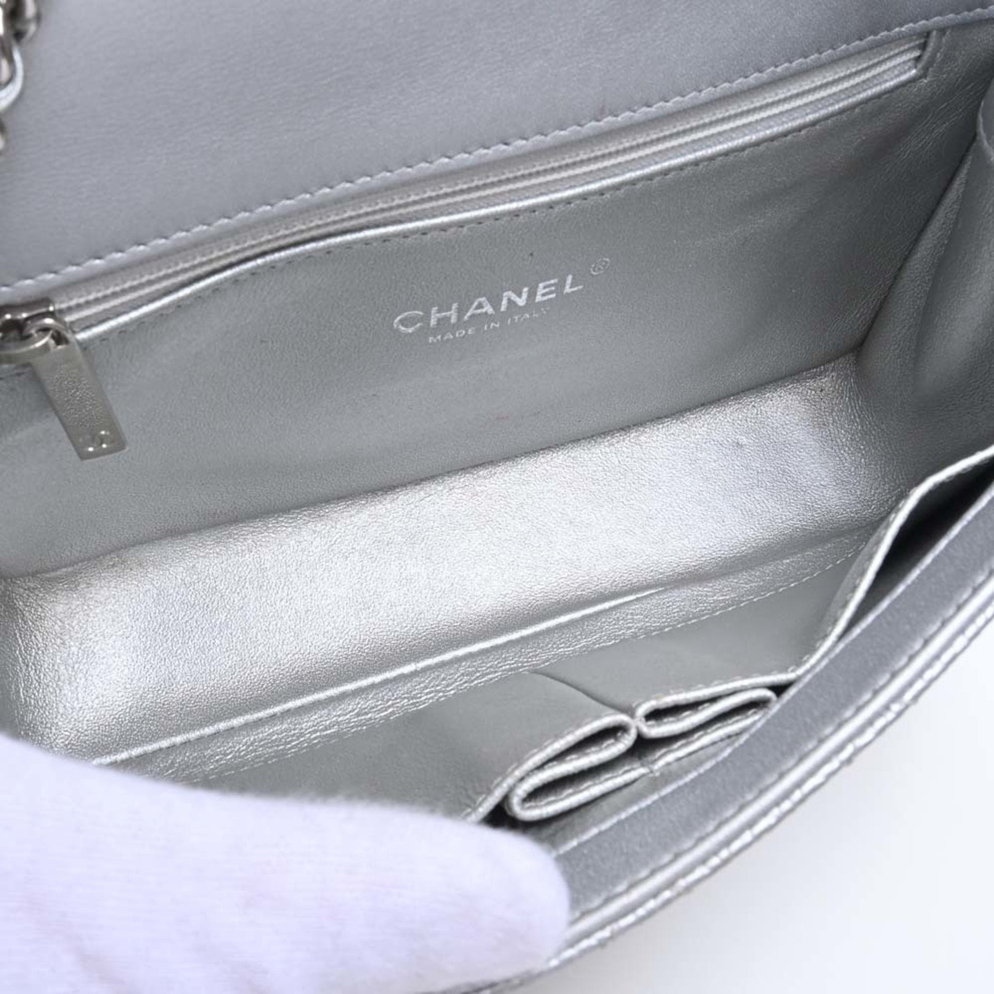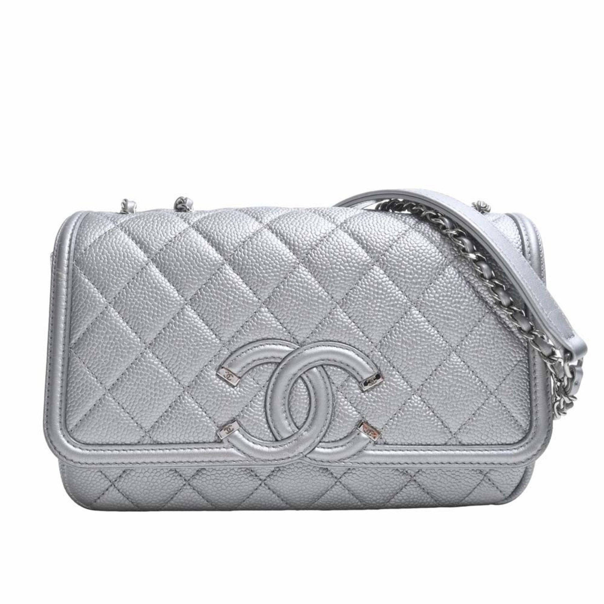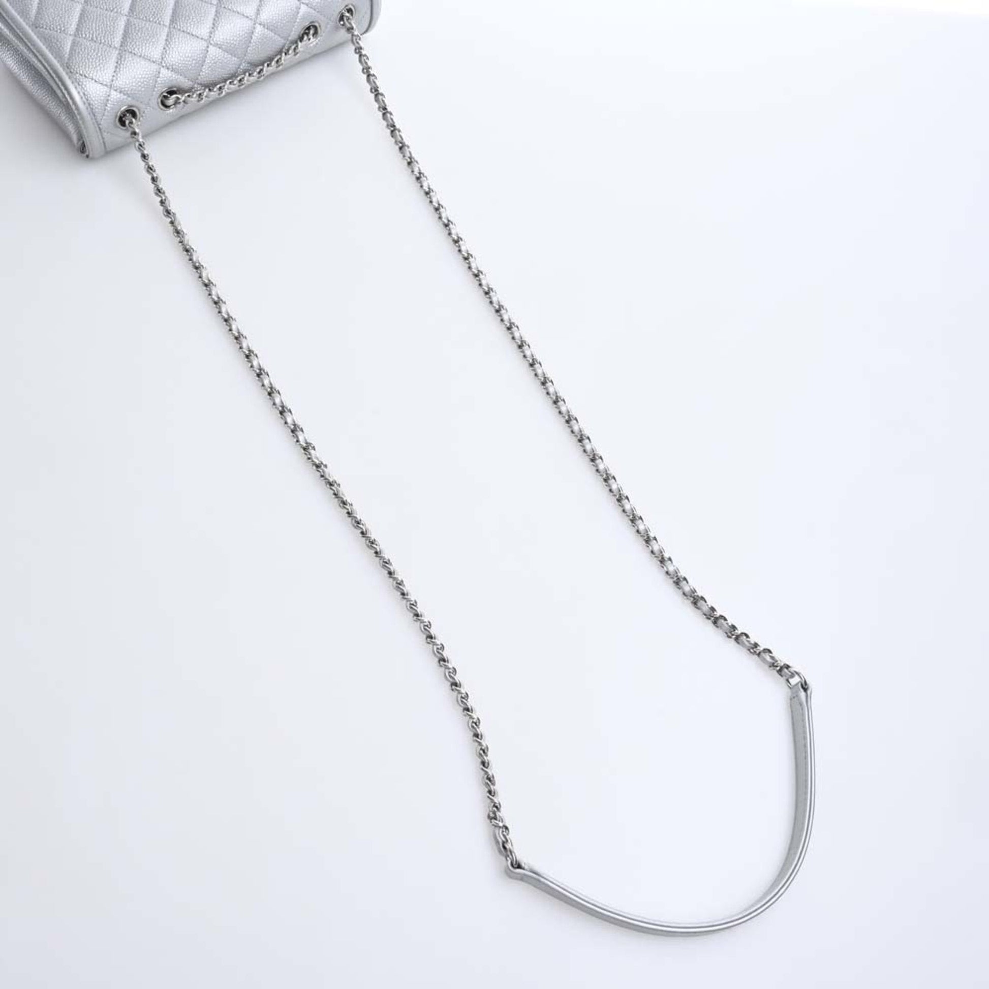 Chanel Caviar Skin Matelasse CC Filigree Chain Shoulder Bag Silver Ladies