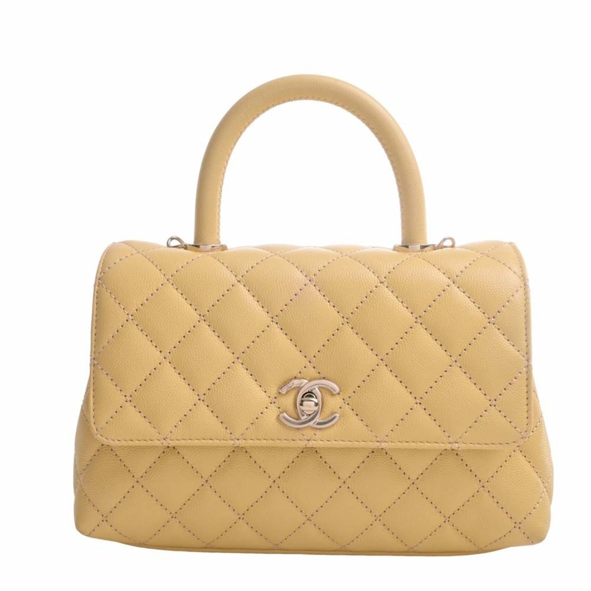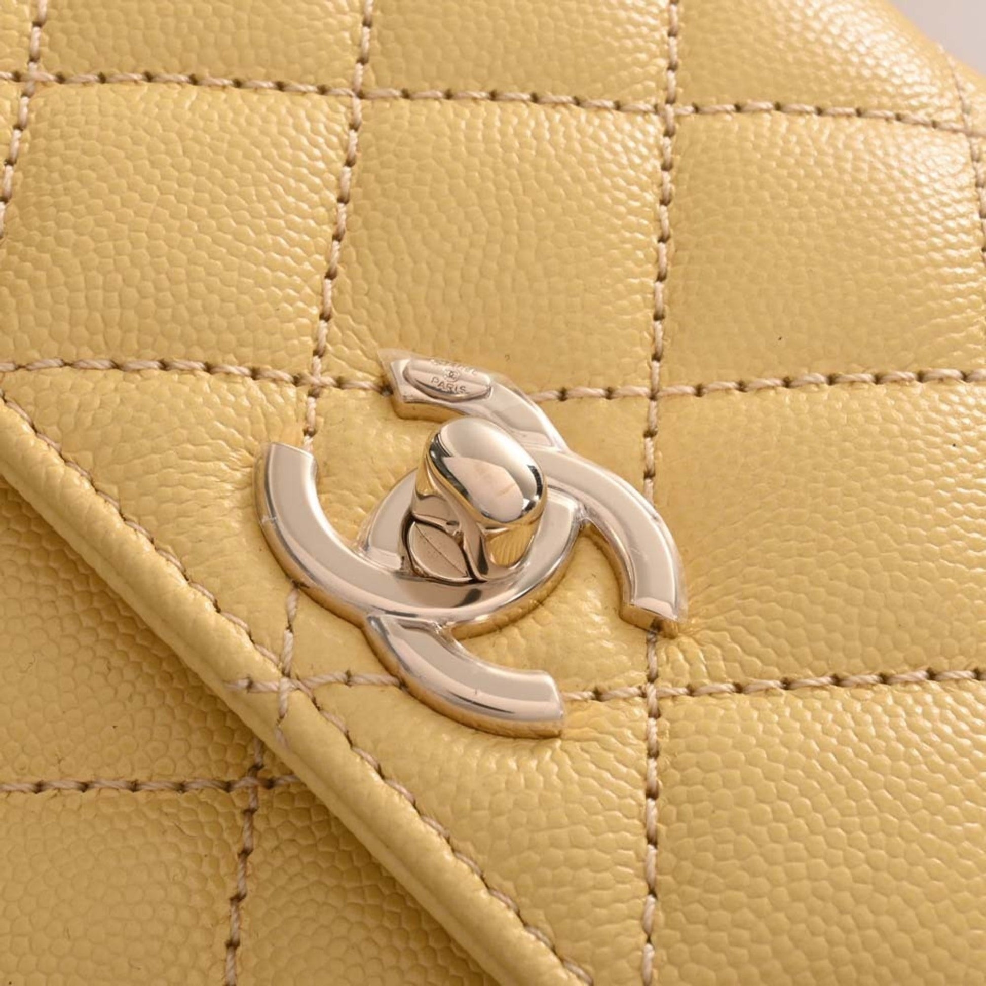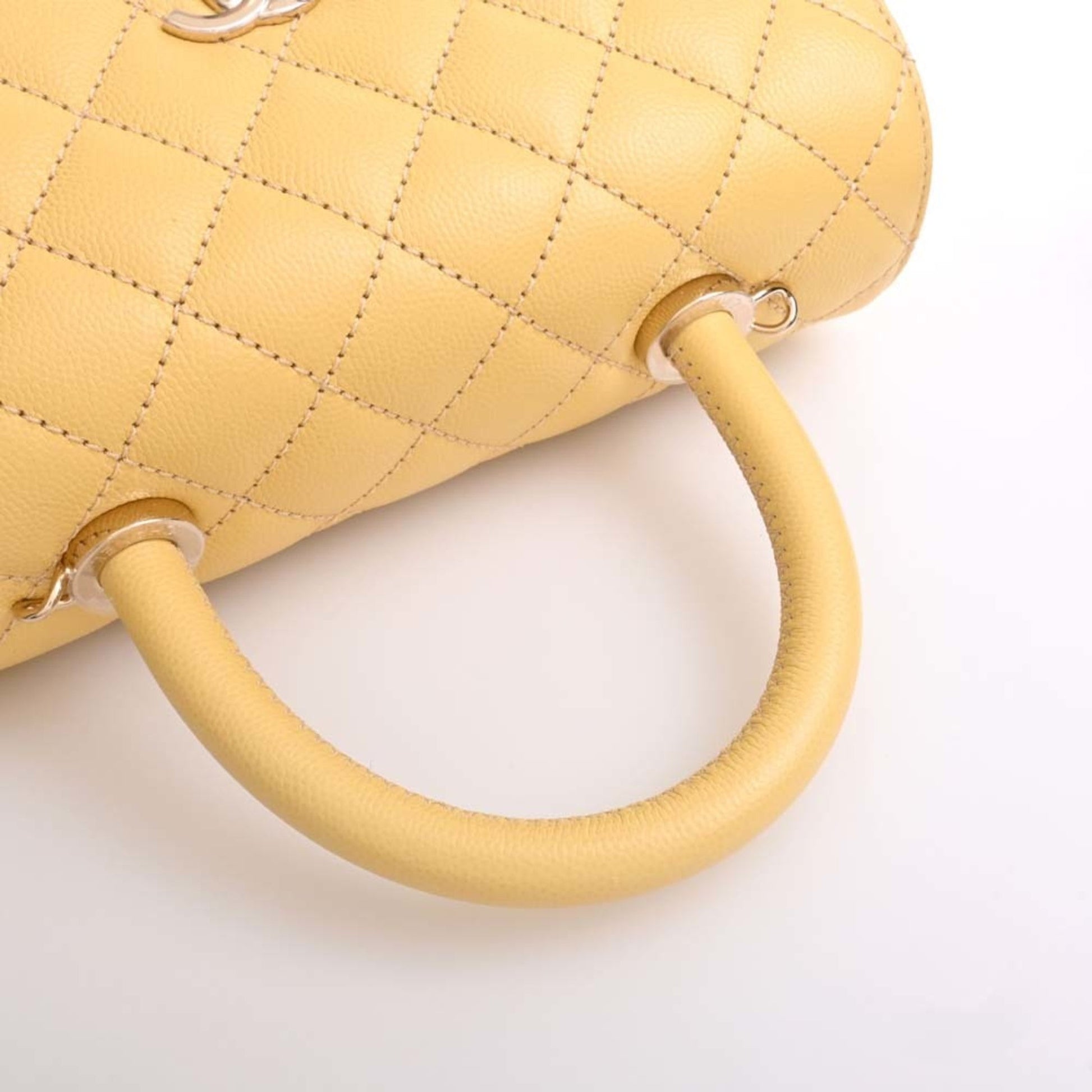 Chanel Caviar Skin Matelasse Coco Mark Chain Shoulder Bag Yellow Ladies