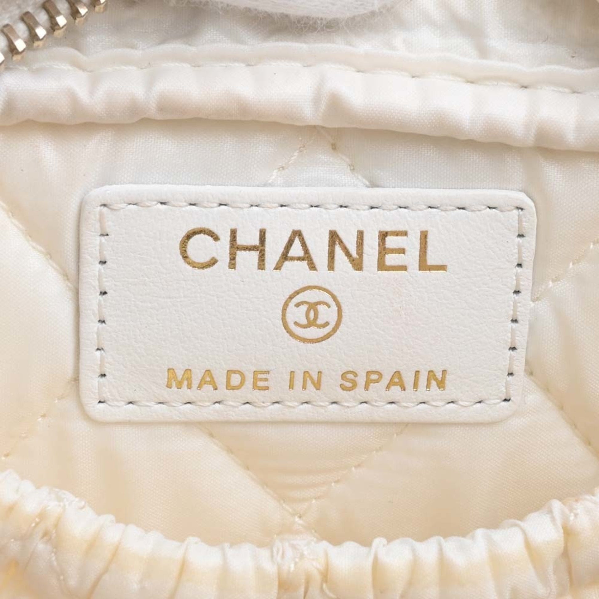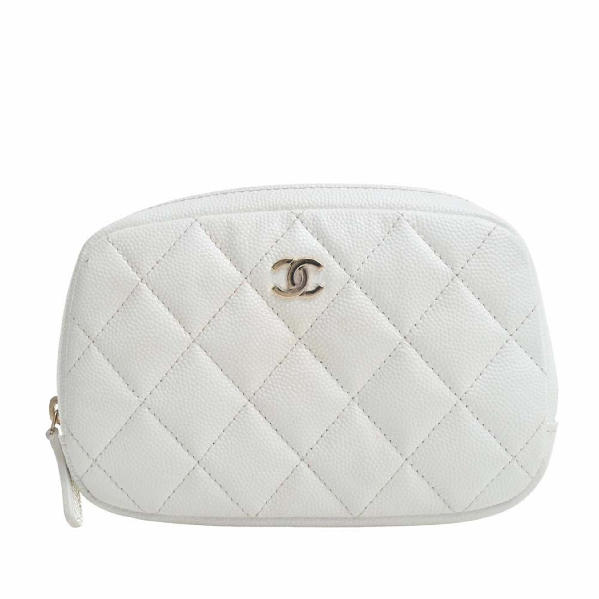 Chanel Caviar Skin Matelasse Coco Mark Pouch White Ladies