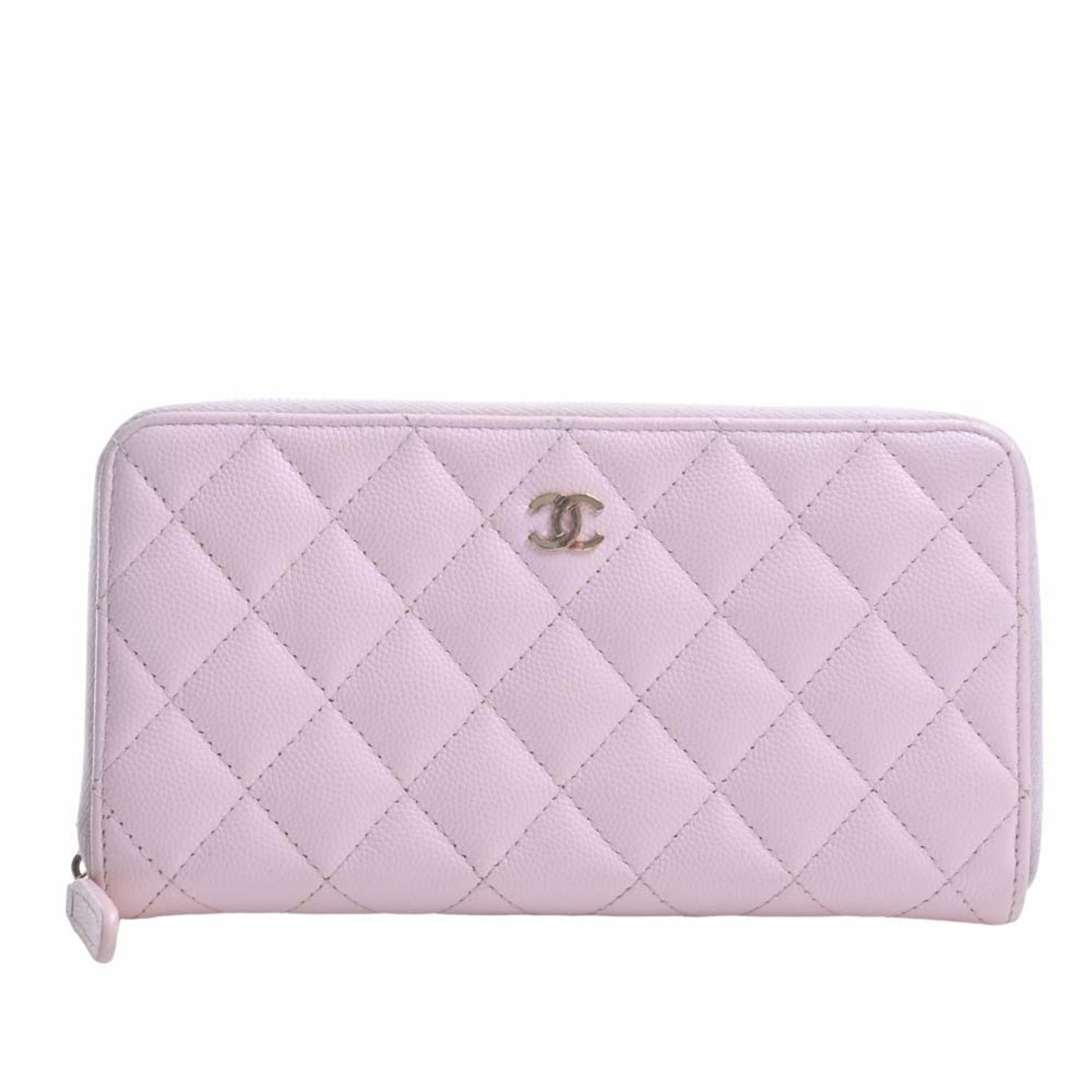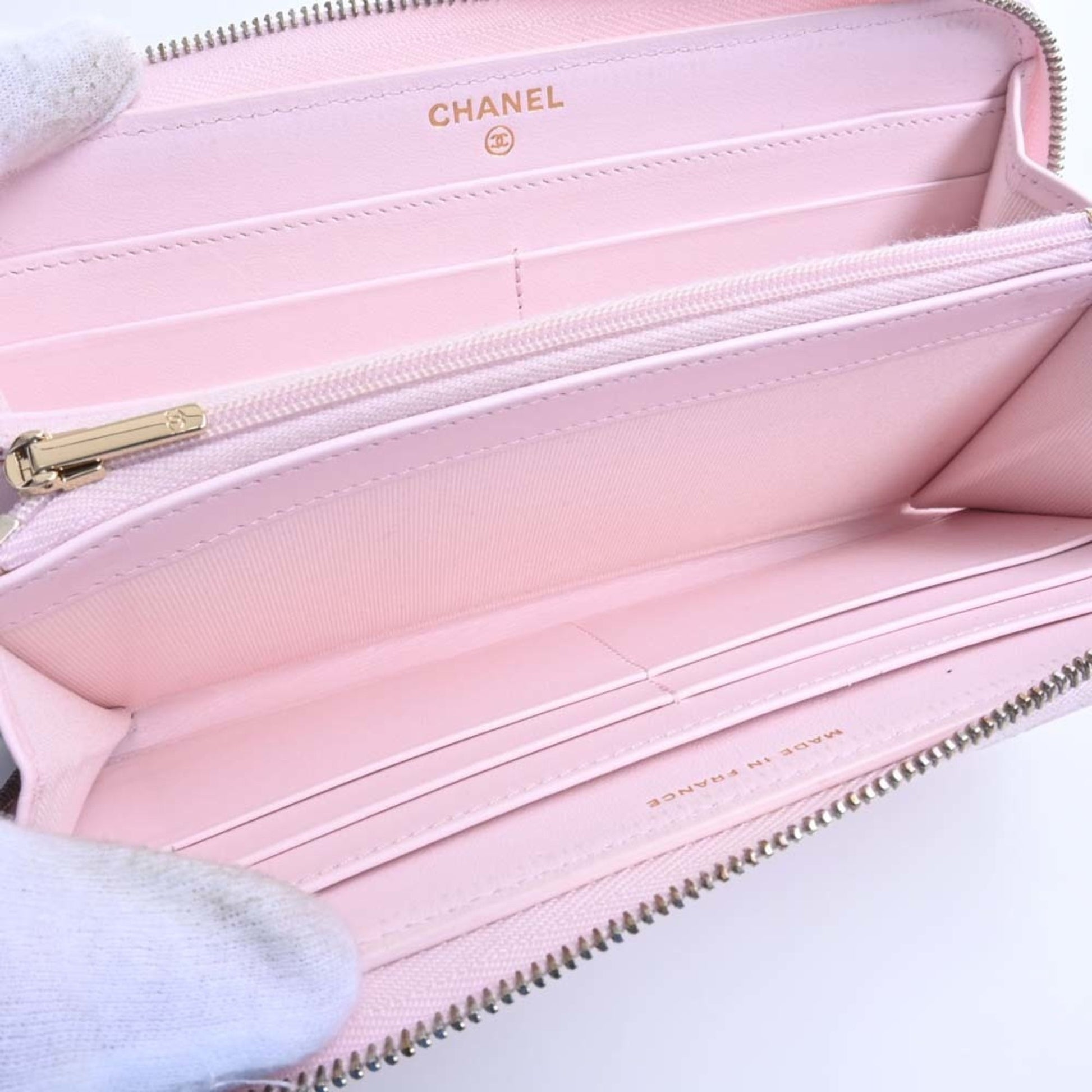 Chanel Caviar Skin Matelasse Coco Mark Round Long Wallet Pink Ladies