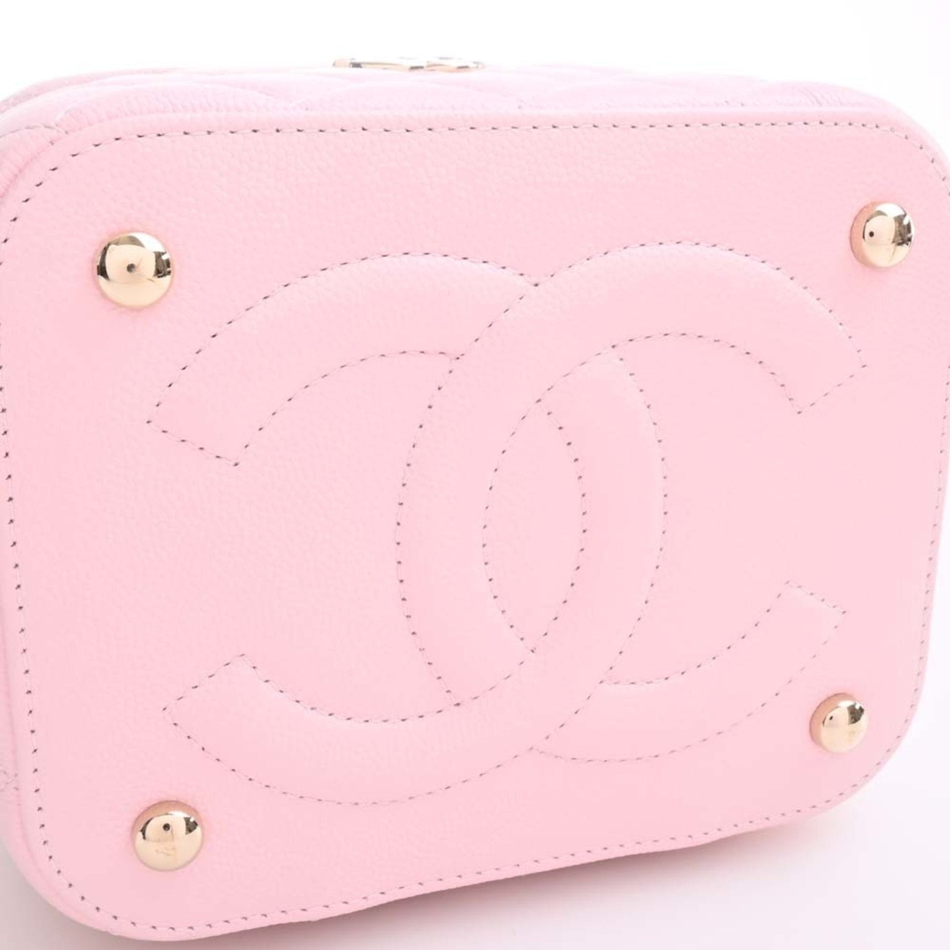 Chanel Caviar Skin Matelasse Coco Mark Small Vanity Bag Shoulder Pink Ladies