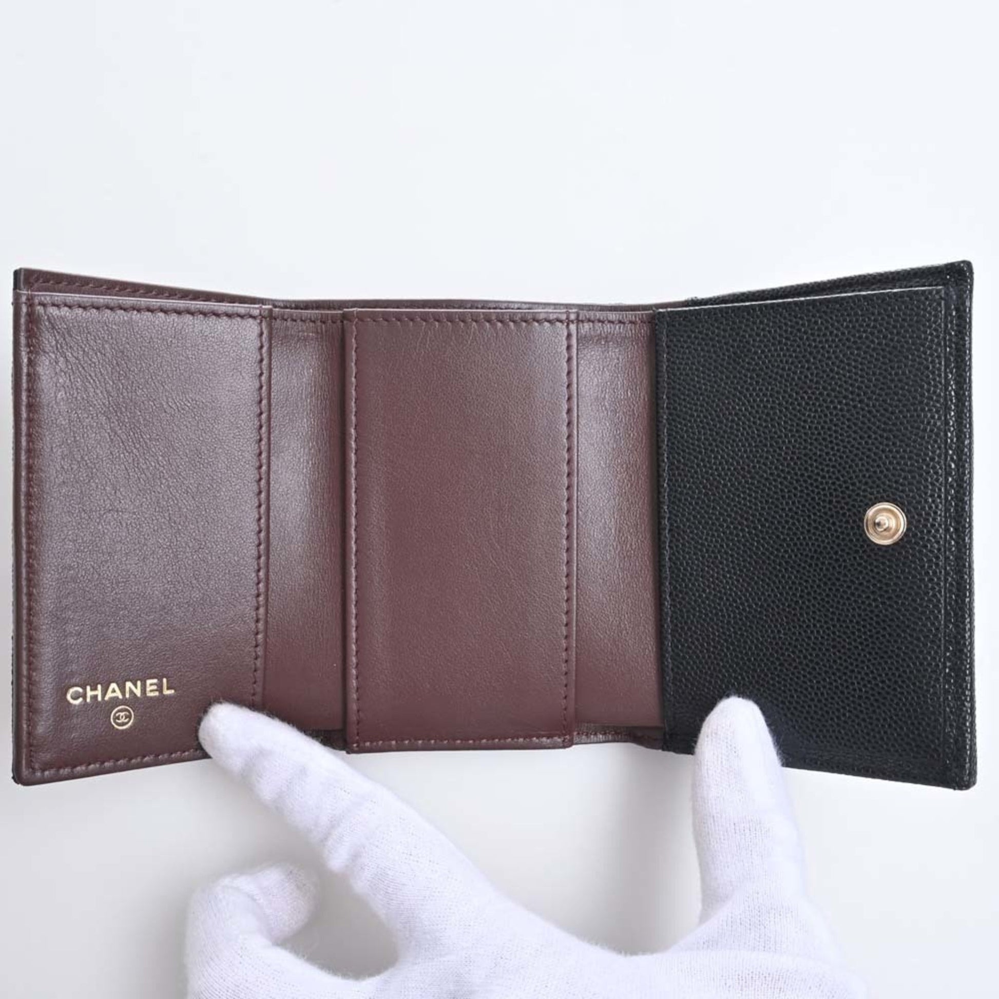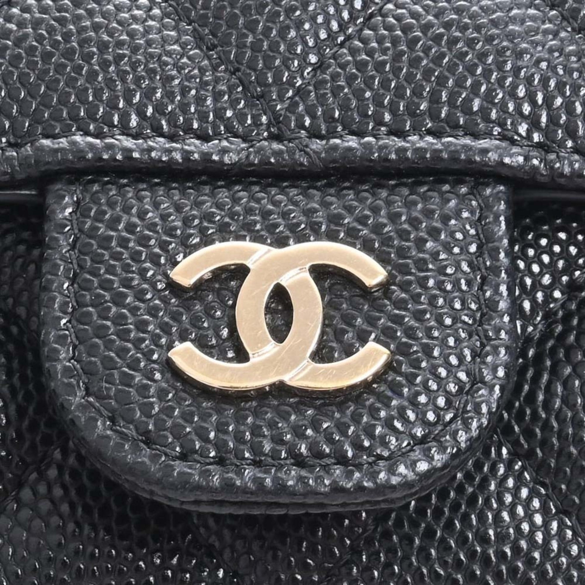 Chanel Caviar Skin Matelasse Coco Mark Trifold Wallet Black Ladies