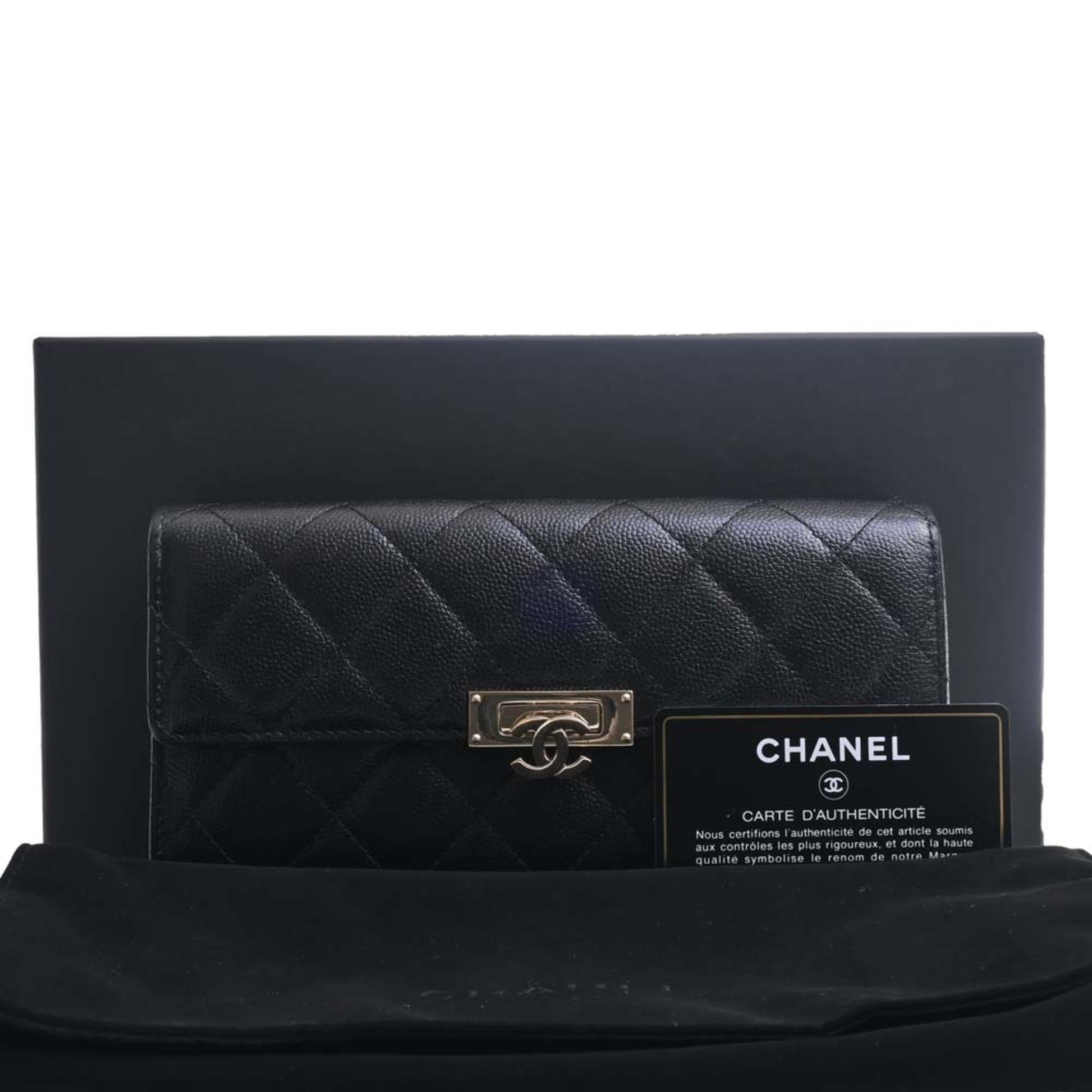 Chanel Caviar Skin Matelasse Coco Rock Bifold Long Wallet Black Ladies