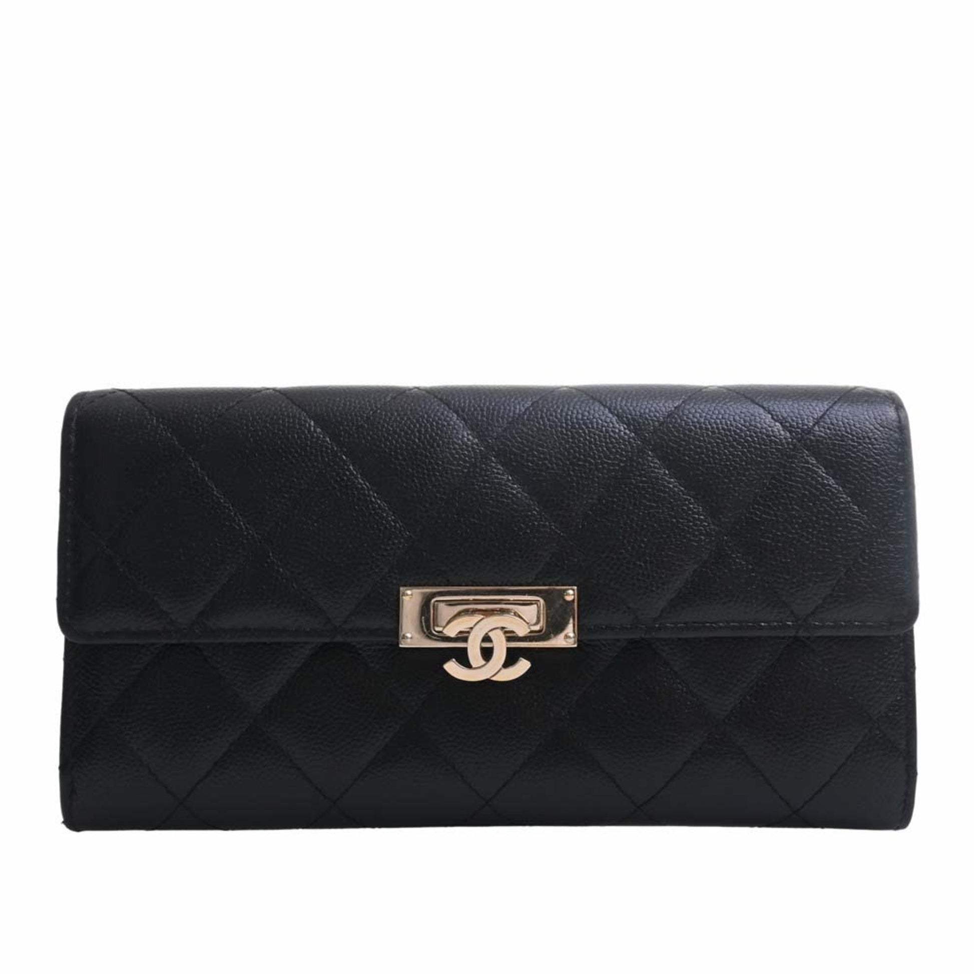 Chanel Caviar Skin Matelasse Coco Rock Bifold Long Wallet Black Ladies