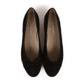 This pair of CC Ballet flats are in Black quilted suede with a Black suede "CC" logo at the toes, tie front, tonal stitching, and black leather soles.