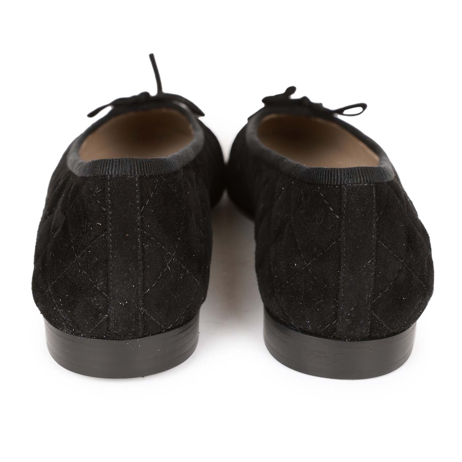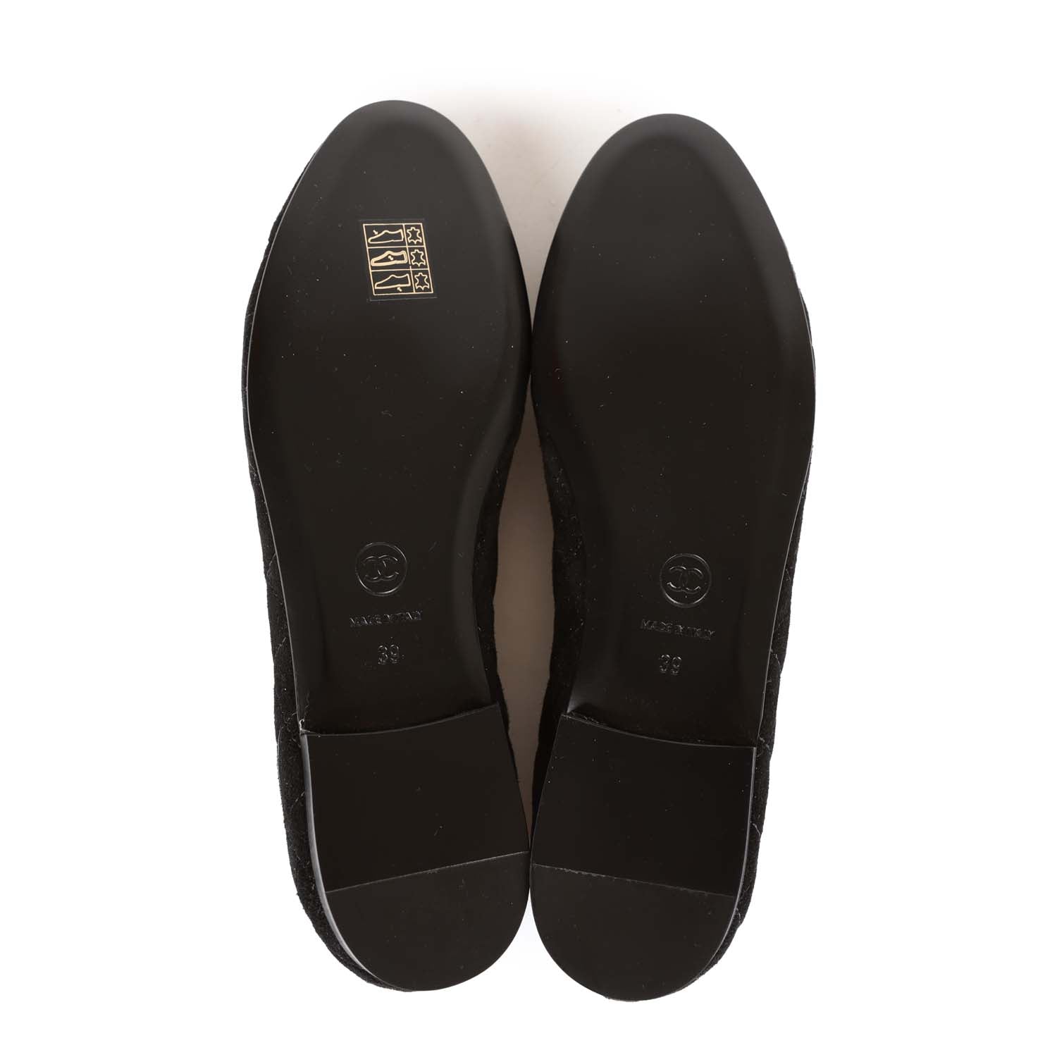 Chanel CC Black Suede Quilted Ballet Flats 39