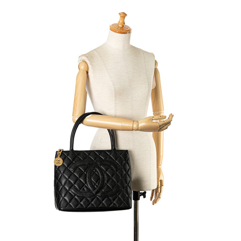 Chanel CC Caviar Medallion Tote Leather Tote Bag in Good condition