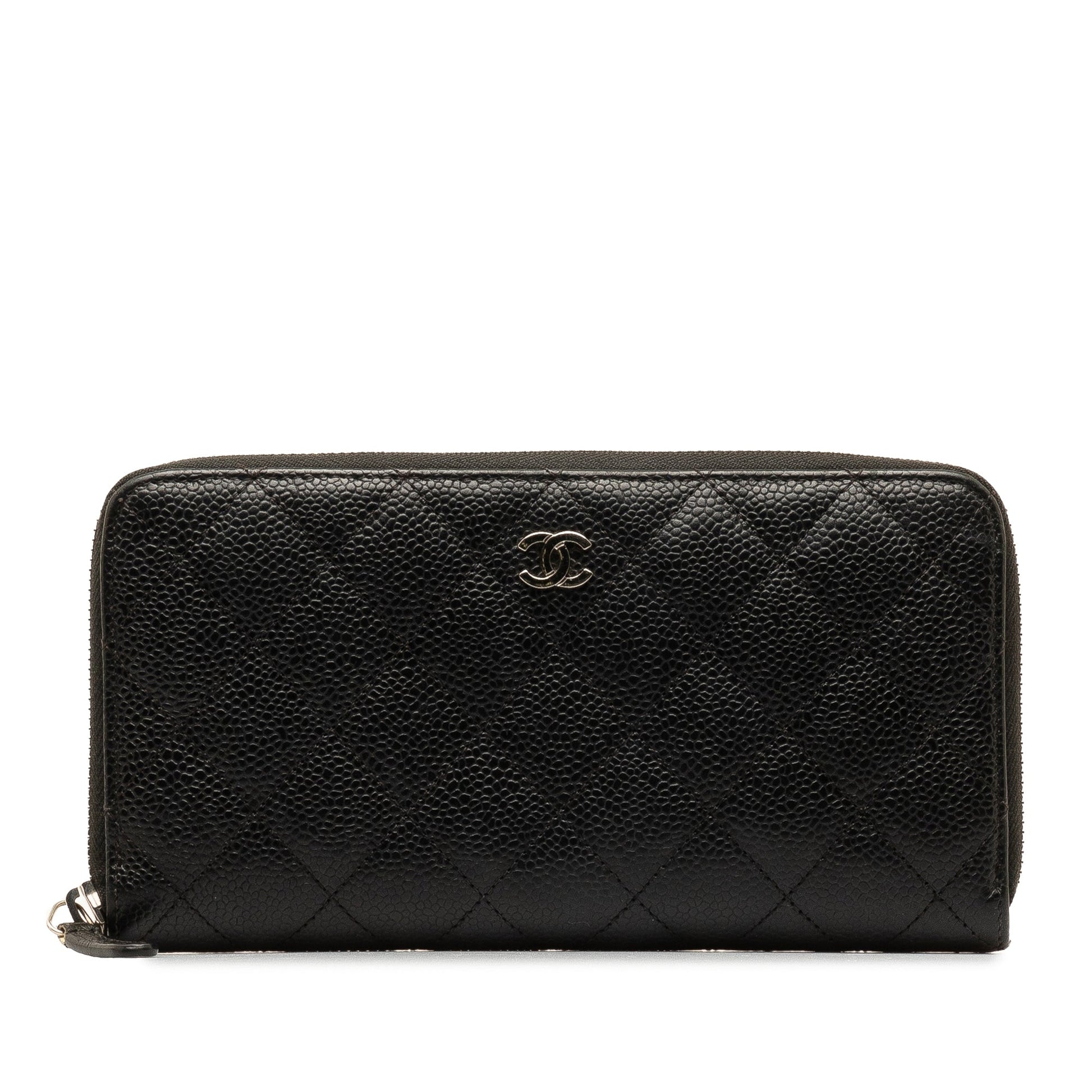 Chanel CC Caviar Zip Around Wallet Long Wallets