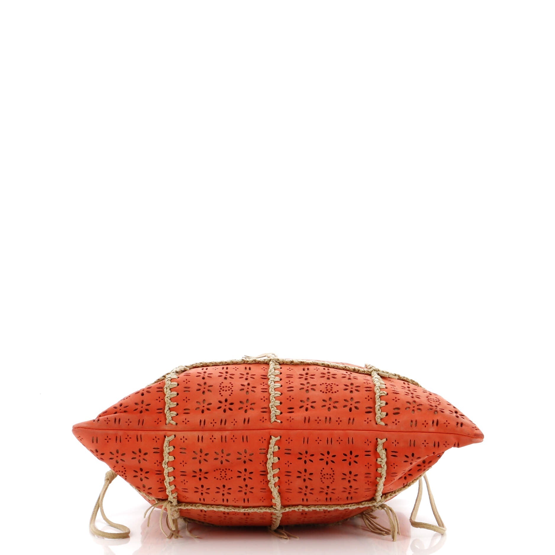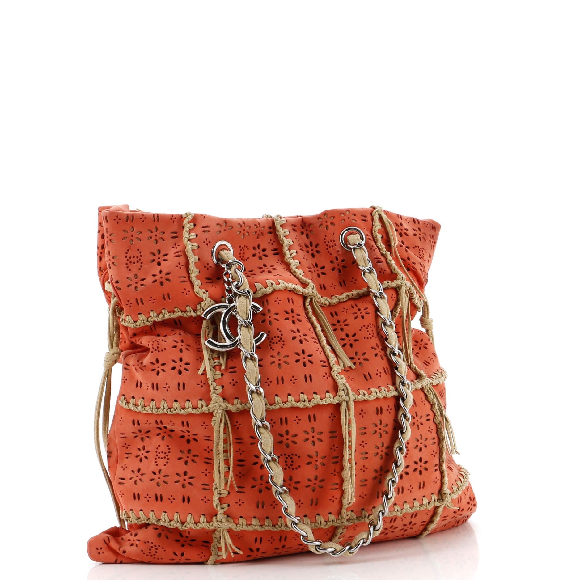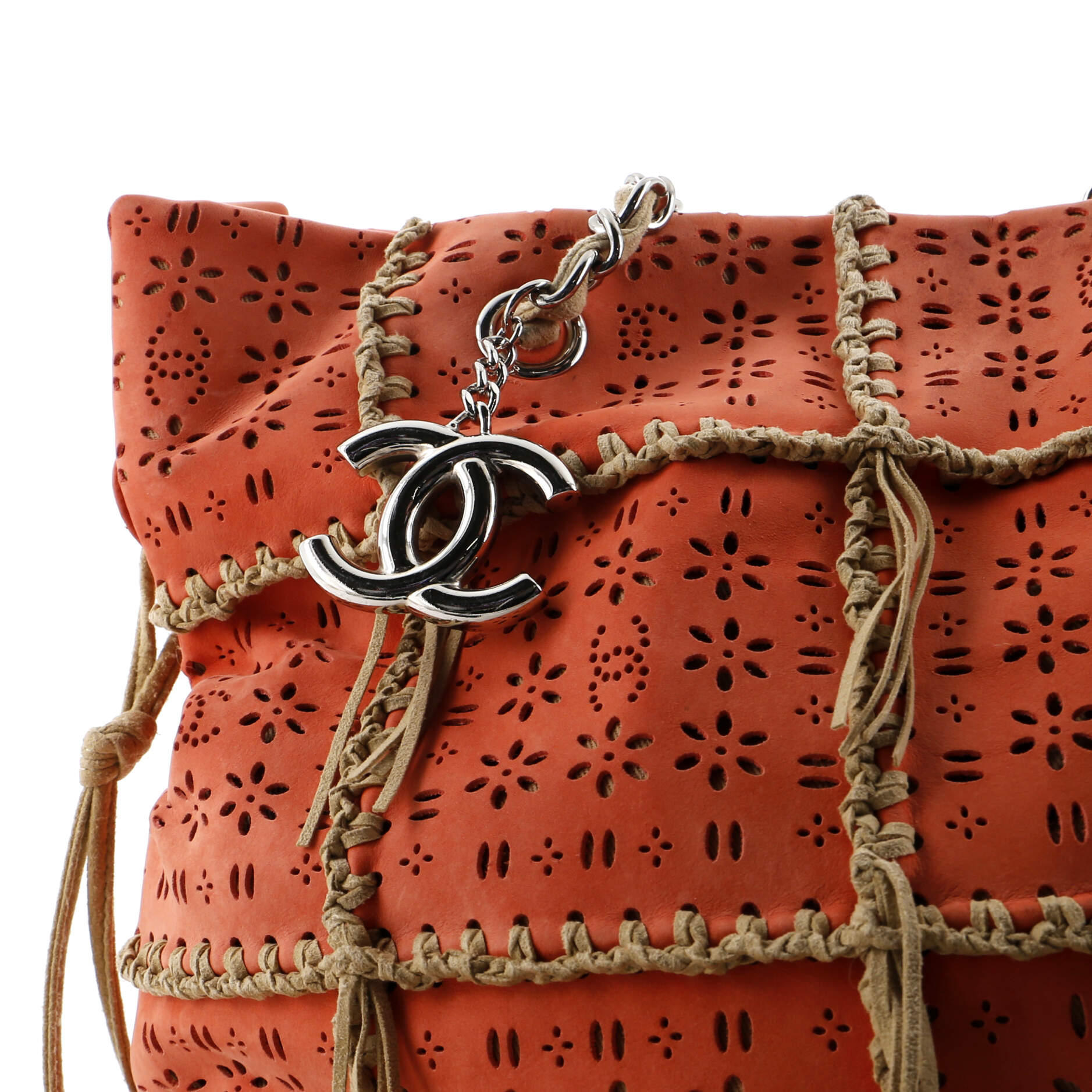 Elevate your style with the exquisite Chanel CC Drawstring Tote. Crafted from luxurious laser-cut leather, this large tote exudes sophistication and elegance. The intricate fringe detailing adds a touch of playfulness to this timeless piece, making it a versatile accessory for any occasion.