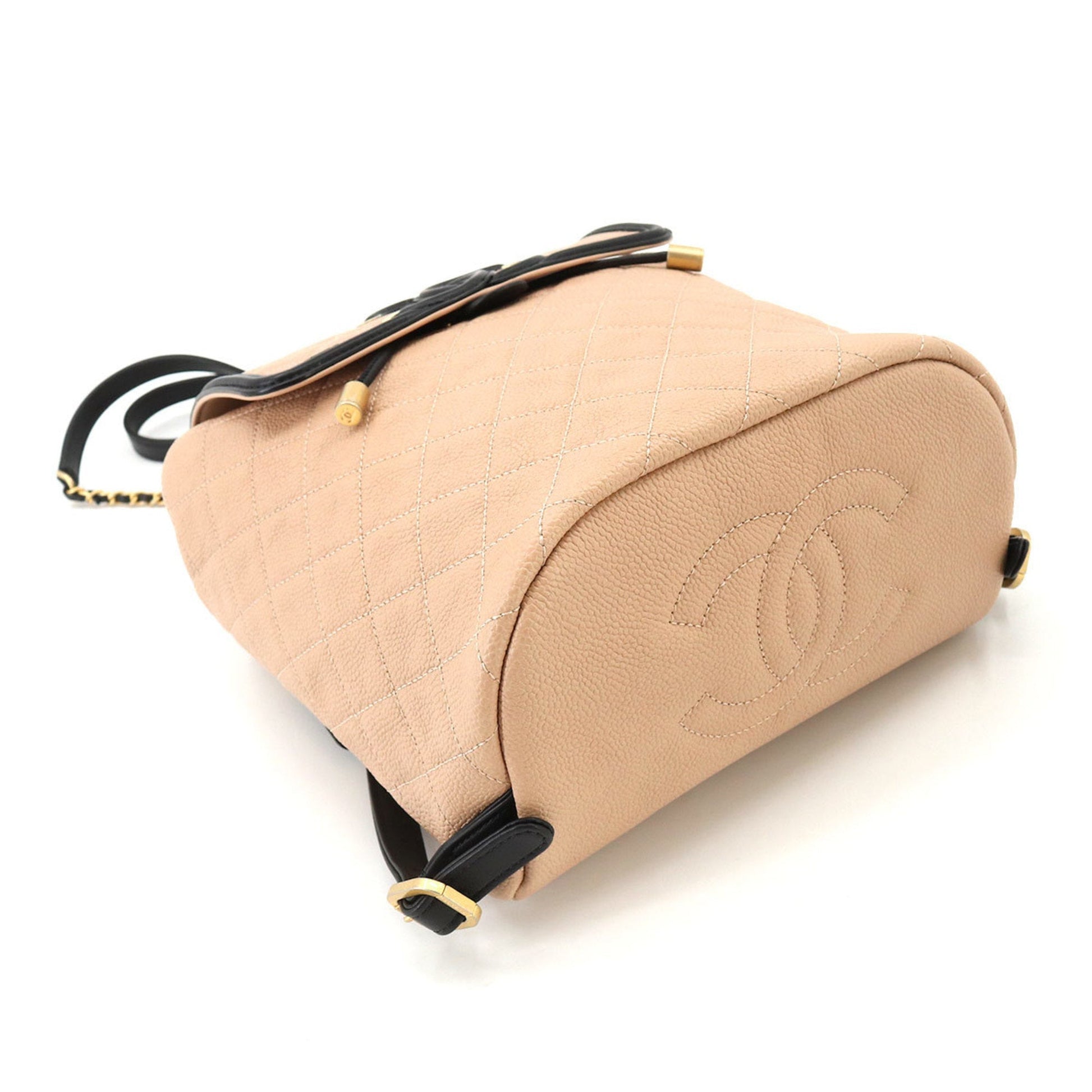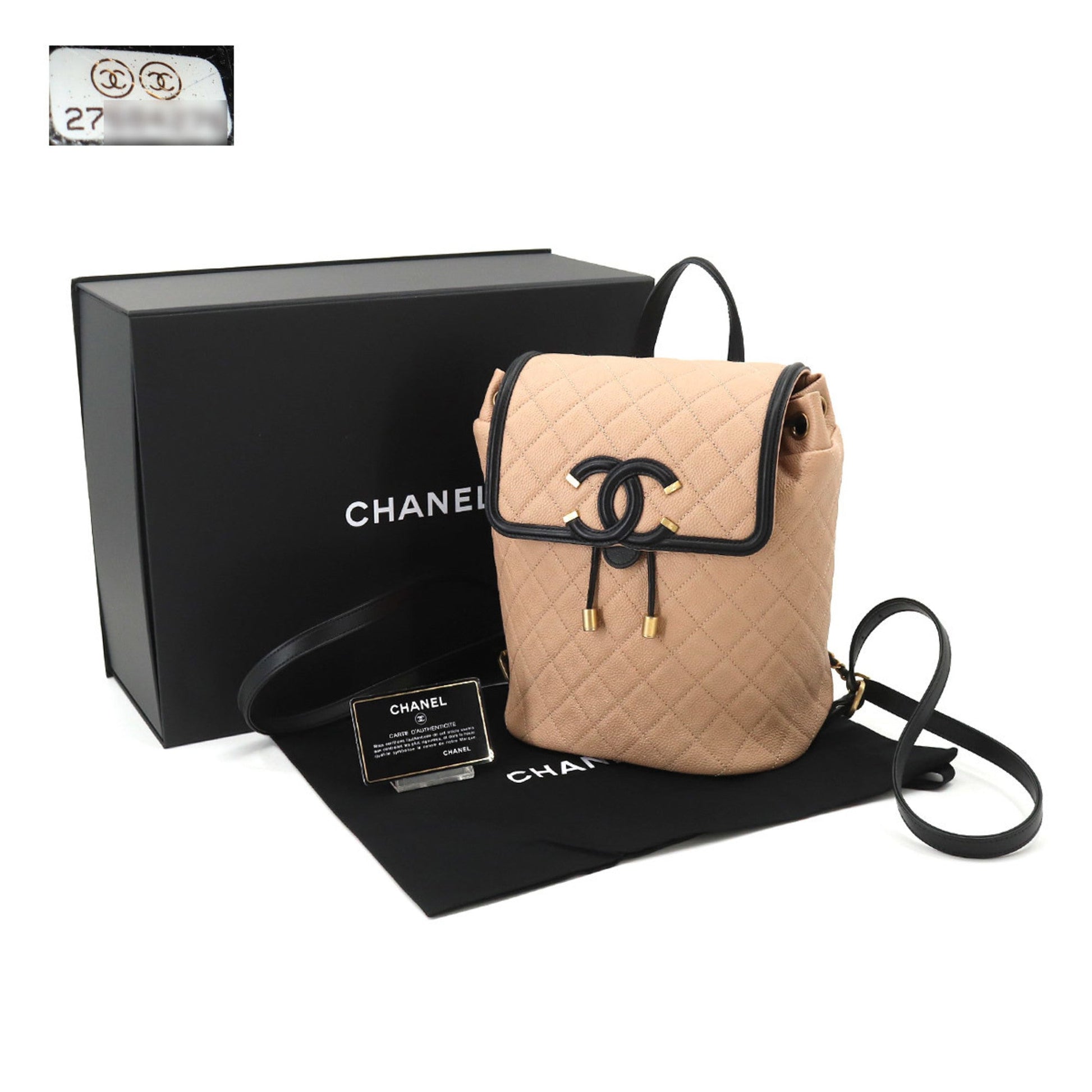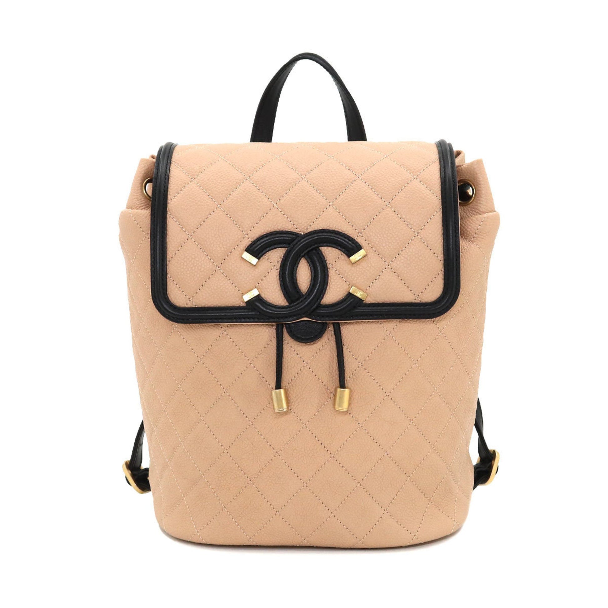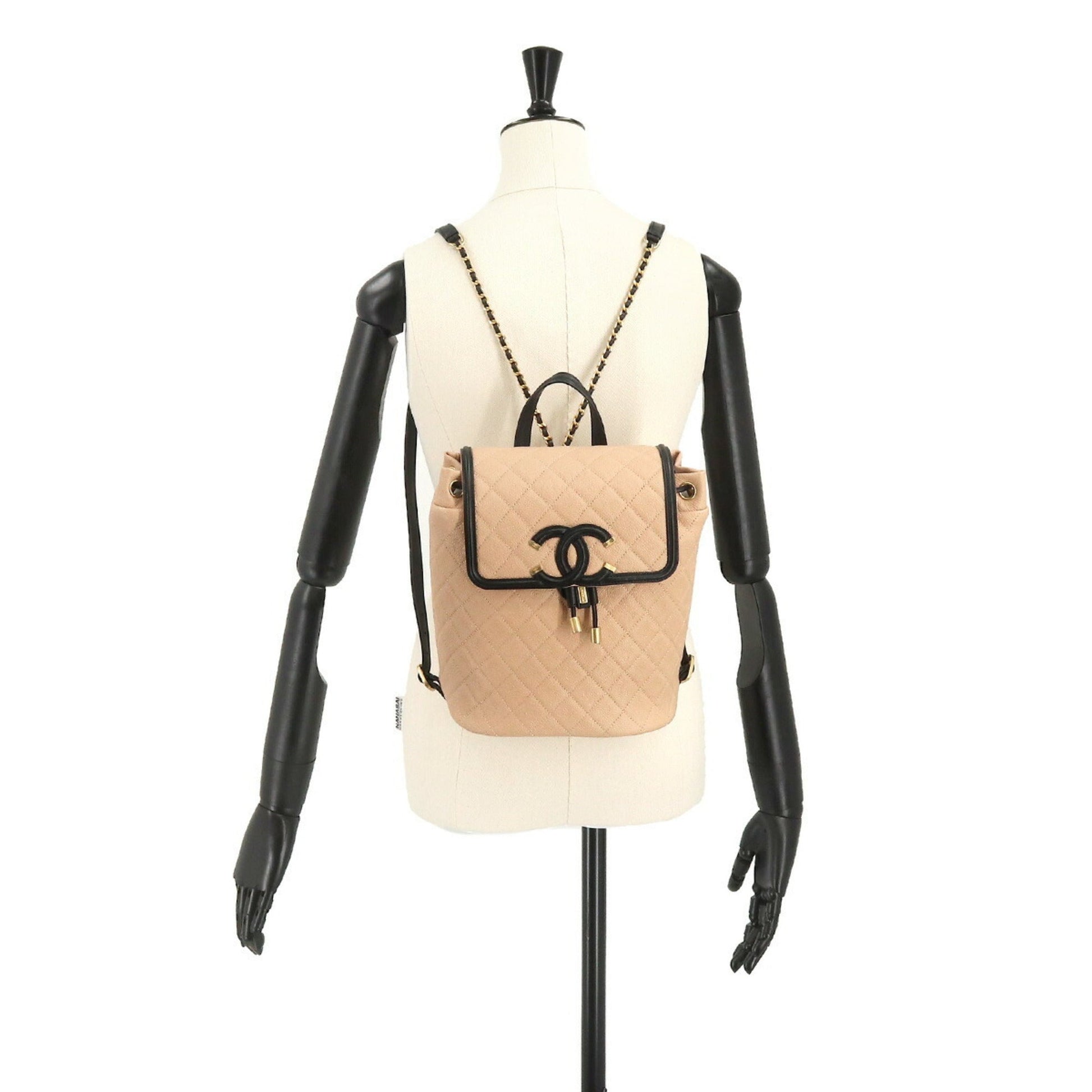 Chanel CC filigree backpack rucksack caviar skin beige black A57090 Filigree Backpack