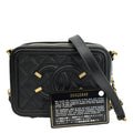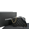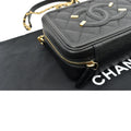 CHANEL CC Filigree Vanity Quilted Caviar Leather Clutch Shoulder Bag Black