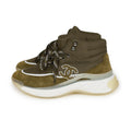 Chanel CC Hightop Winter Sneaker Olive Green Nylon and Suede 35