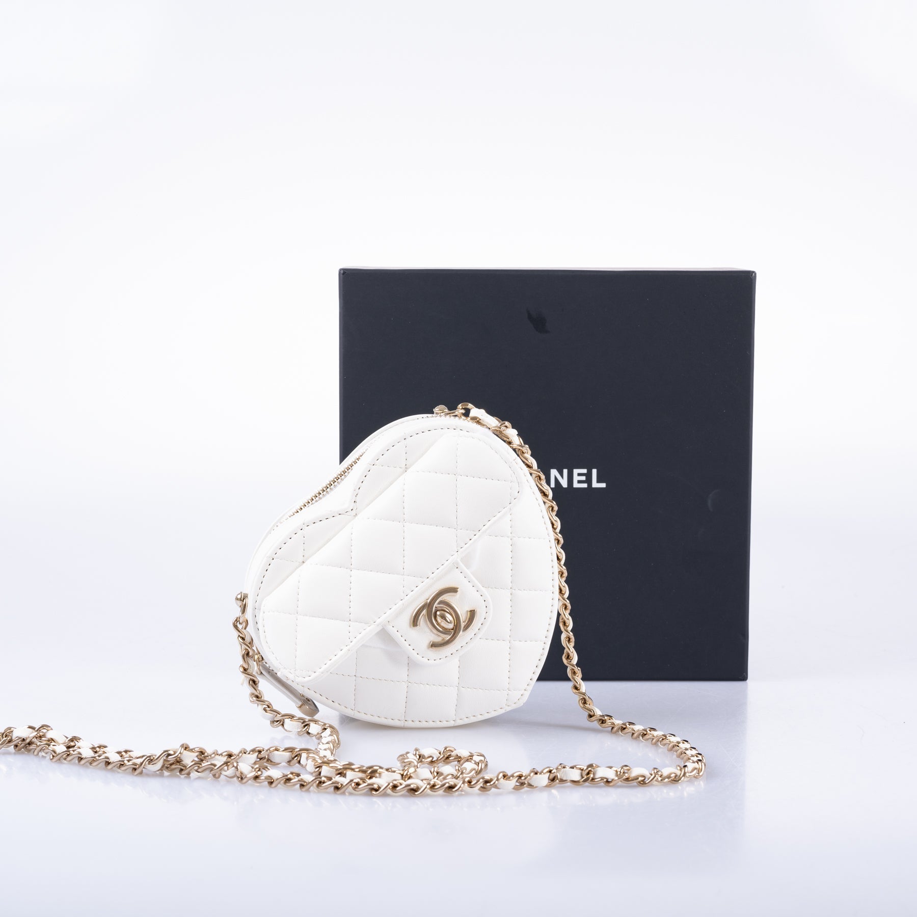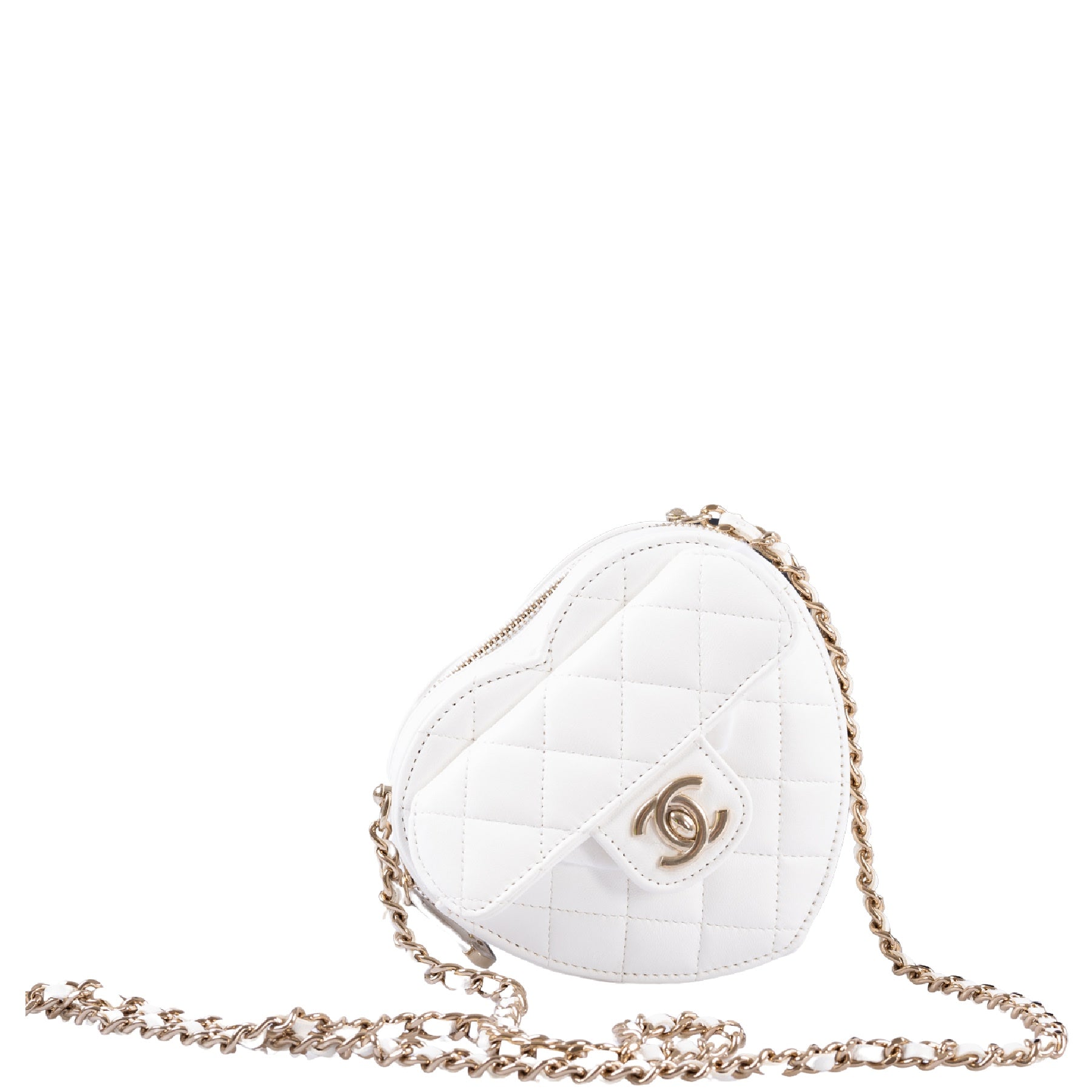 Chanel CC In Love Clutch with Chain White Quilted Lambskin Gold Hardware, 2022