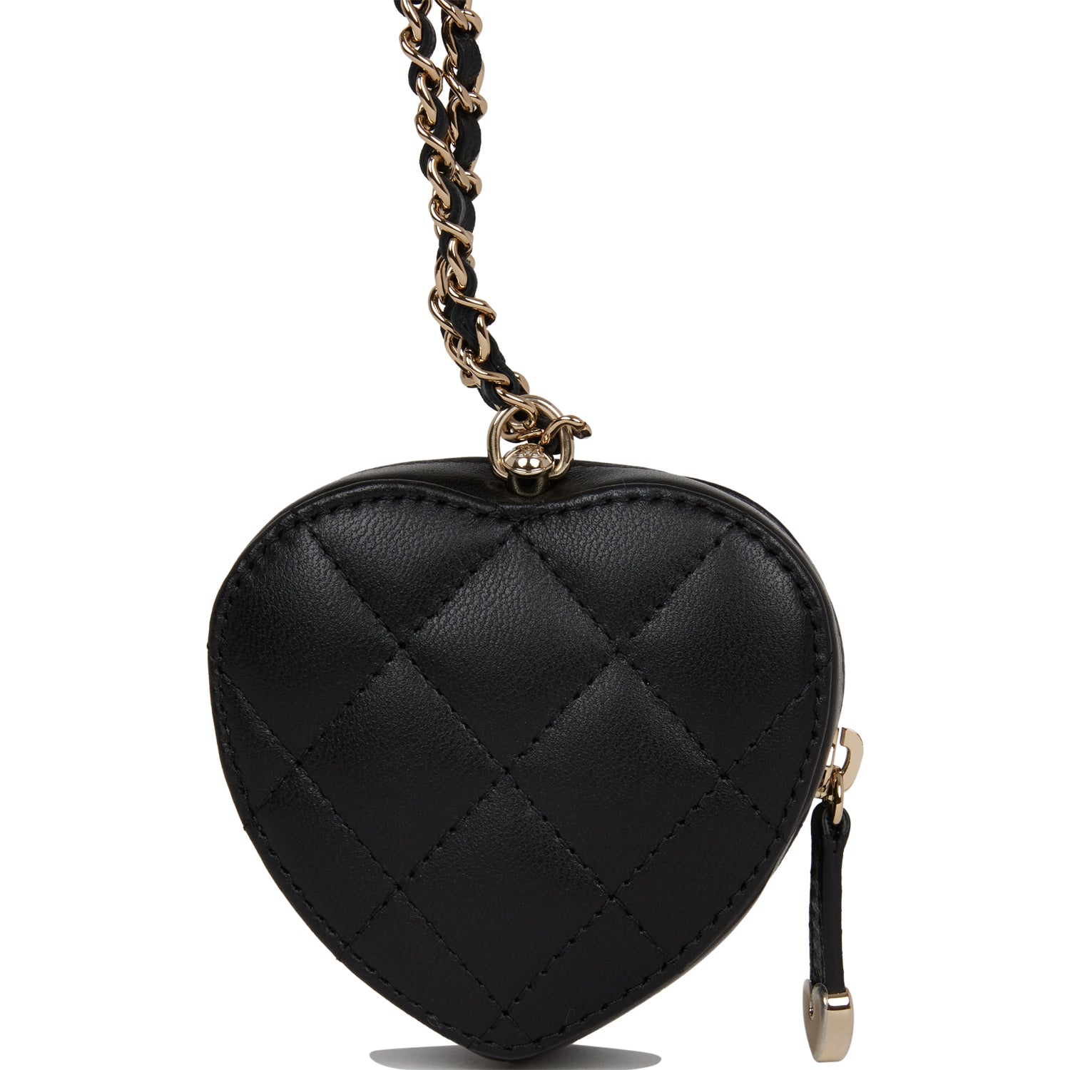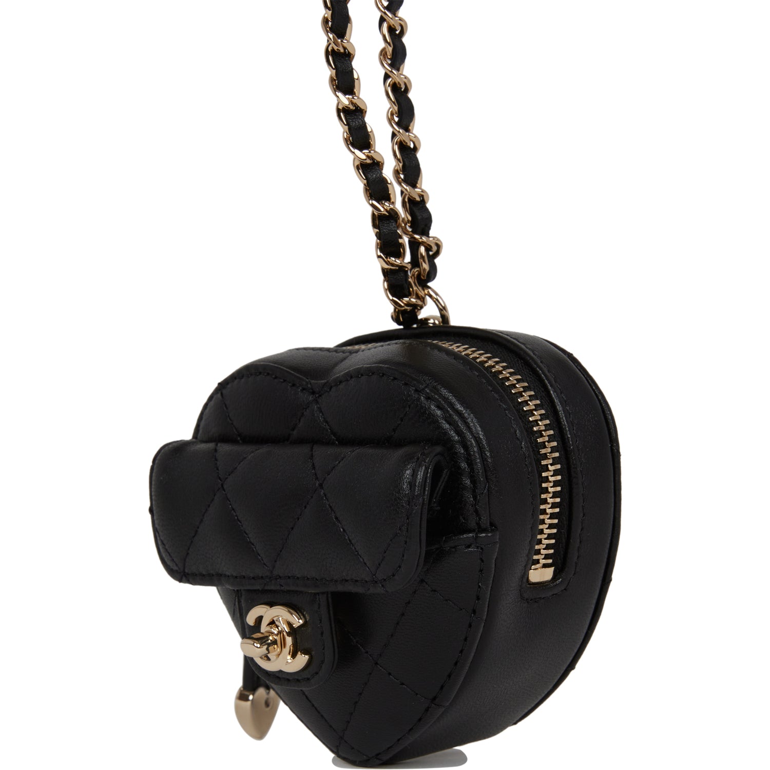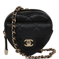 Chanel CC In Love Heart Necklace Bag Black Lambskin Light Gold Hardware