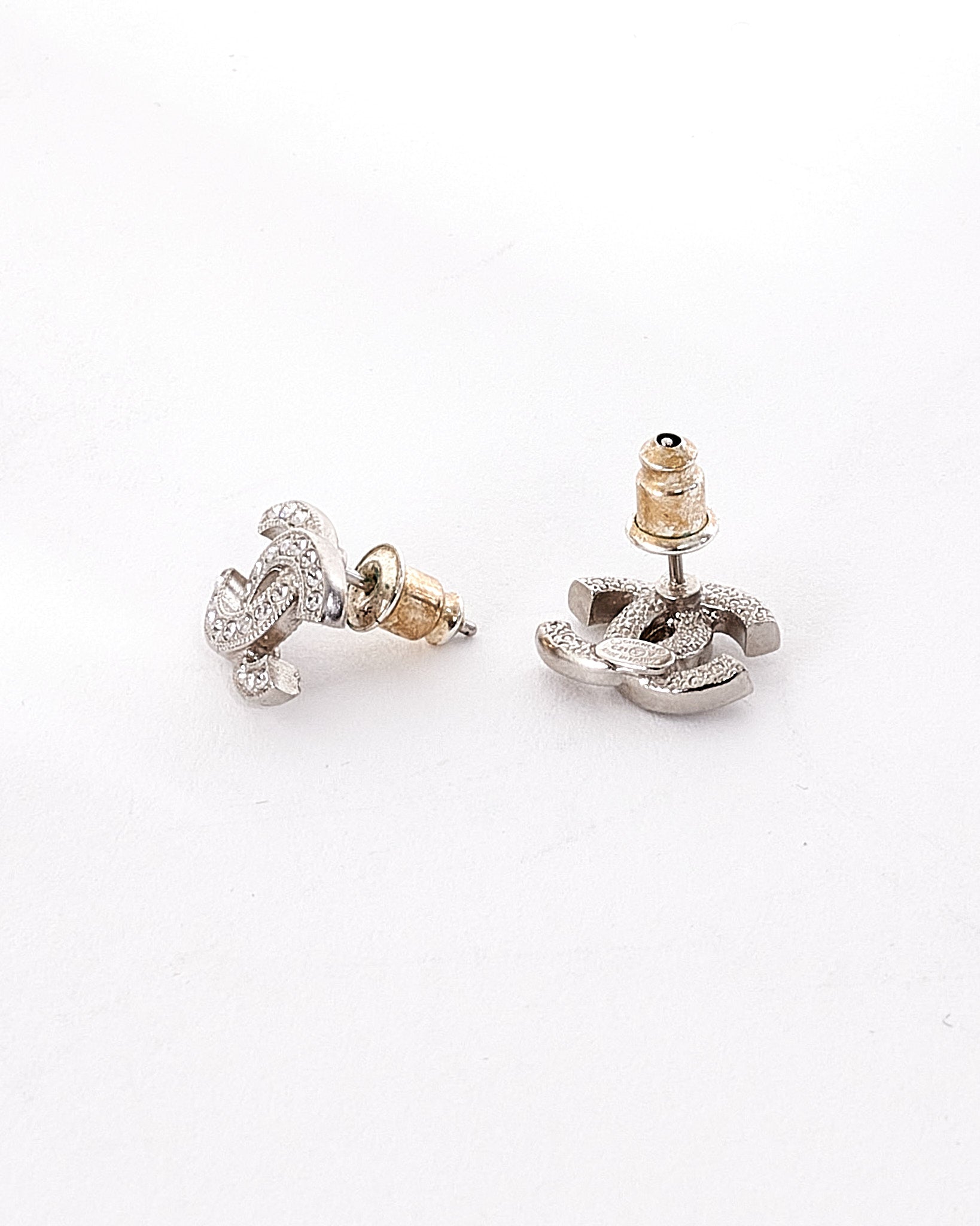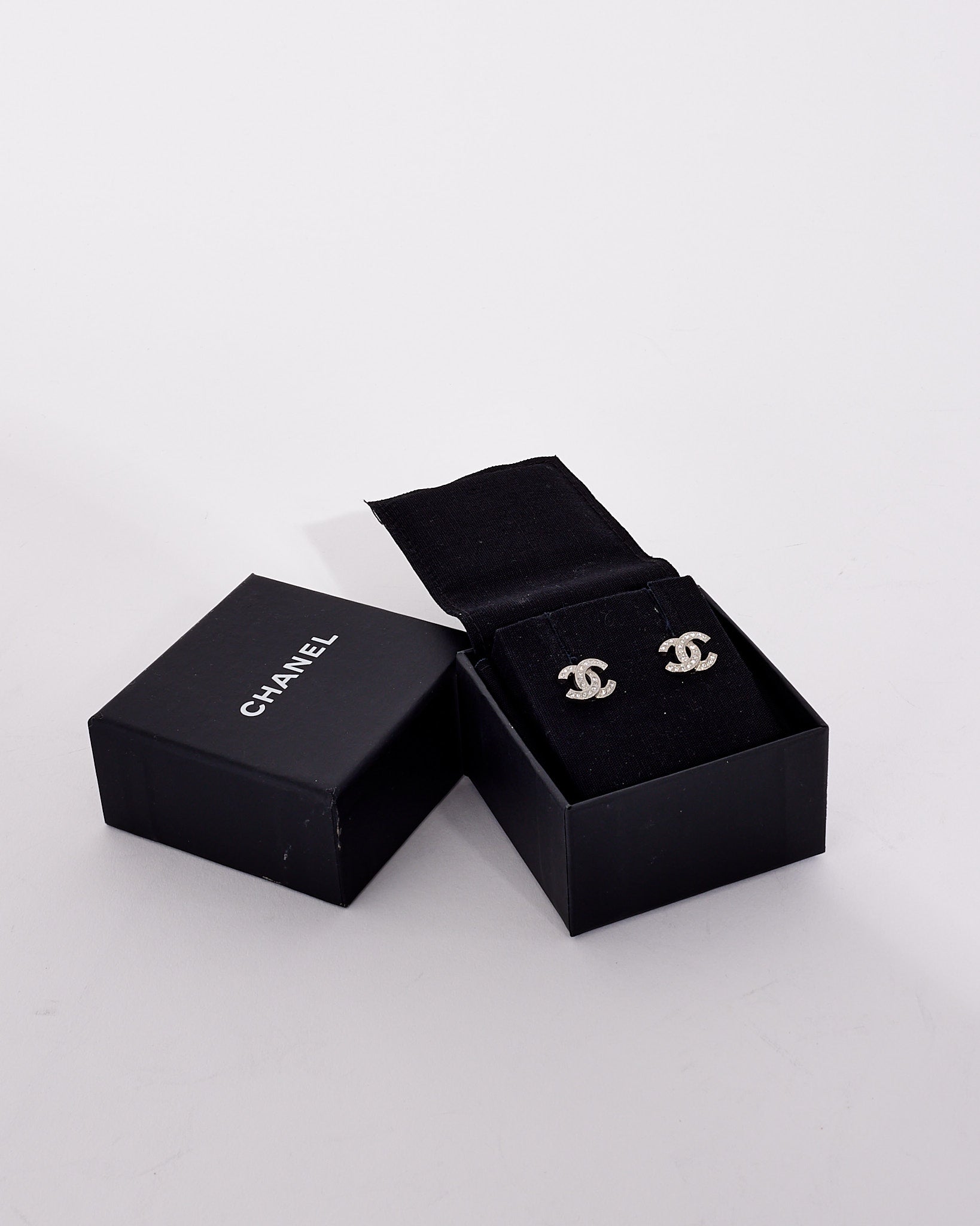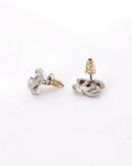 Chanel Silver CC Logo Interlocking Crystal Earrings