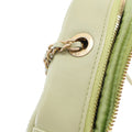 This crossbody Bag features a lambskin leather body, a leather-woven chain shoulder strap, a top zip closure, and an interior slip pocket. Comes with ity card, box and dust Bag.