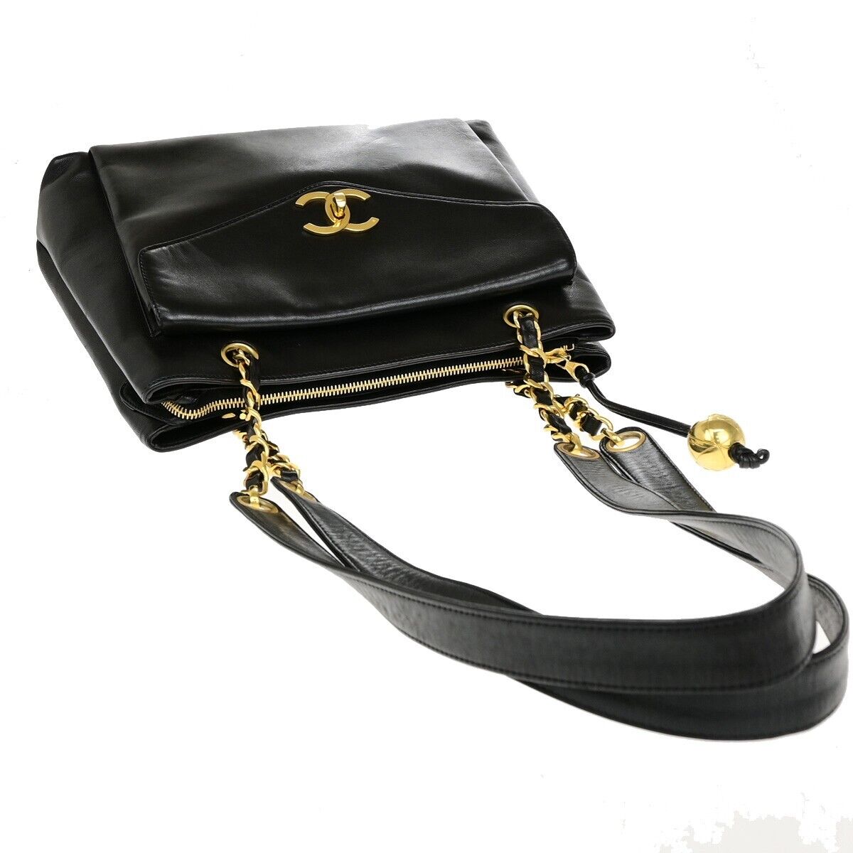 Elevate your style with the iconic Chanel CC Logo Chain Shoulder Tote Bag. Crafted in black leather with glamorous gold-tone hardware, this vintage piece exudes sophistication and luxury. Made in Italy, the bag features a spacious interior and a versatile chain strap for effortless day-to-night wear. A timeless accessory that effortlessly combines fashion and function, perfect for the modern fashionista seeking a touch of classic elegance in their wardrobe.