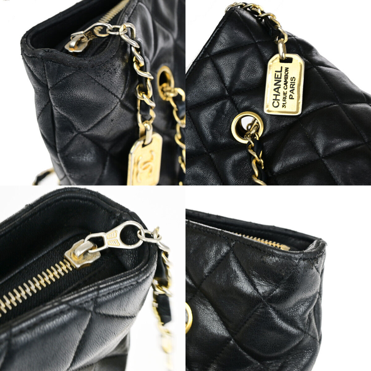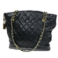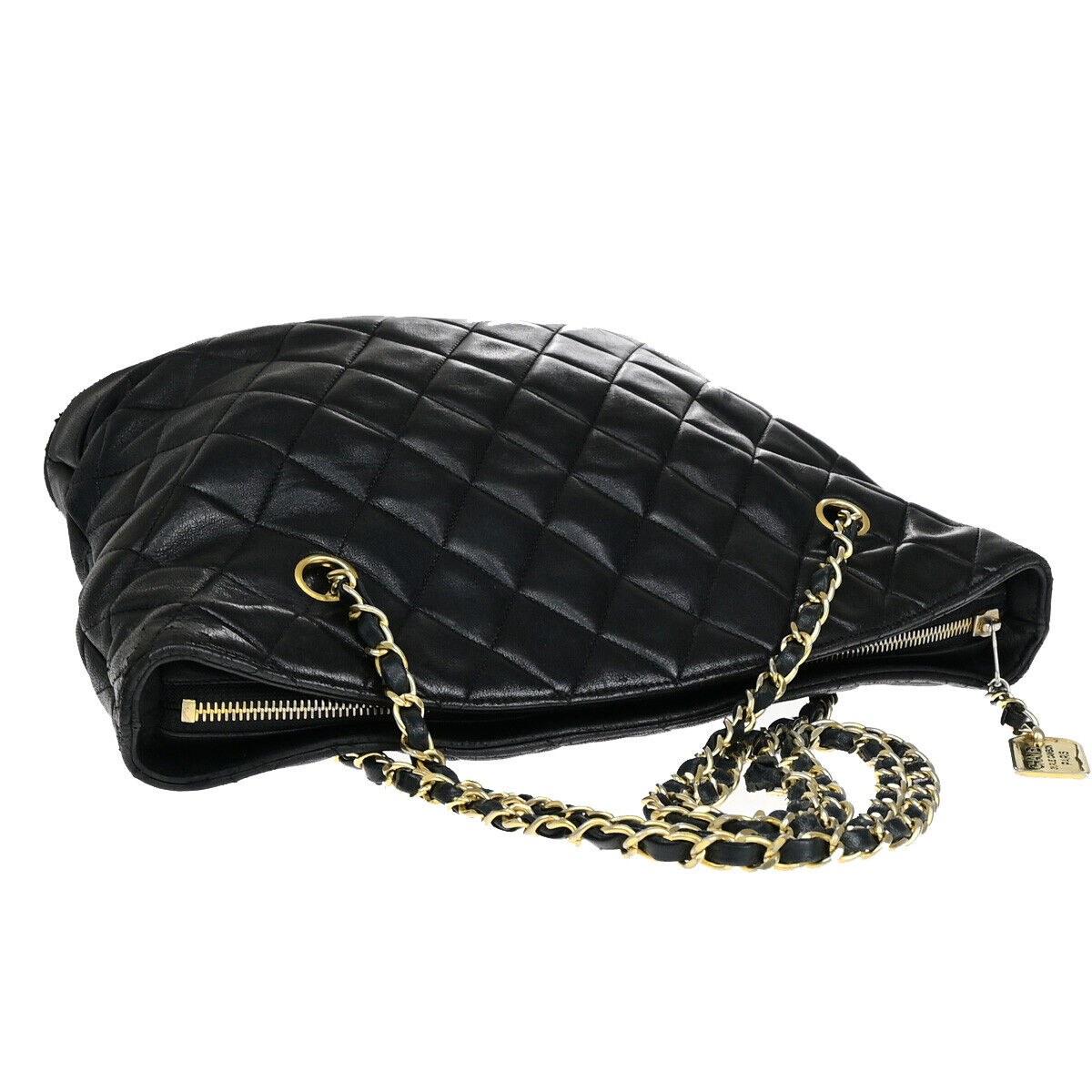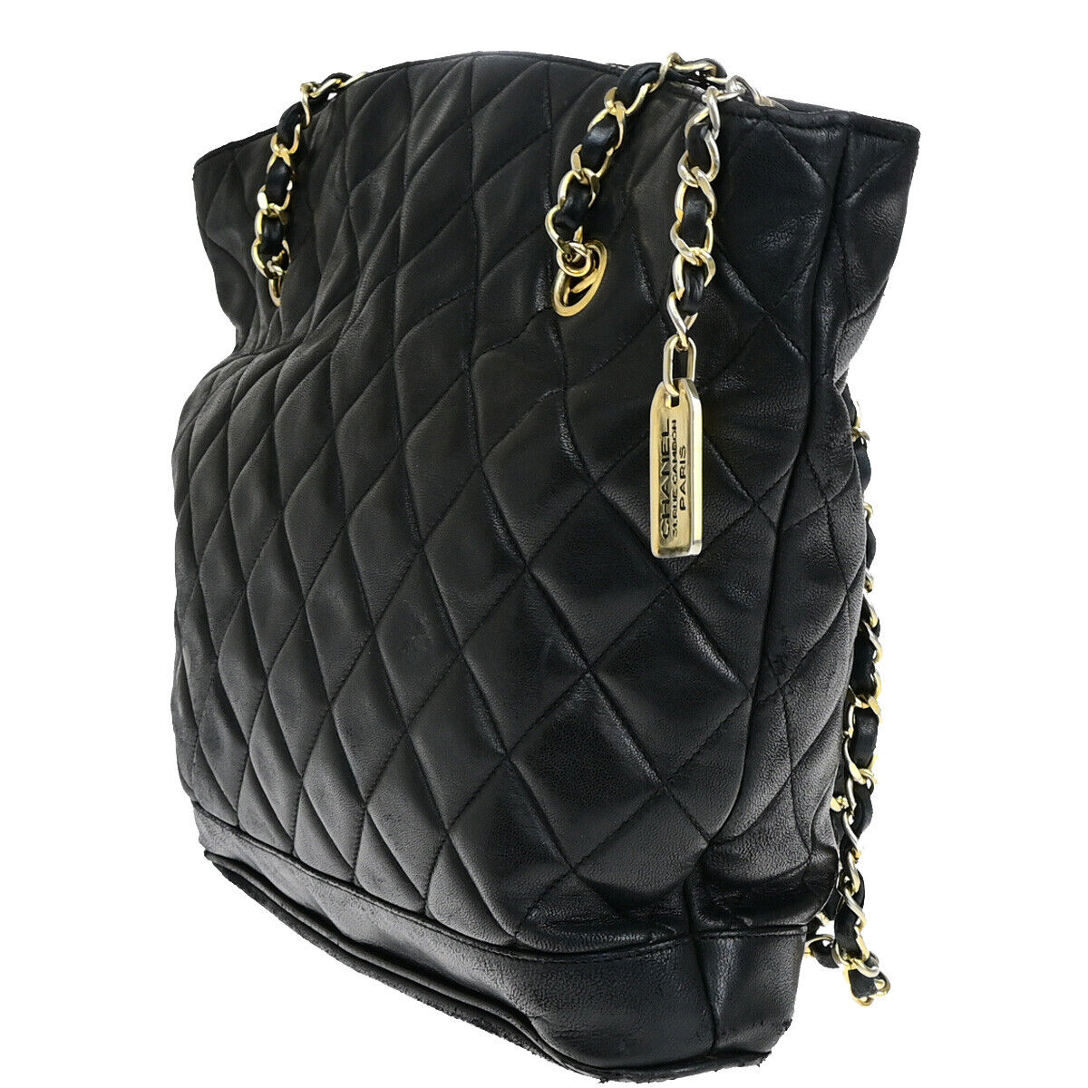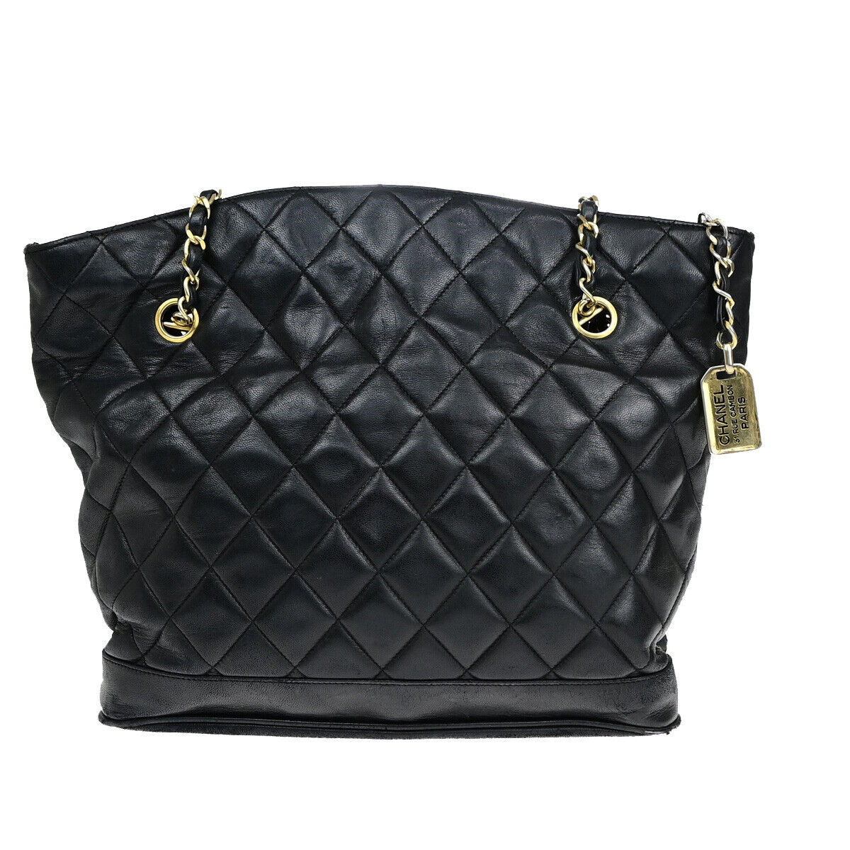 Elevate your style with the timeless elegance of the Chanel CC Logo Matelasse Chain Shoulder Tote Bag in luxurious black leather. This iconic piece features the signature quilted design and is adorned with the classic CC logo in gold hardware, adding a touch of sophistication to any outfit. The versatile chain shoulder strap allows for effortless wear, whether you're heading to a business meeting or a night out on the town.