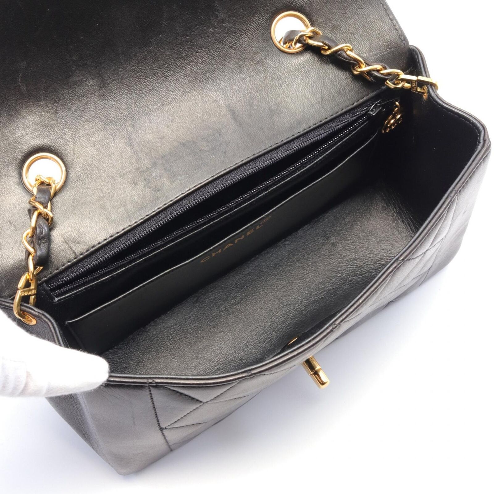 Elevate your style with the iconic Chanel CC Matelasse Diana Flap Shoulder Bag in sleek black leather. This gem exudes sophistication and timeless elegance, perfect for the modern woman with a taste for luxury. The intricate quilting and the classic CC logo make a bold statement, while the adjustable shoulder strap adds versatility to your look. Own a piece of fashion history with this coveted Coco Chanel accessory.