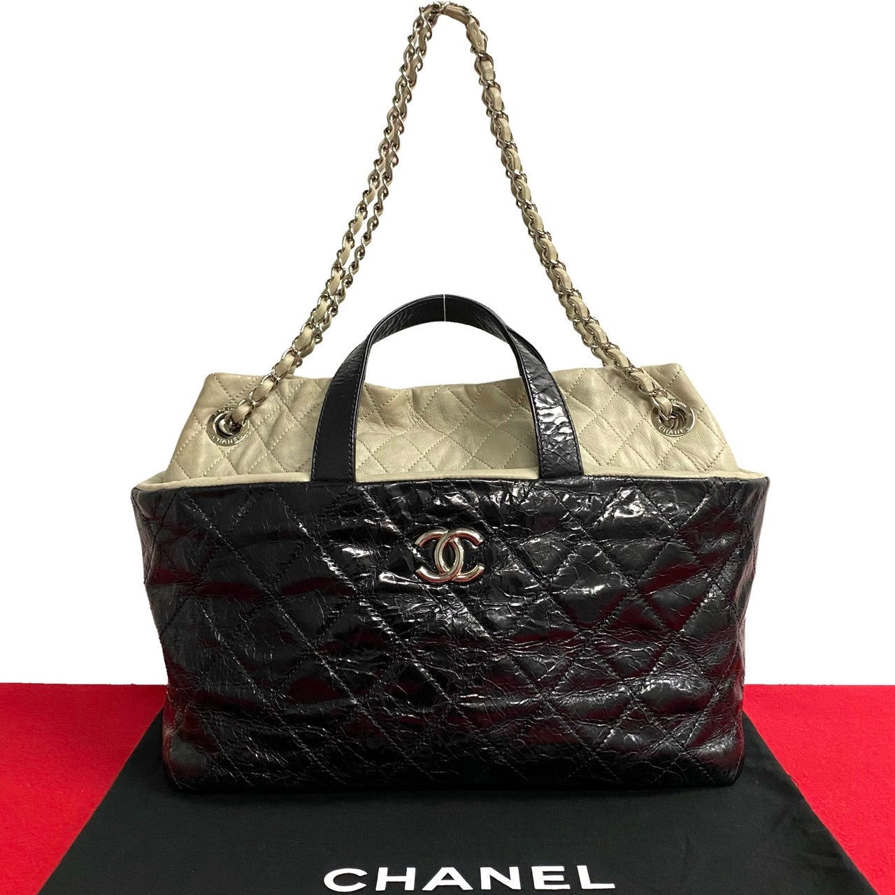 Chanel CC Patent Portobello Large Tote Bag Leather Crossbody Bag in Good condition