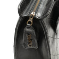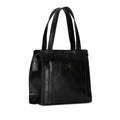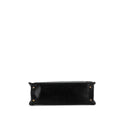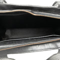 This Tote Bag features a calfskin leather body, flat leather straps, a top zip closure, an exterior front pocket with turn lock closure, and interior zip and slip pockets.
