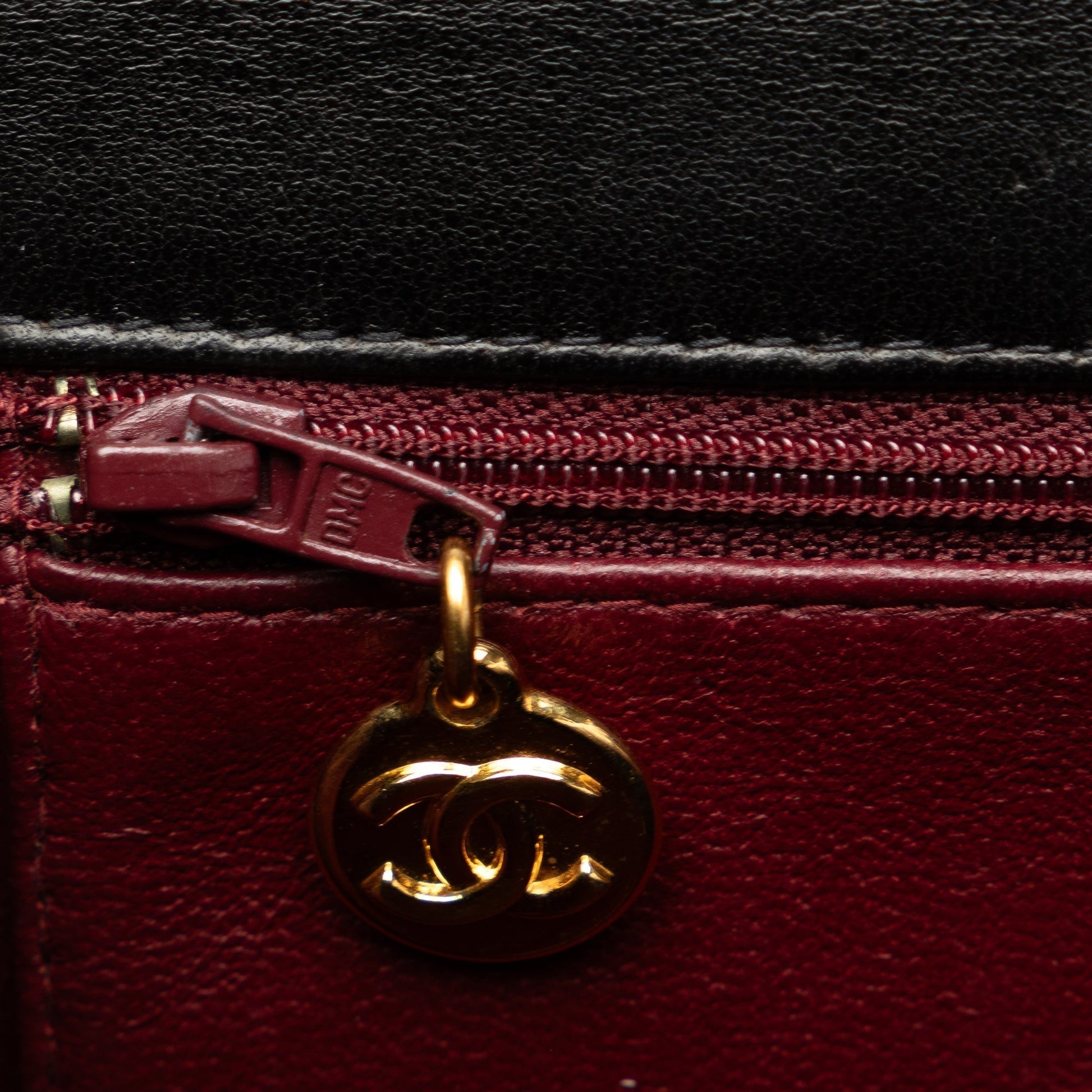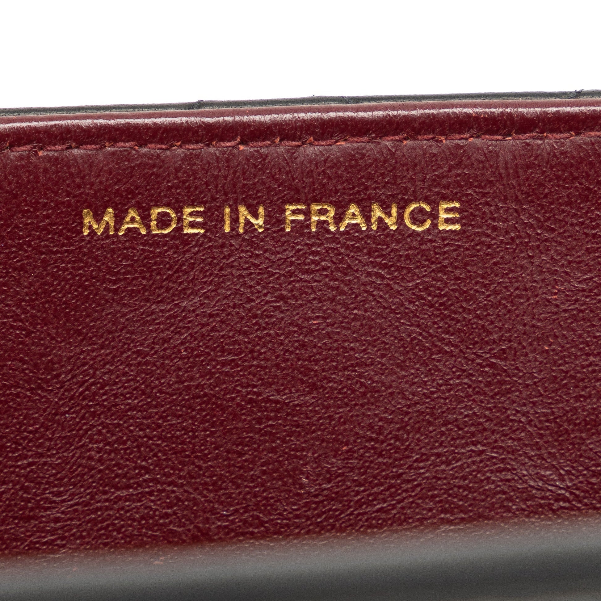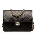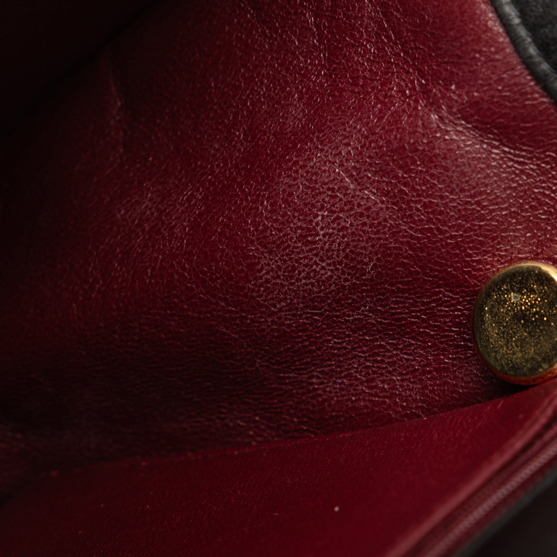 This shoulder Bag features a quilted lambskin leather body, a leather woven chain strap, a front flap with magnetic snap closure, and an interior zip pocket. Comes with box and dust Bag.