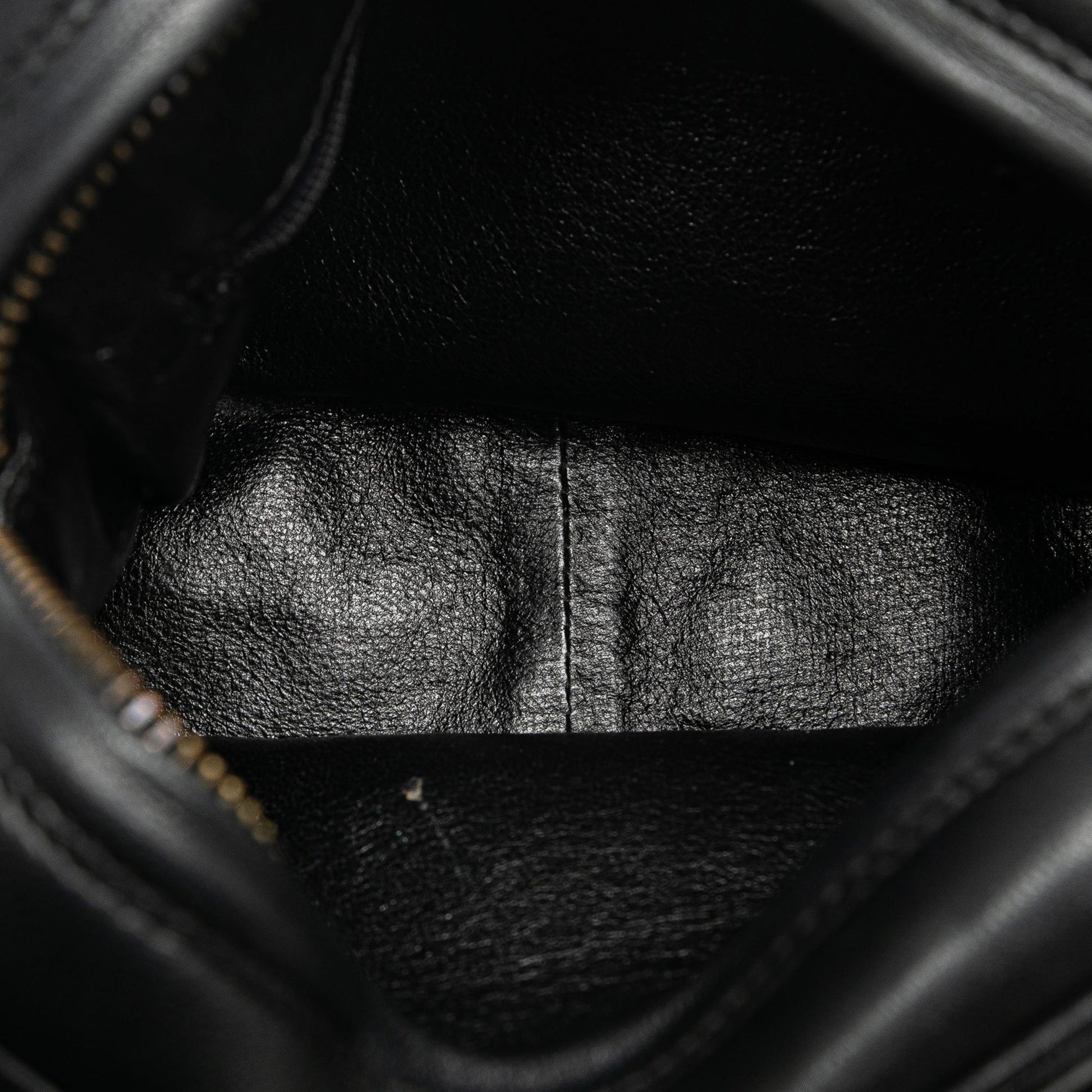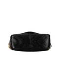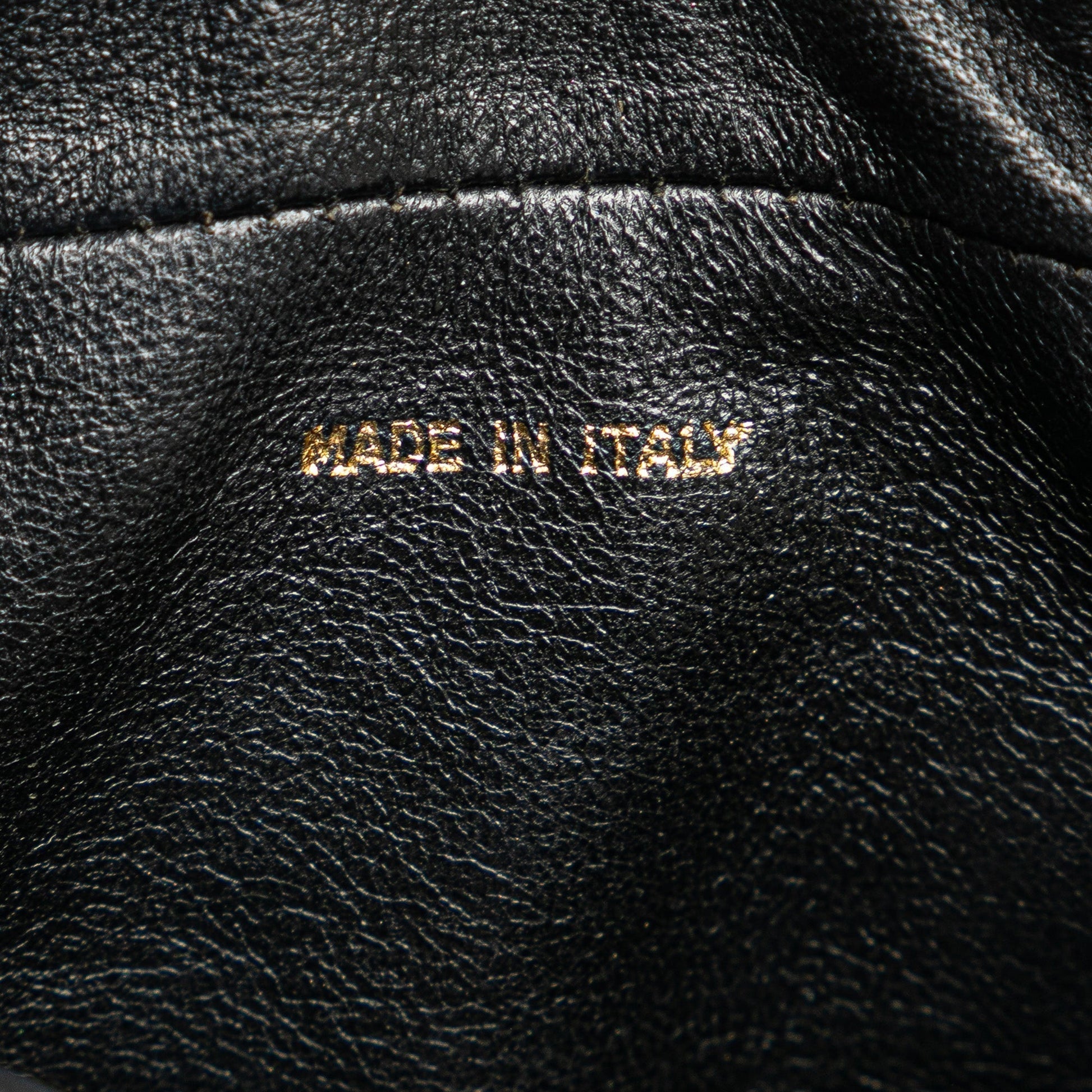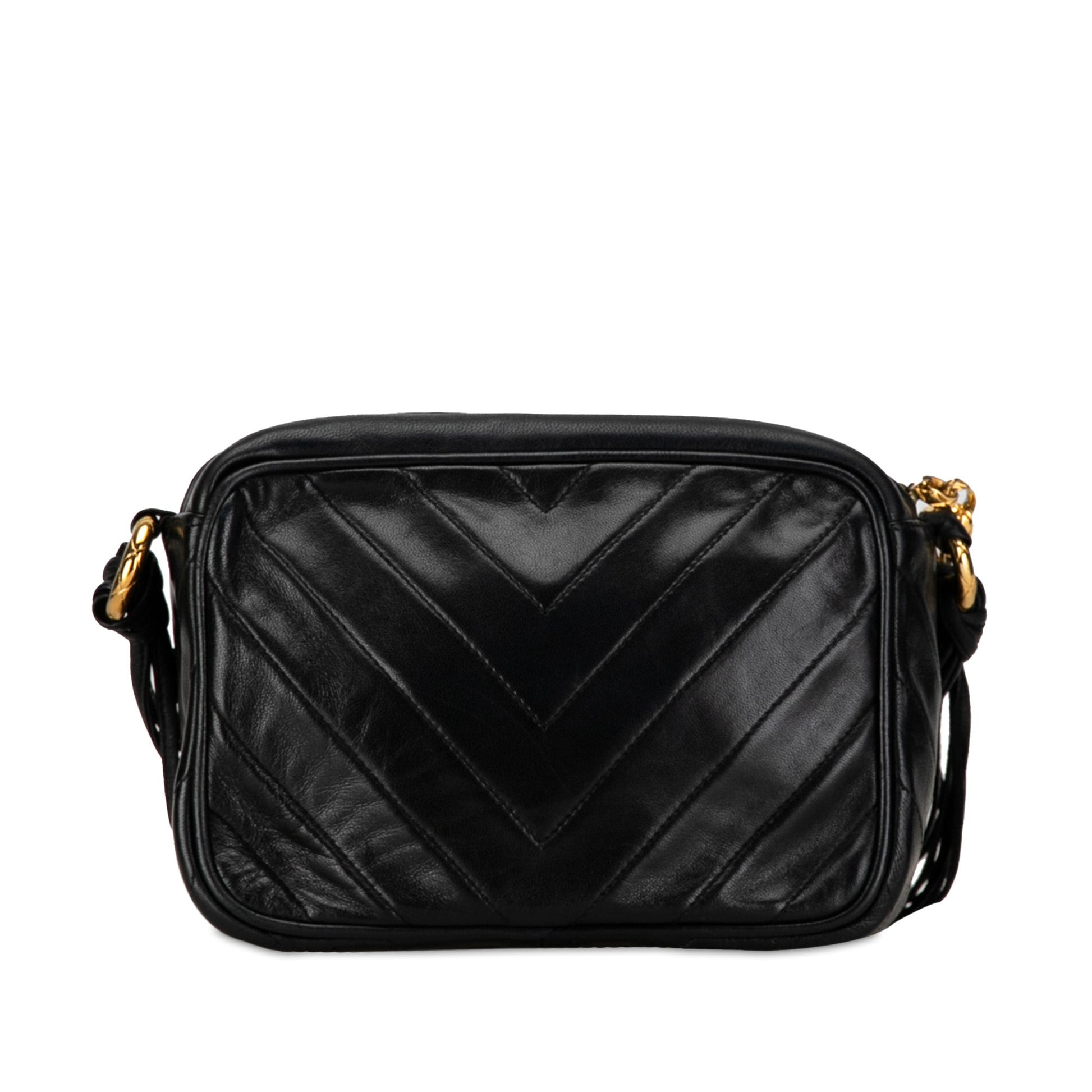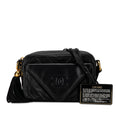 This camera Bag features a quilted lambskin leather body, flat leather straps, a tassel detail, a top zip closure, an exterior front flap pocket, and an interior zip pocket. Comes with ity card.