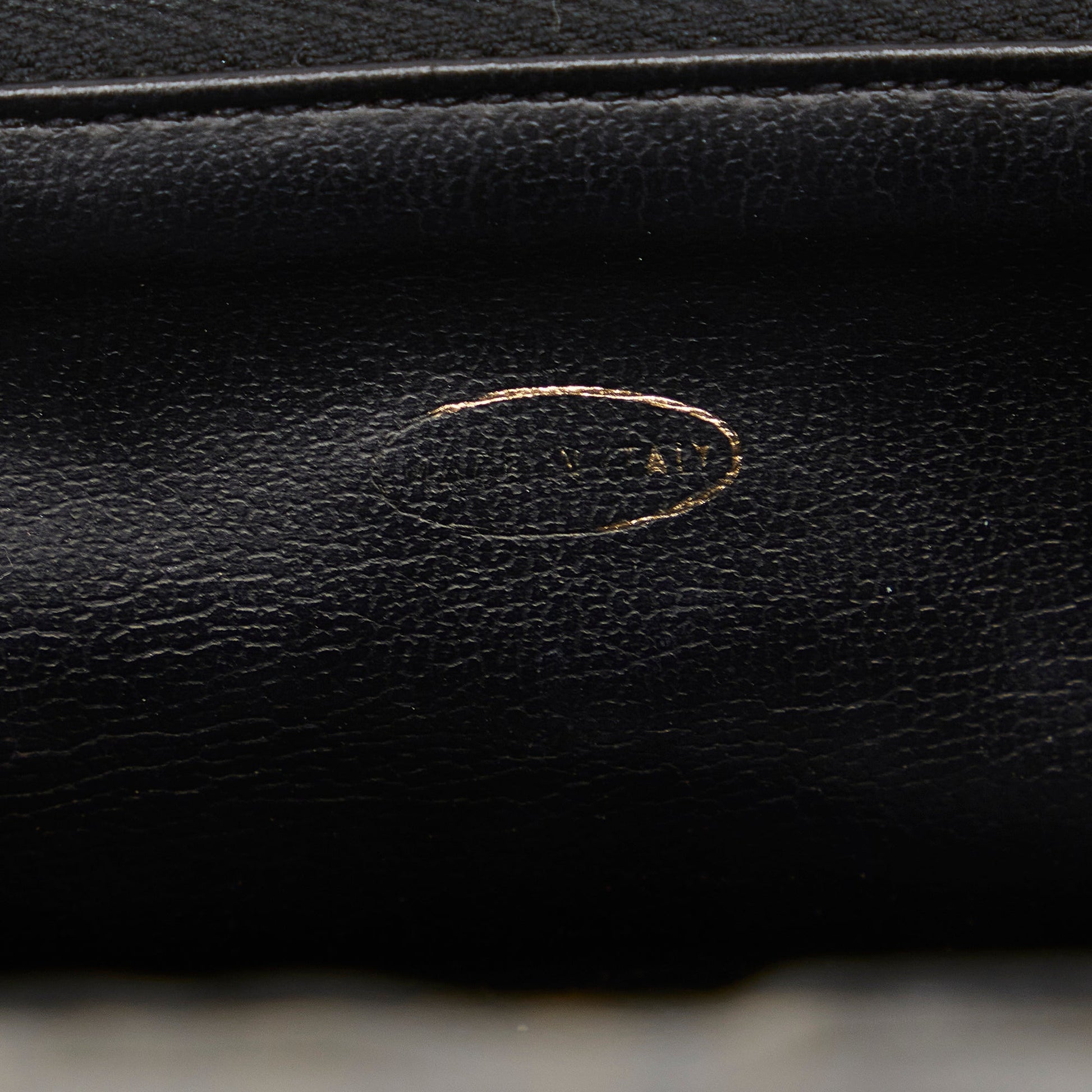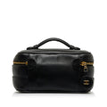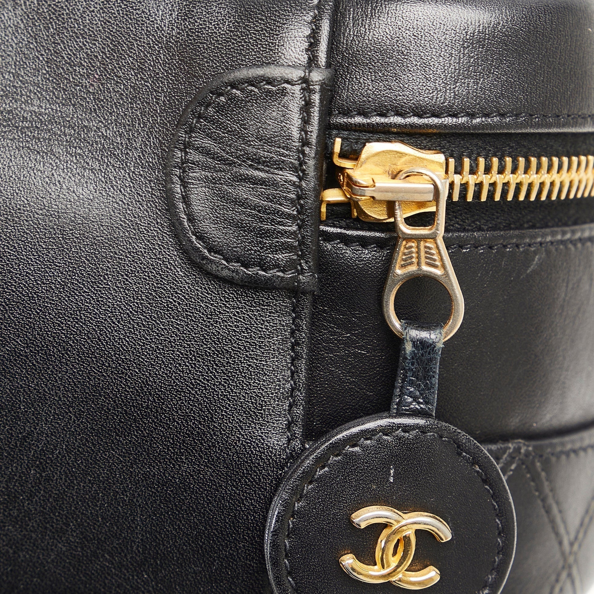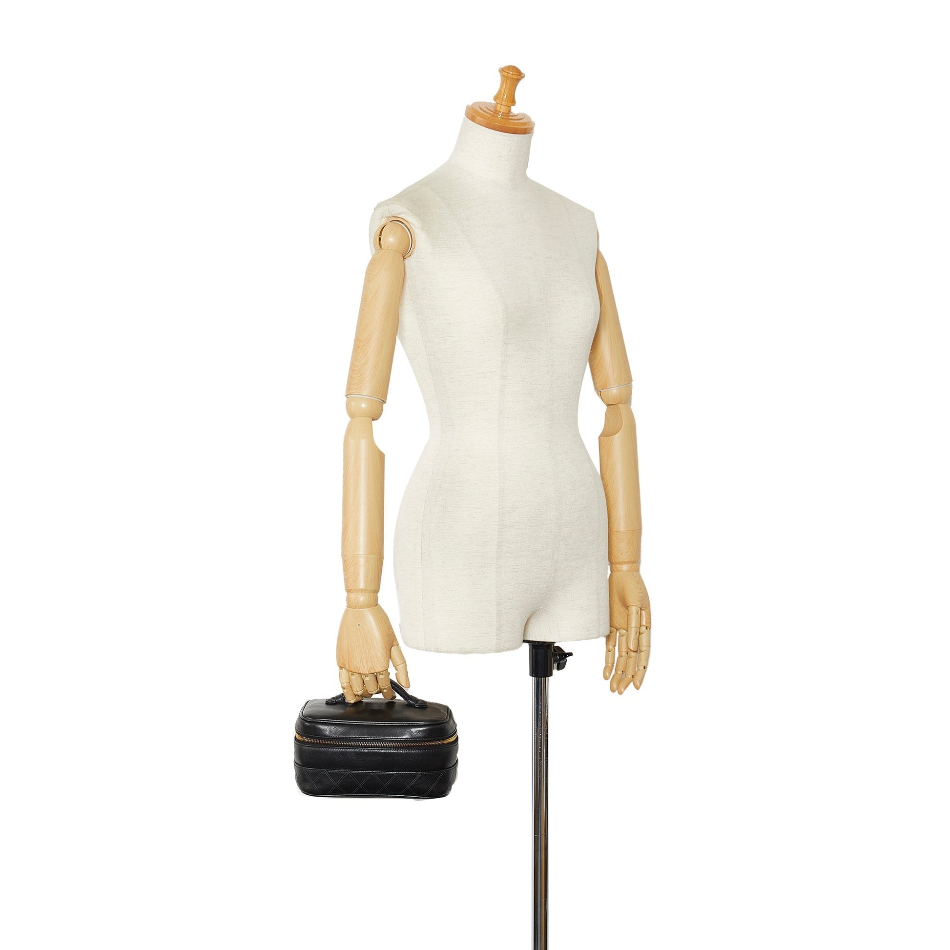 This vanity Bag features a lambskin leather body, a quilted bottom, a top handle, a top zip closure and an interior slip pocket.