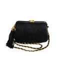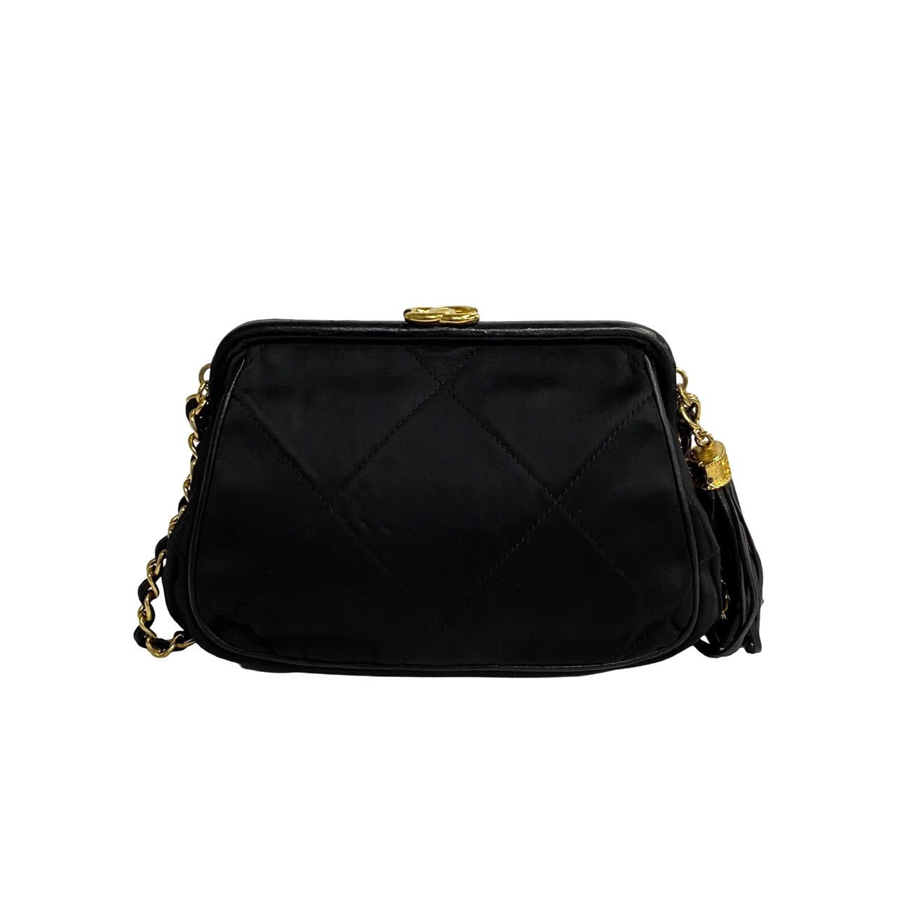 Chanel CC Satin Quilted Tassel Frame Crossbody Canvas Crossbody Bag in Good condition