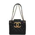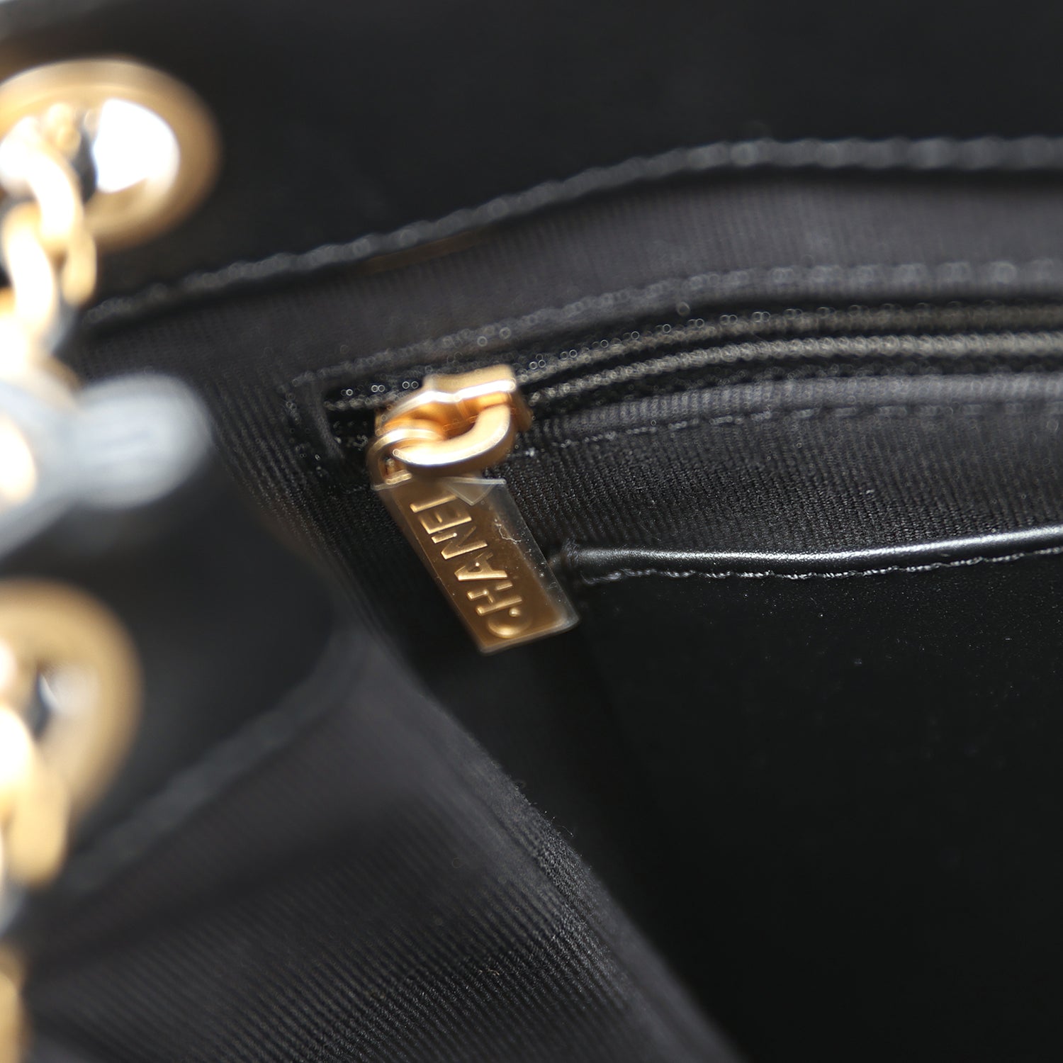 Chanel CC Small Shoulder Bag Black Lambskin Antique Gold Hardware