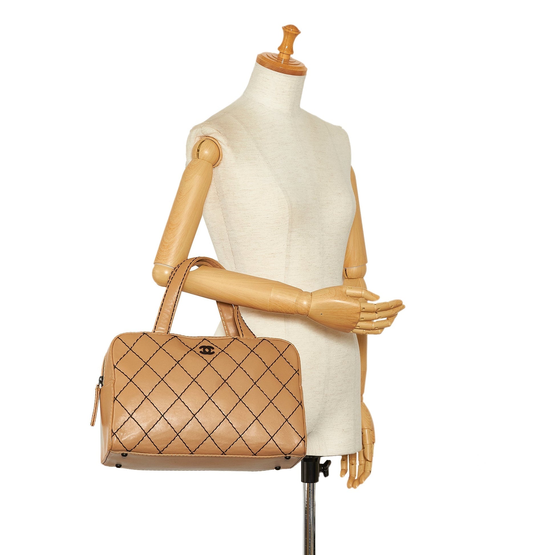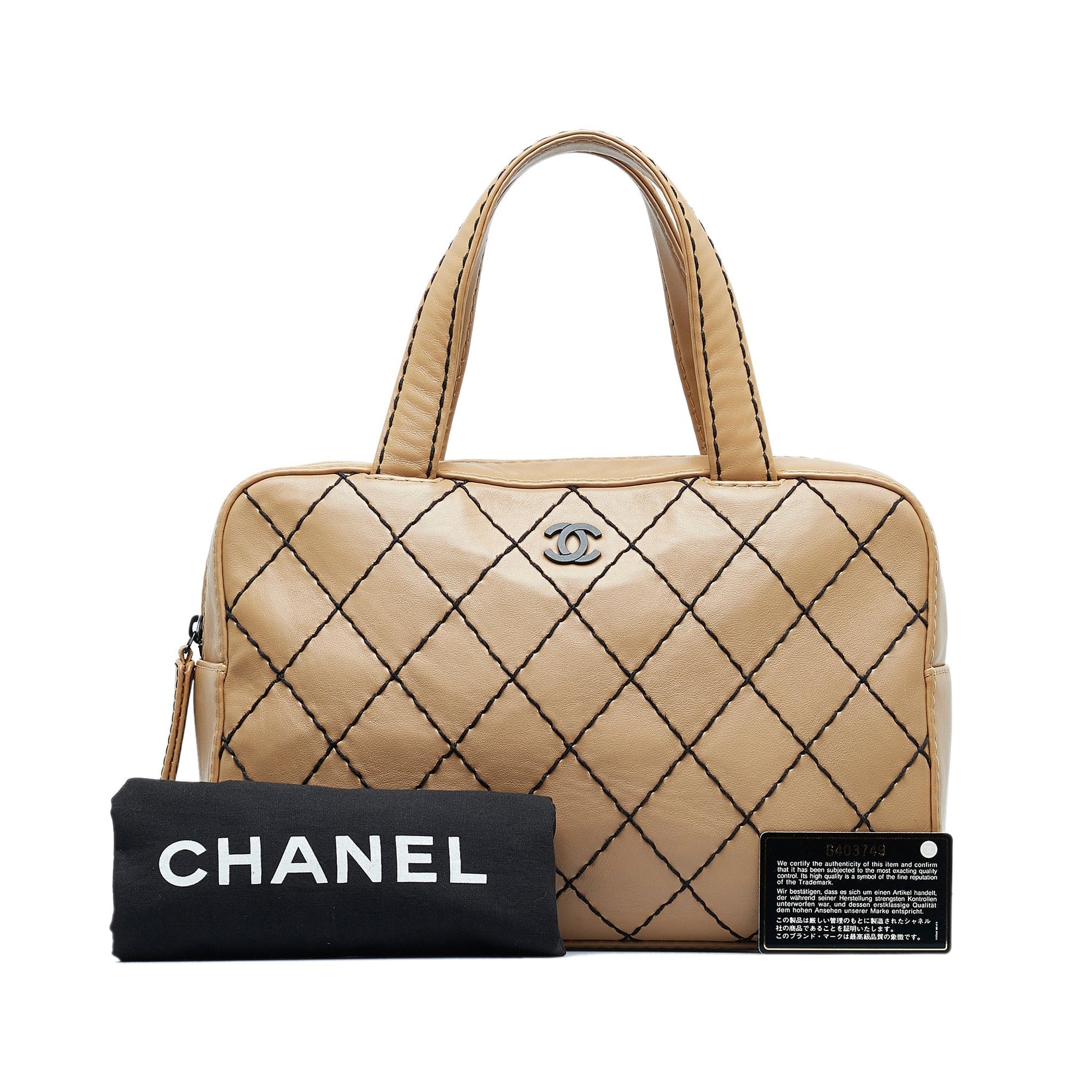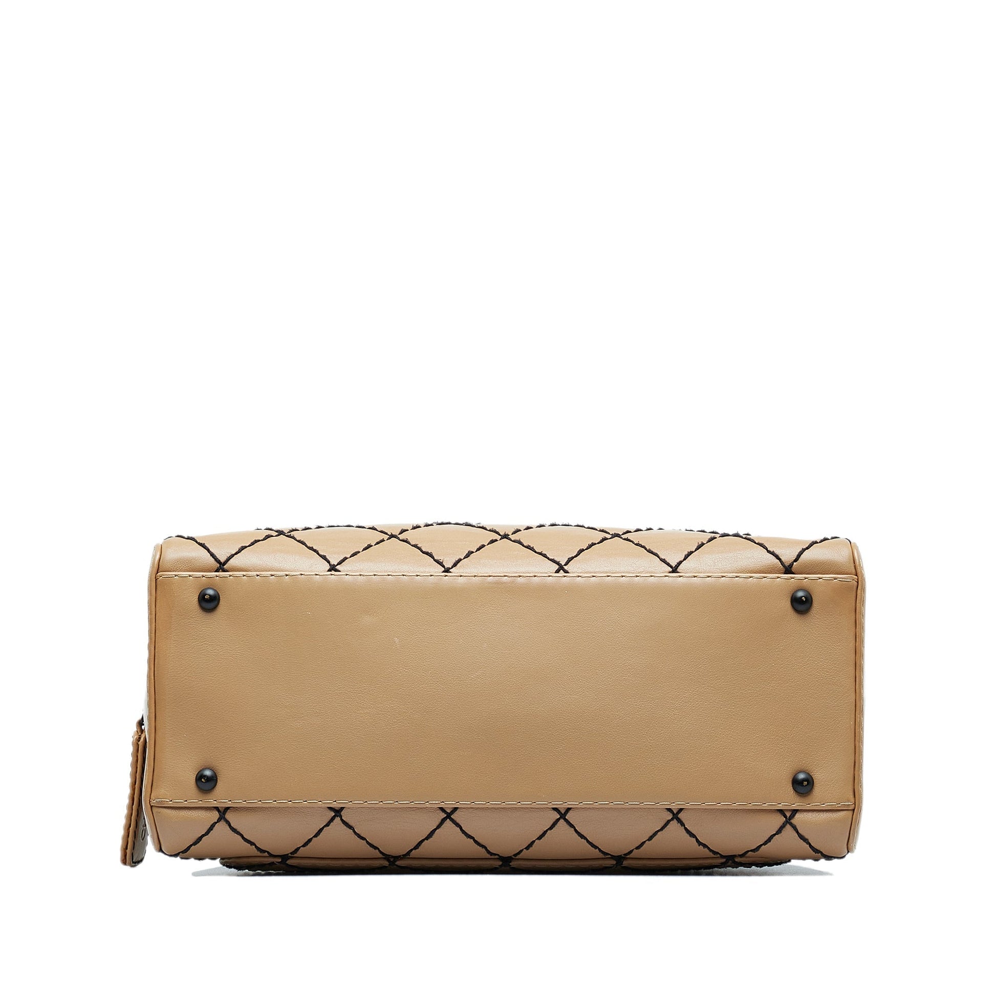This handBag features a lambskin leather body, flat leather handles, top zip closure, and interior zip and slip pocket. Comes with and dust Bag.