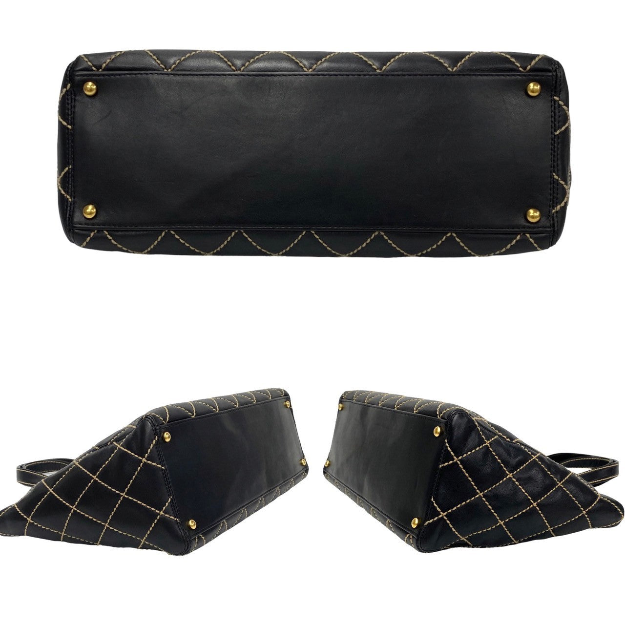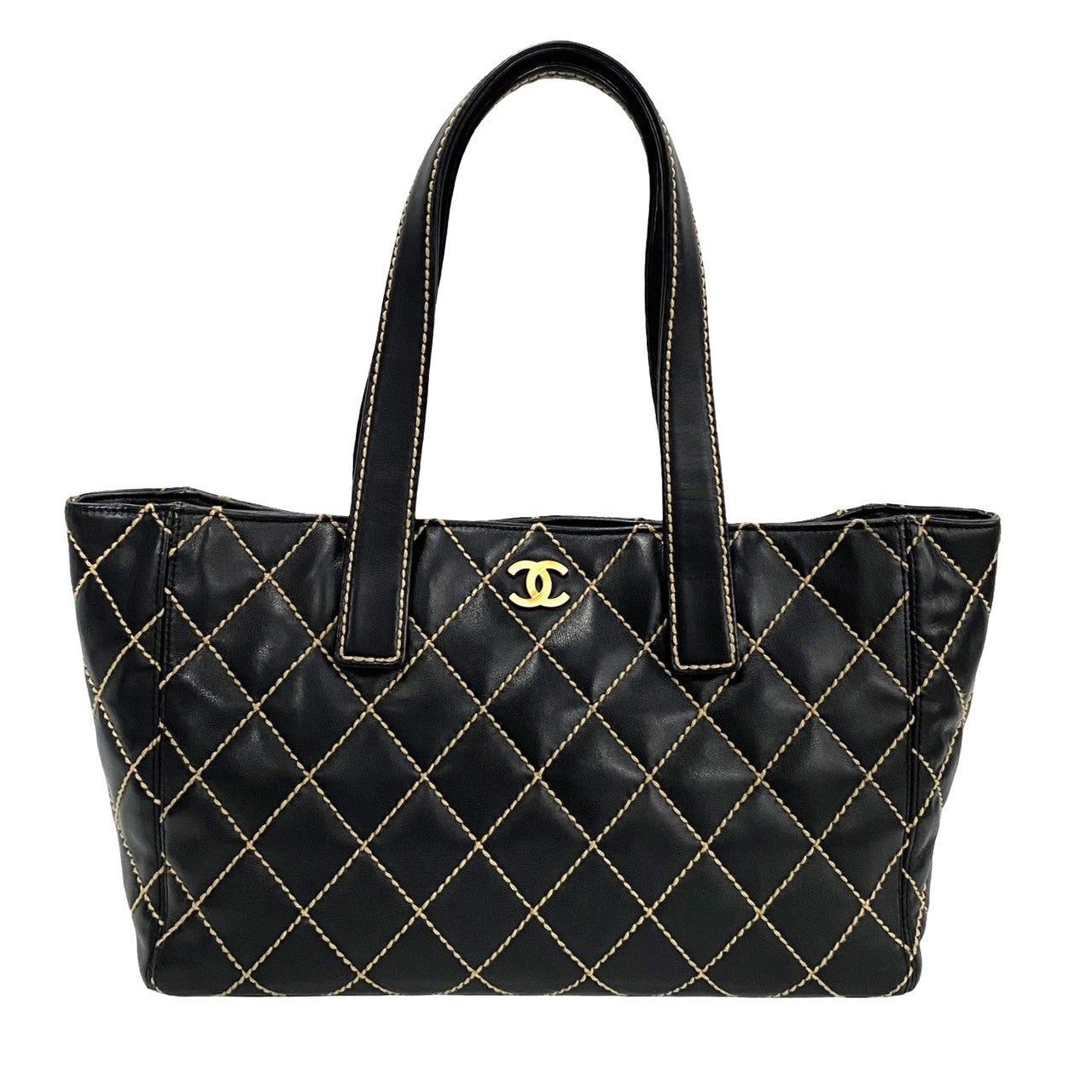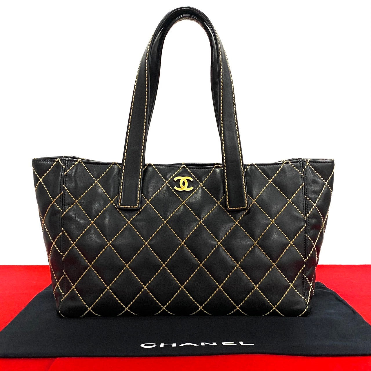 Chanel CC Wild Stitch Tote Bag Leather Handbag in Good condition