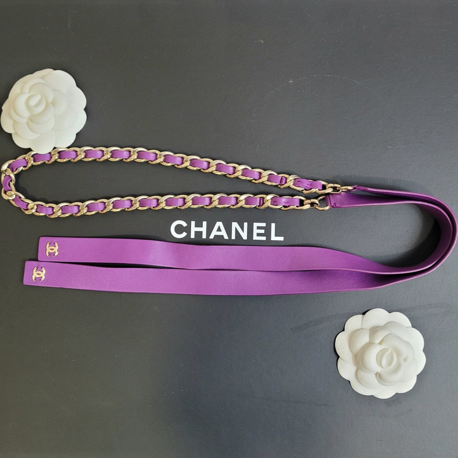 Élégante et originale ceinture en cuir d'agneau et chaîne tissée dorée.