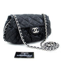 CHANEL Chain Around Shoulder Bag Crossbody Black Calfskin Leather k16