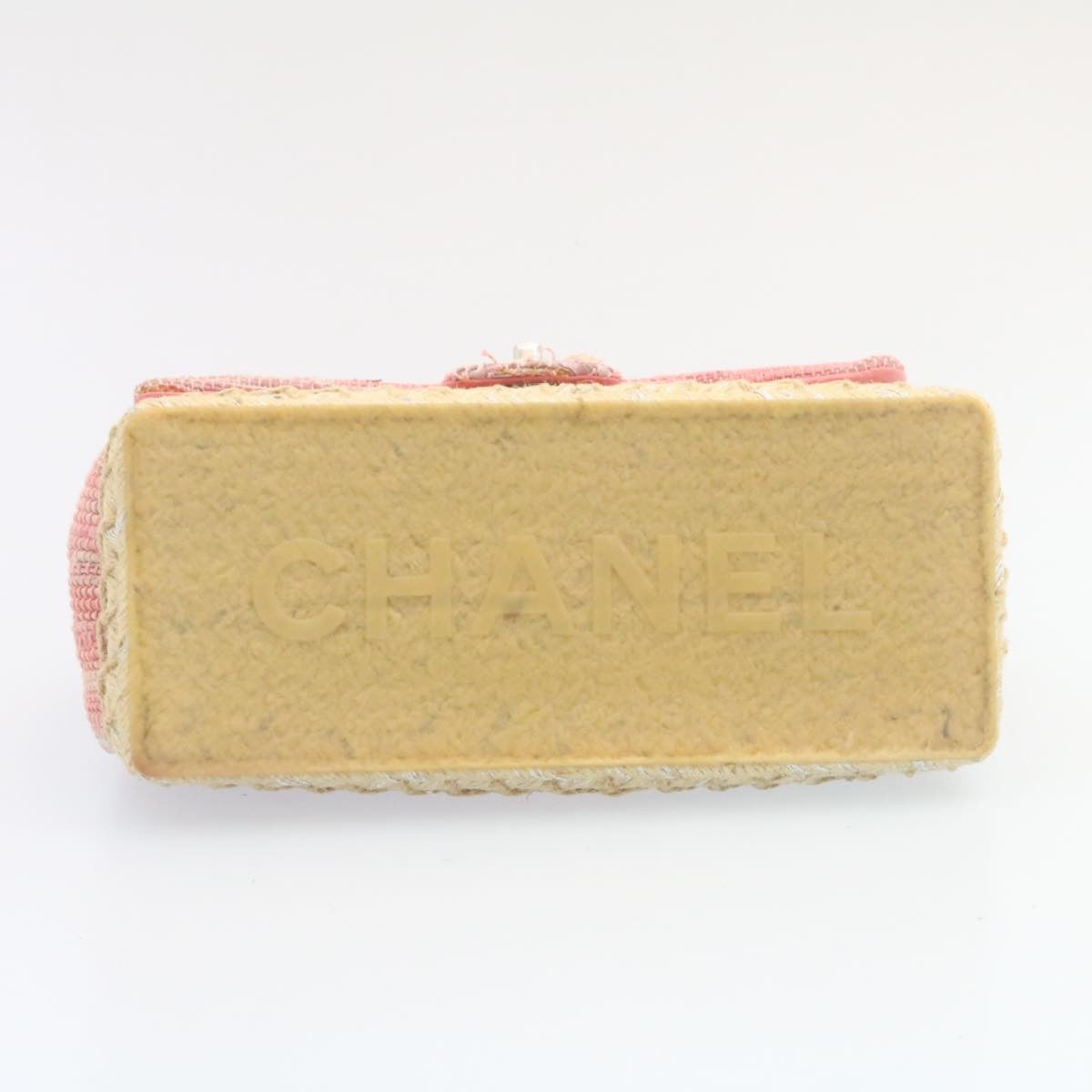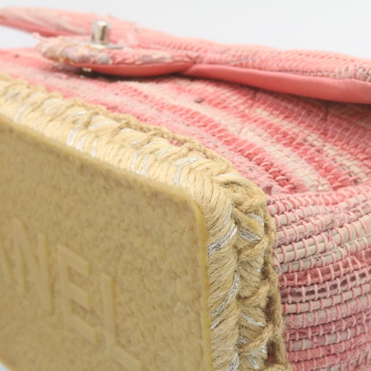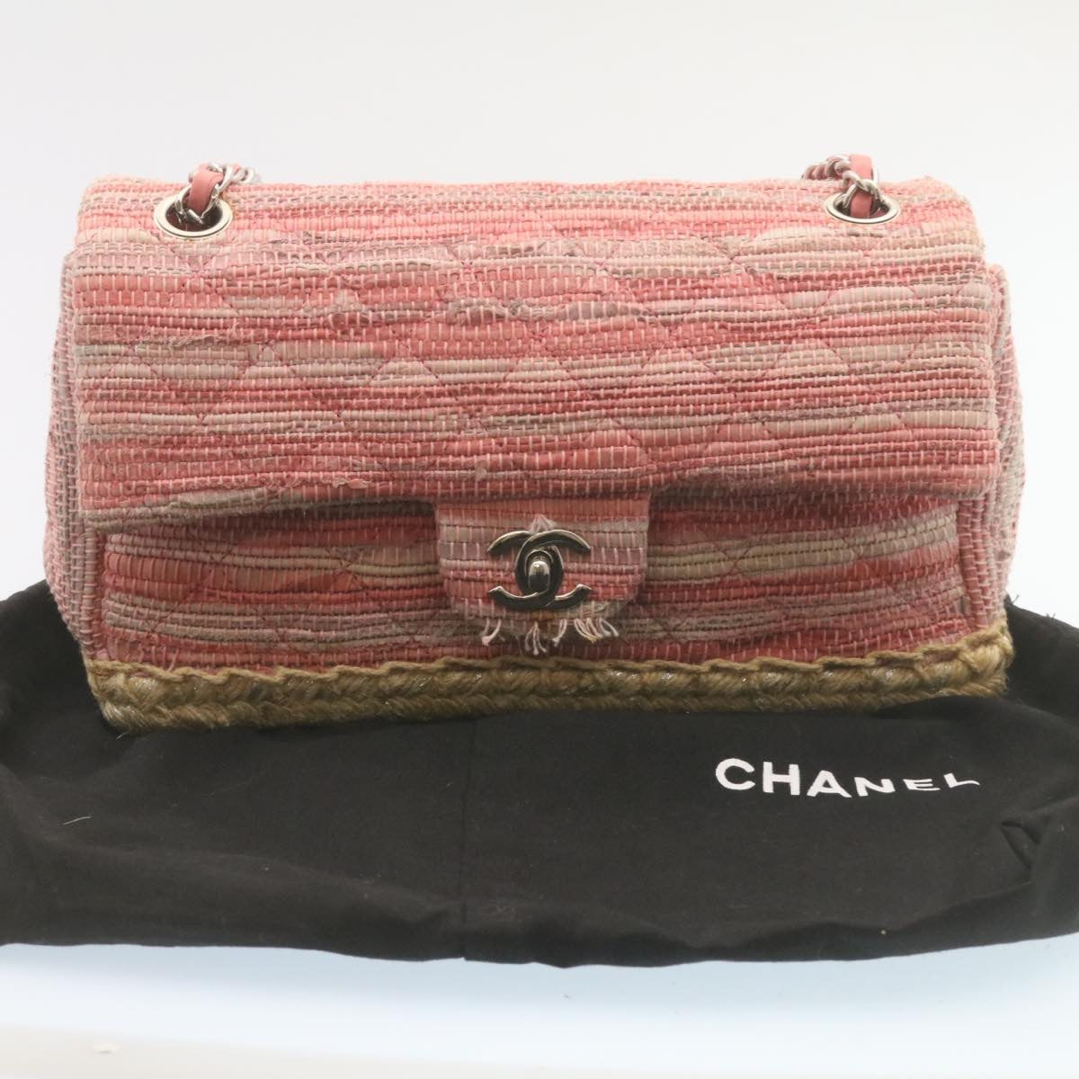 Chanel Chain Flap Shoulder Bag Turn Lock Canvas Pink CC Auth bs334A