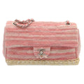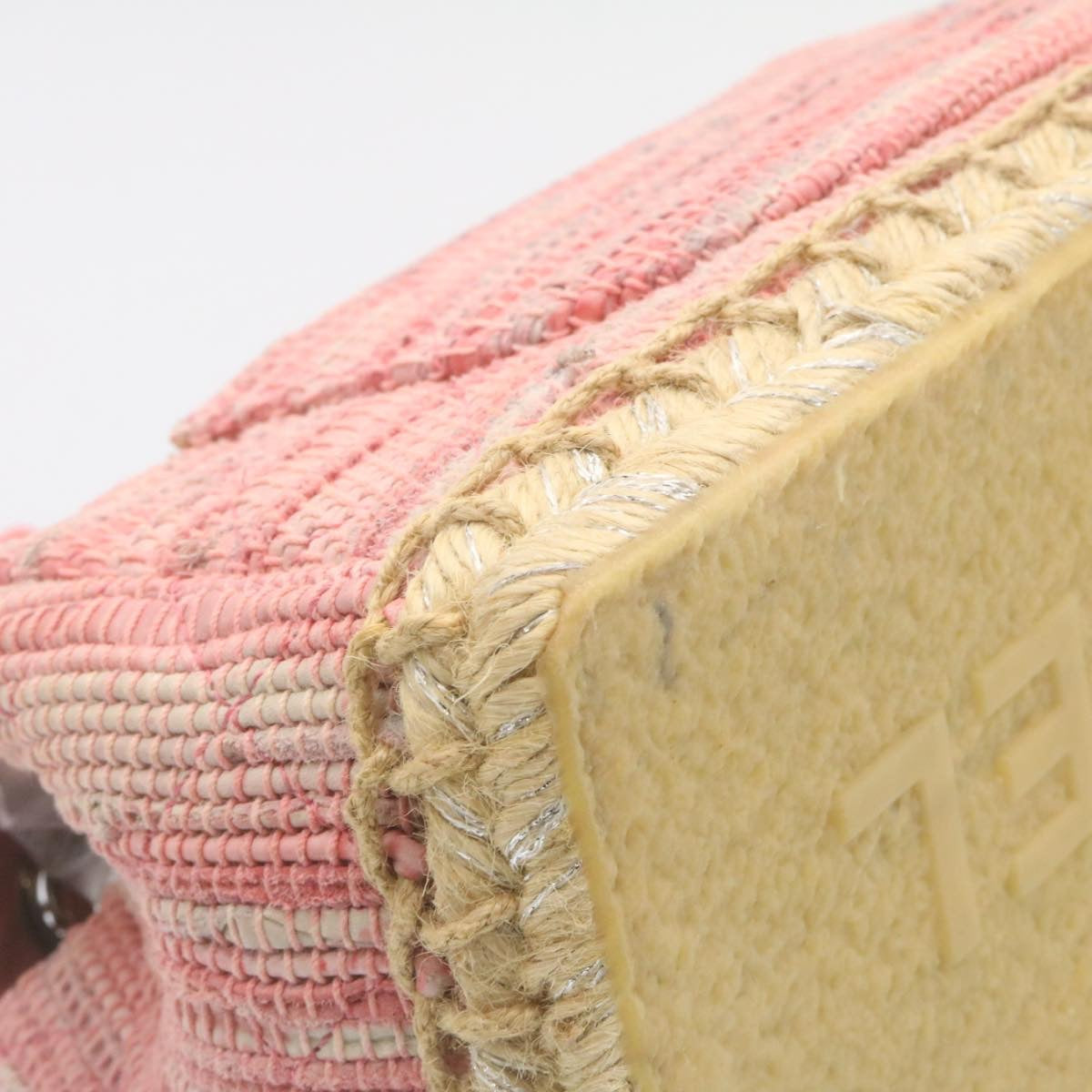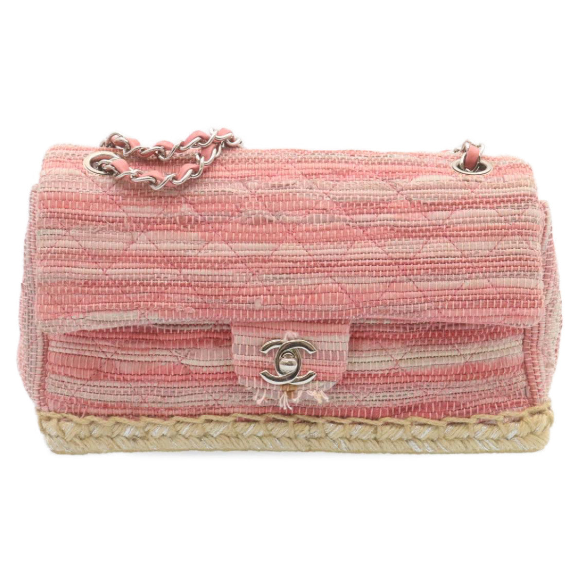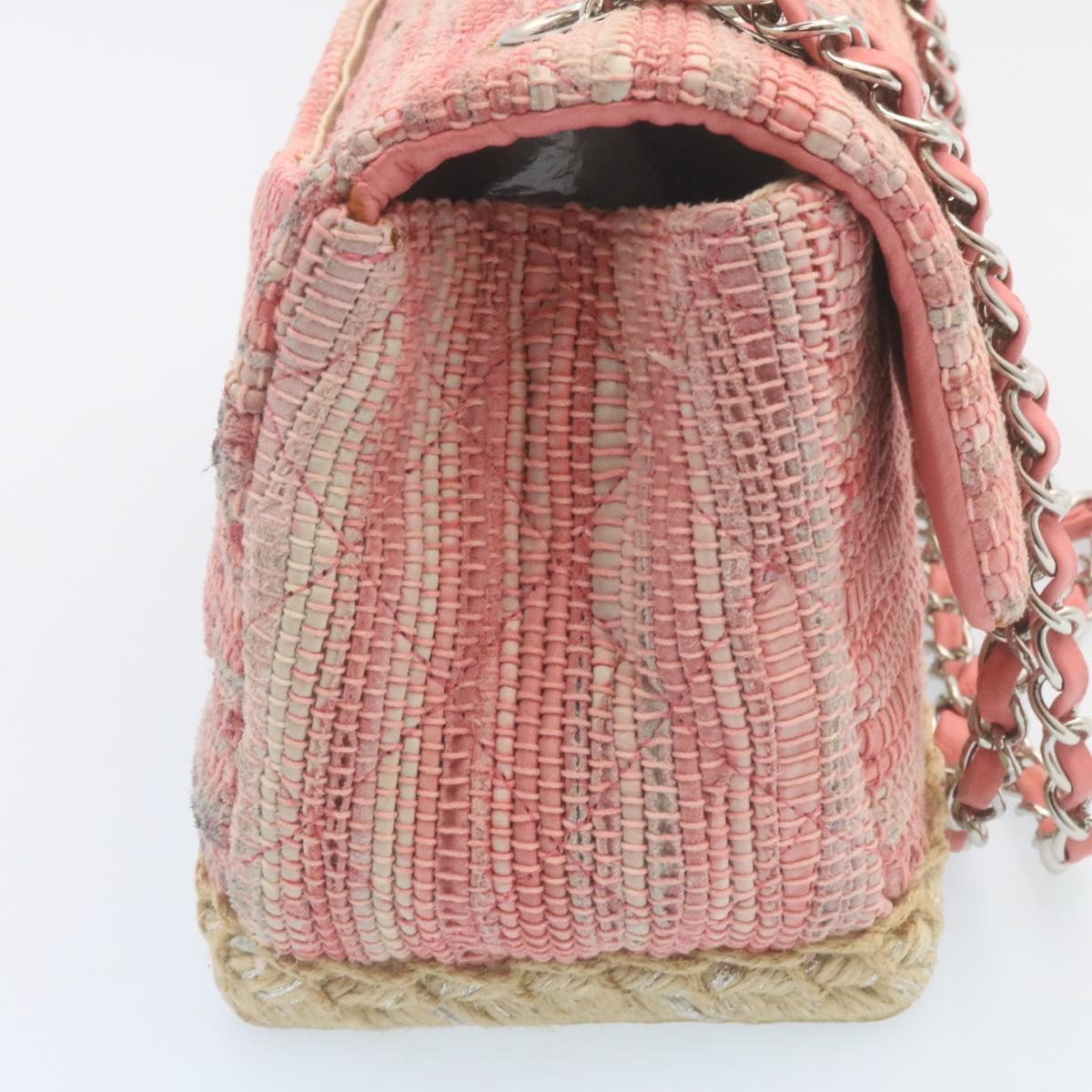 Chanel Chain Flap Shoulder Bag Turn Lock Canvas Pink CC Auth bs334A