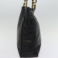 CHANEL Chain Shoulder Bag Coated Canvas Black CC Auth ep4383