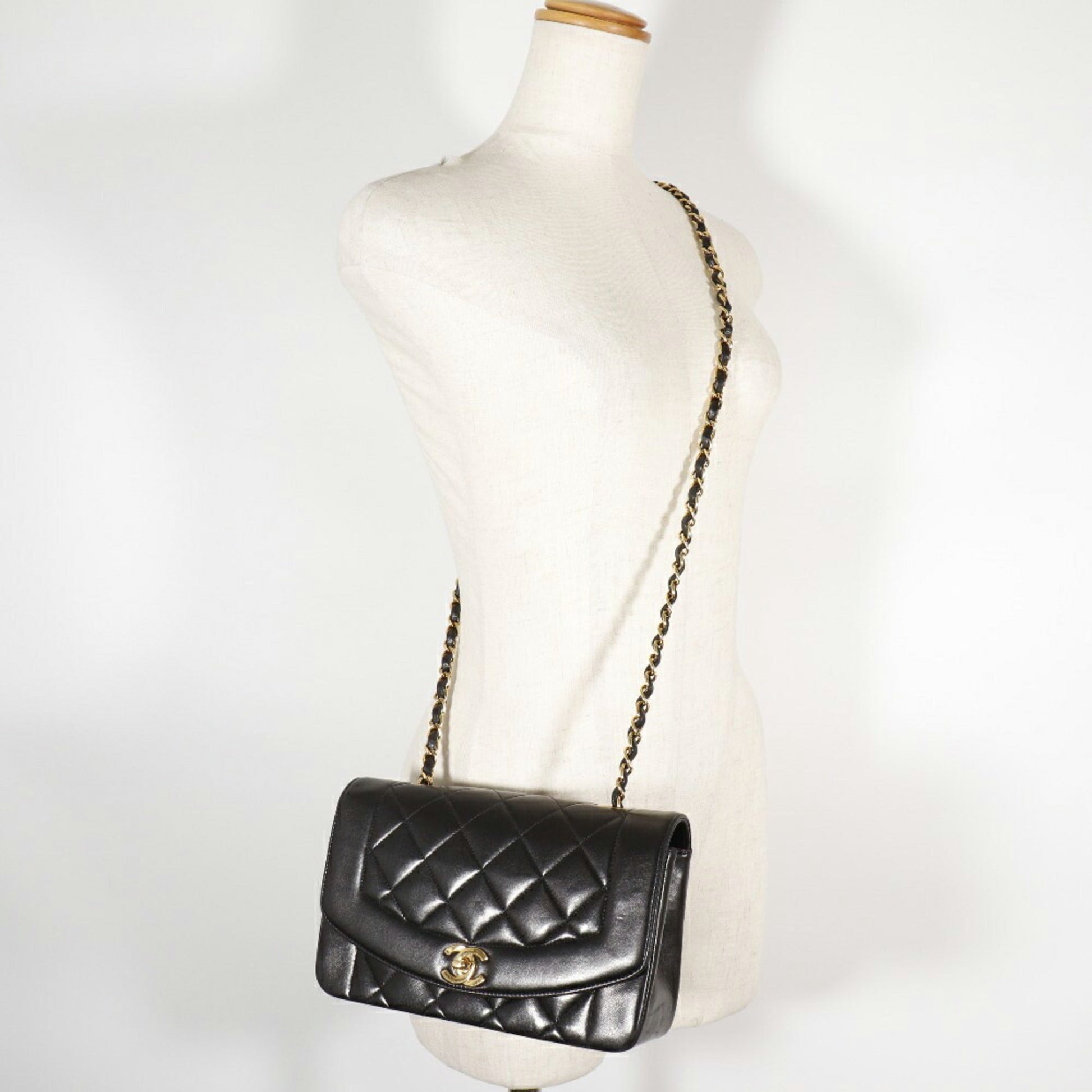 Chanel Chain Shoulder Bag Coco Mark Diana Matelasse Lambskin Black Ladies